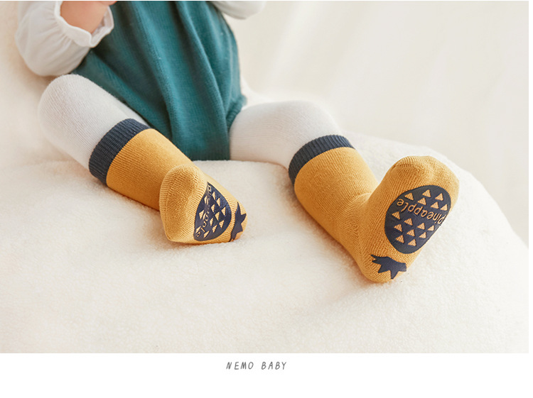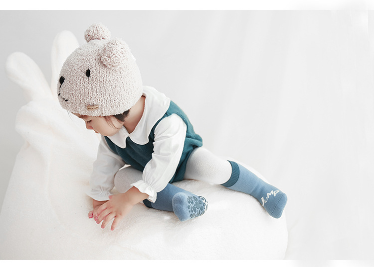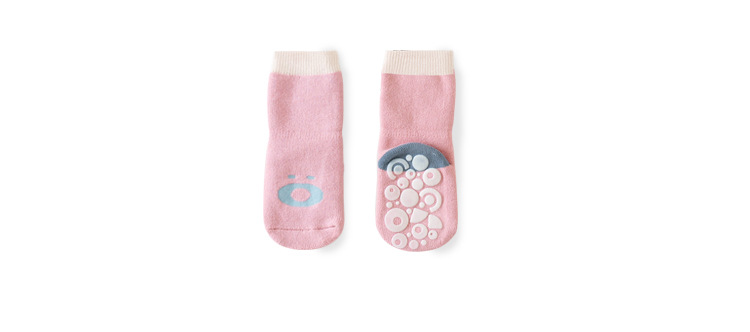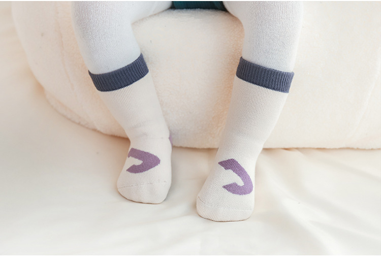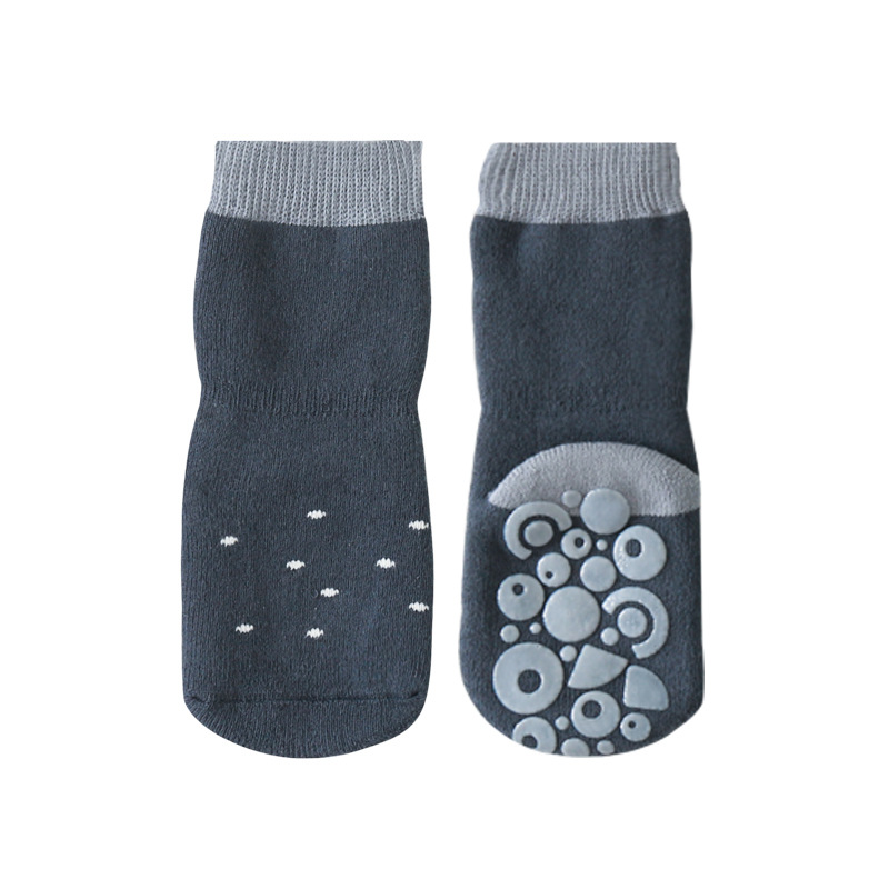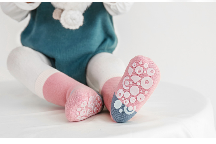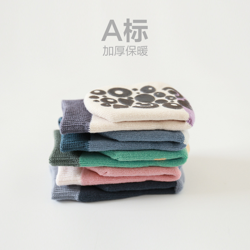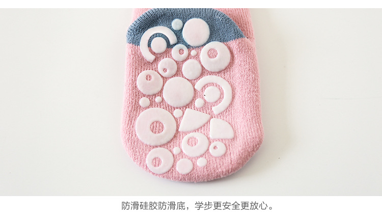 婴儿秋冬毛圈加厚保暖宝宝袜子点胶防滑儿童学步地板袜波点中筒袜