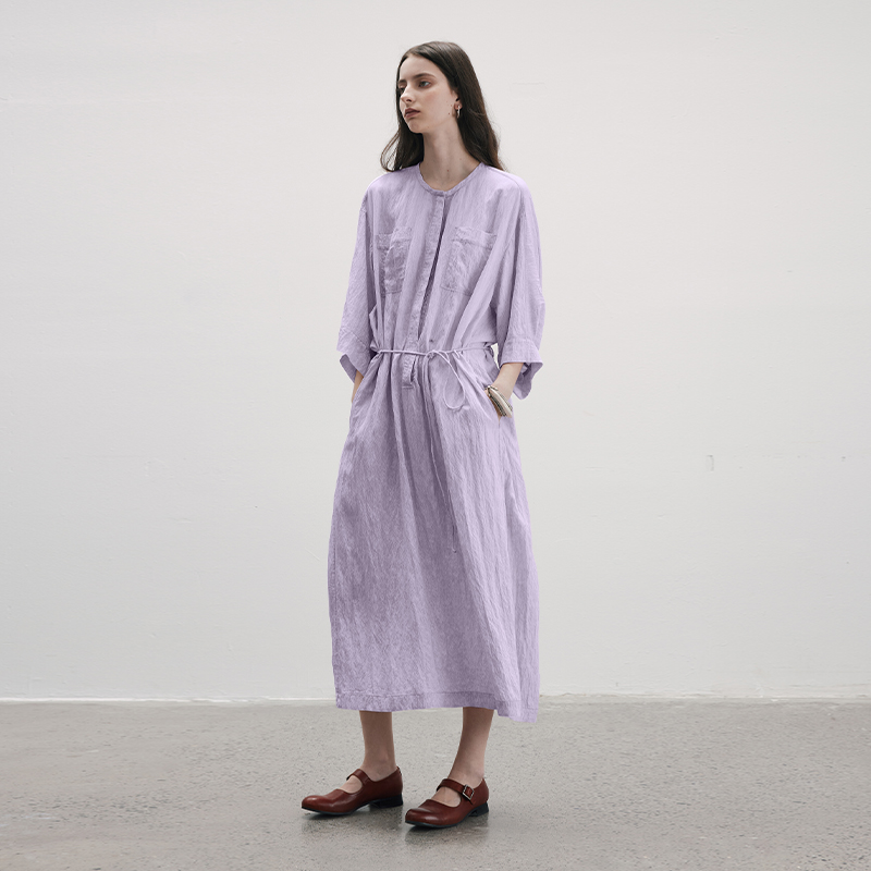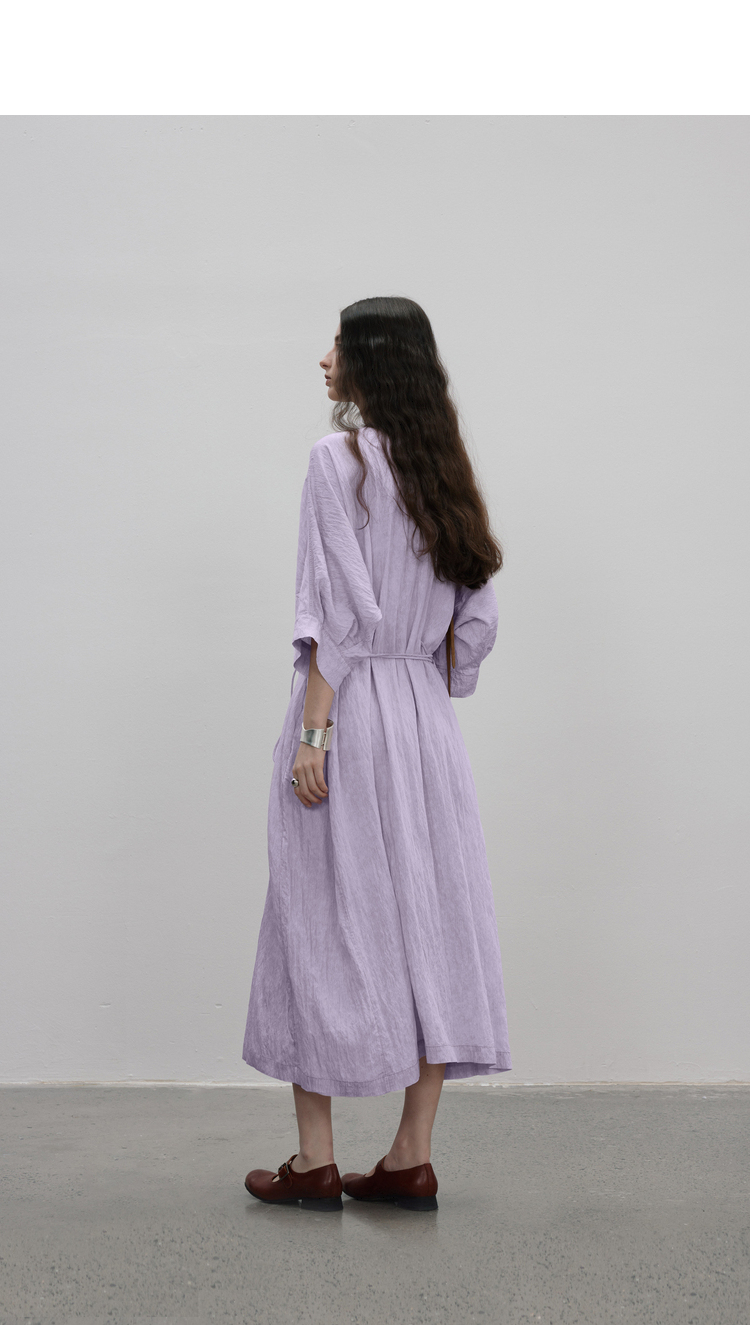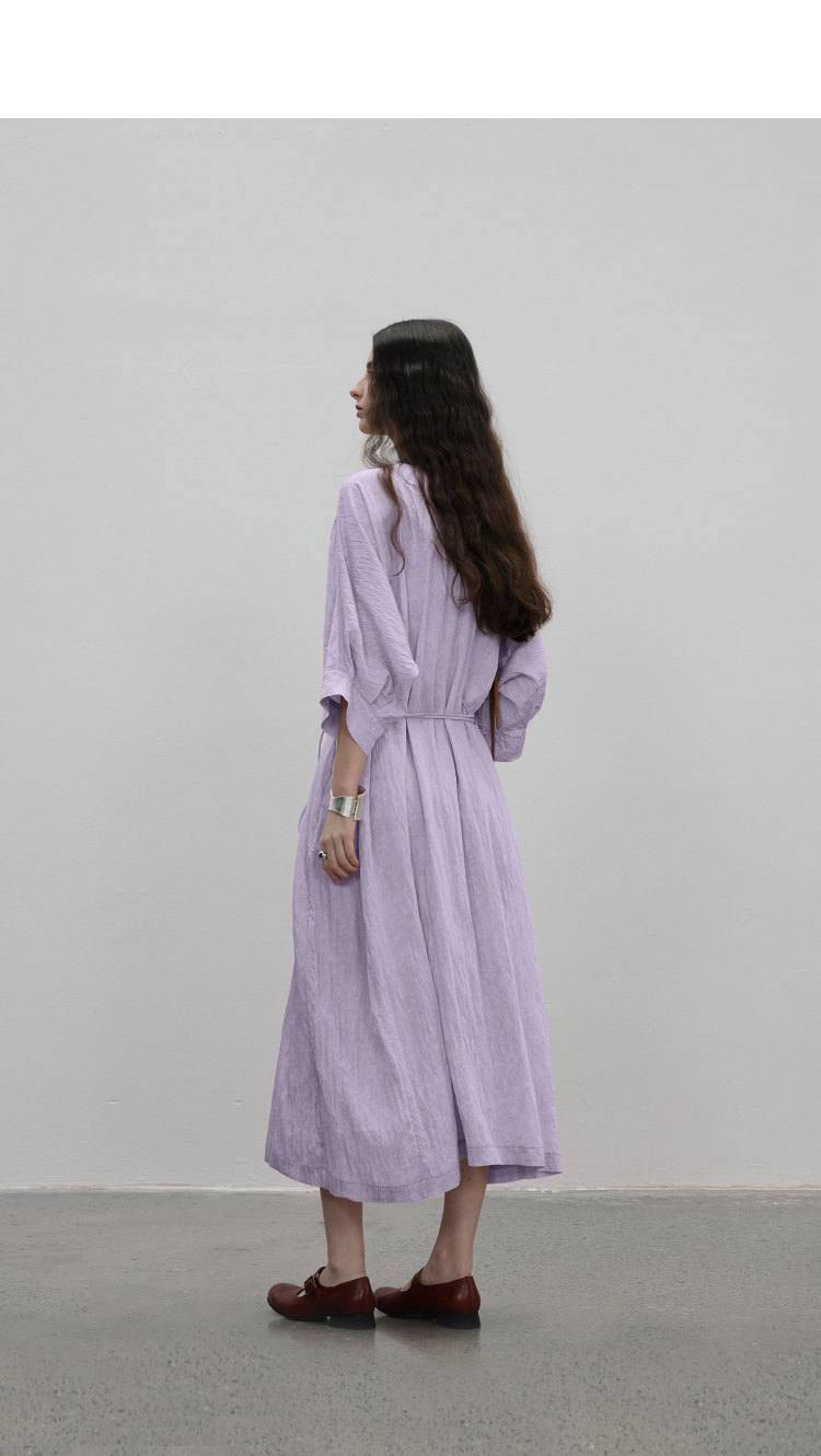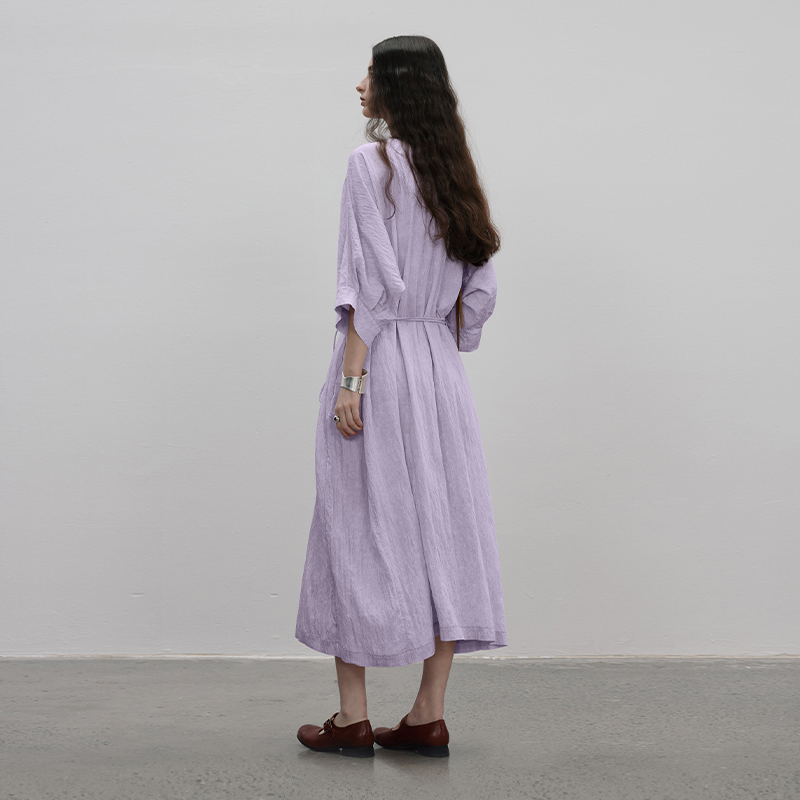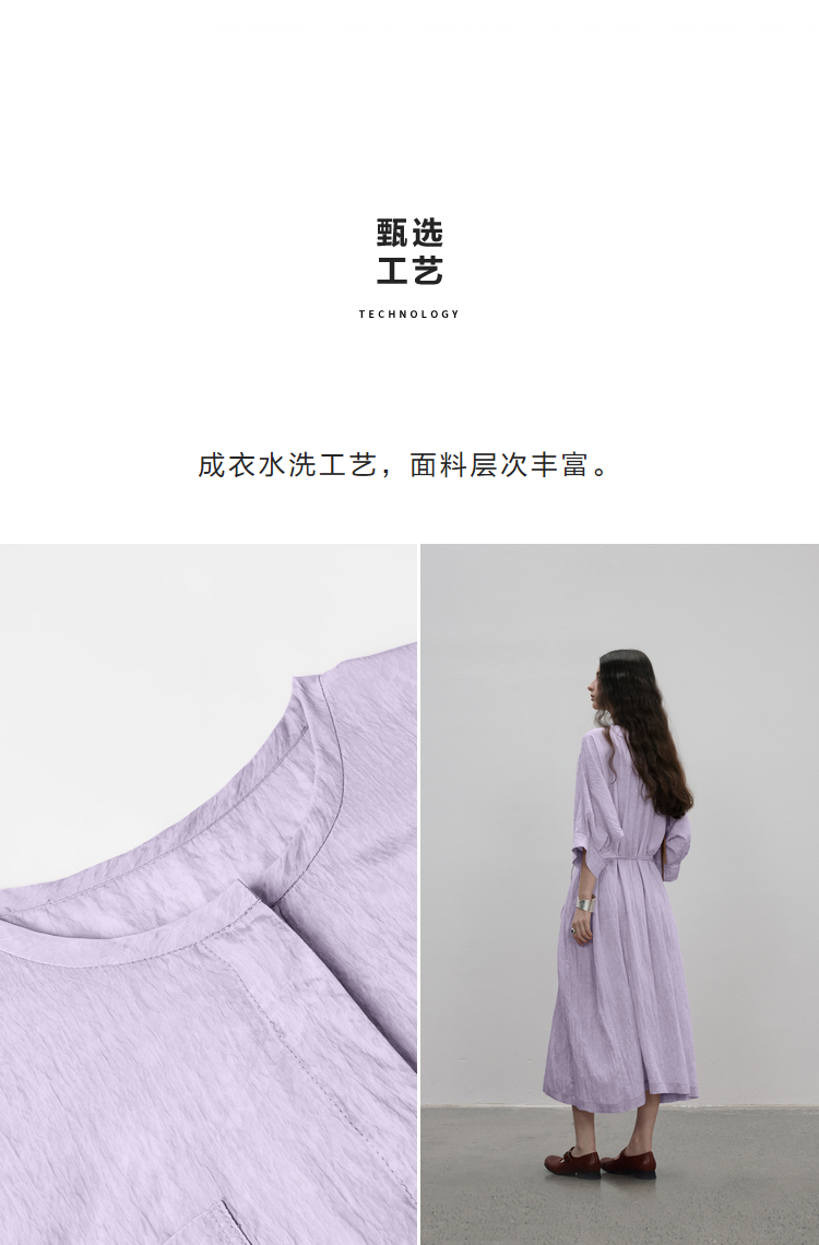 成衣水洗工藝半圓原創設計2023夏季新款襯衫式洋裝細膩柔軟清爽