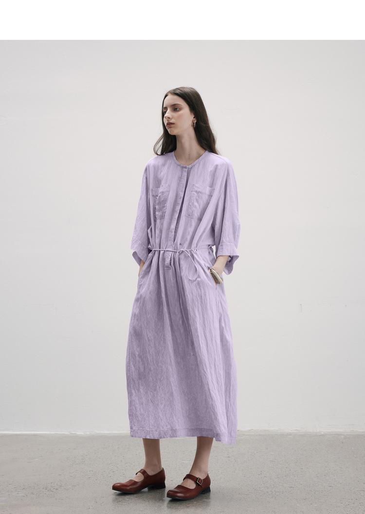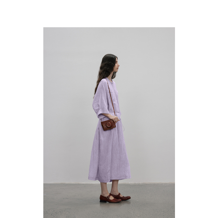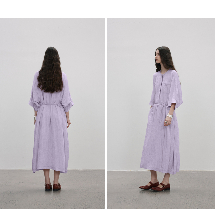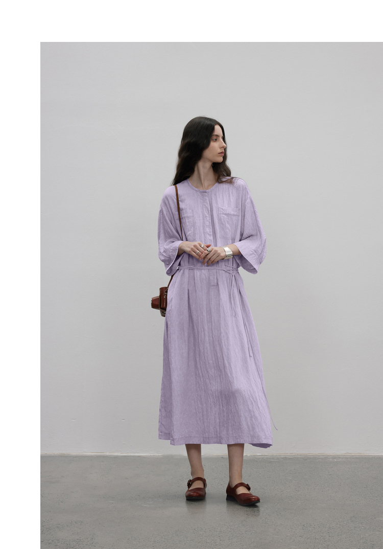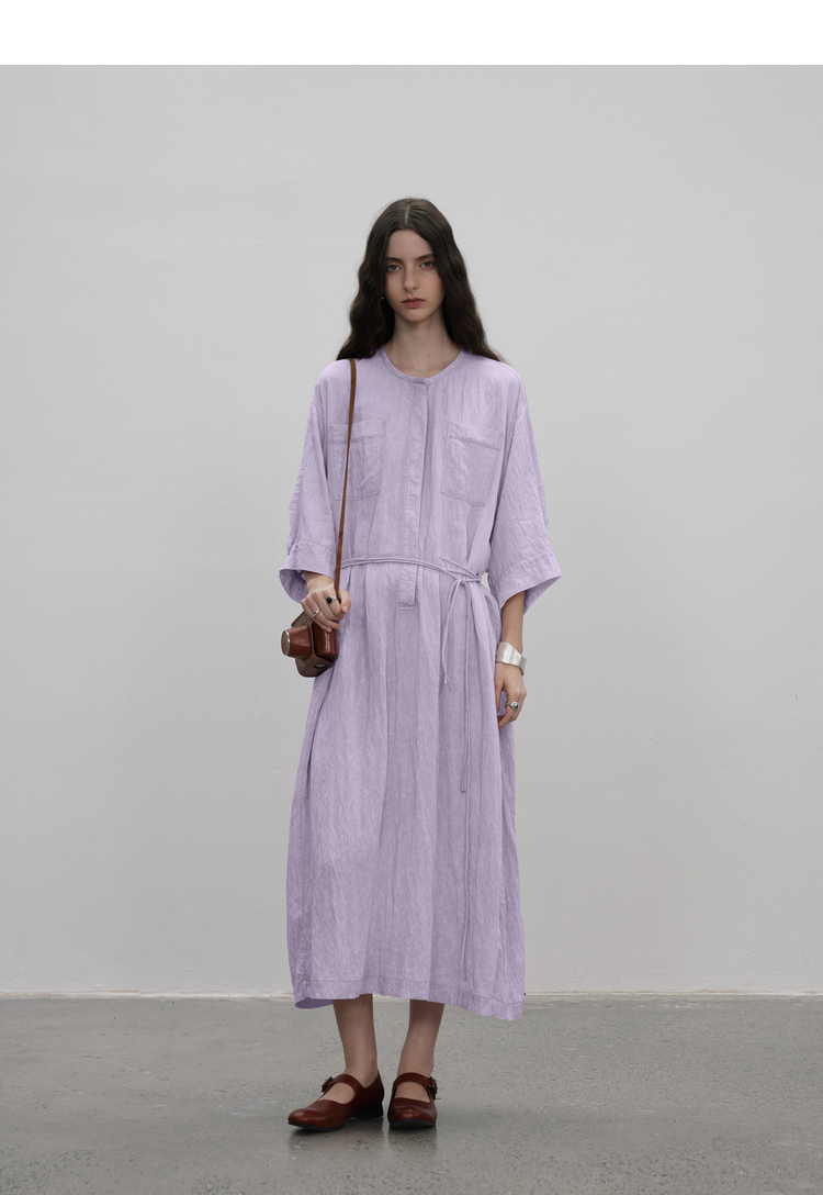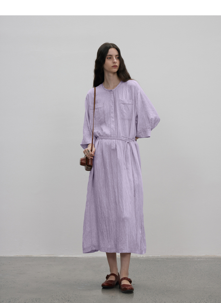 成衣水洗工藝半圓原創設計2023夏季新款襯衫式洋裝細膩柔軟清爽