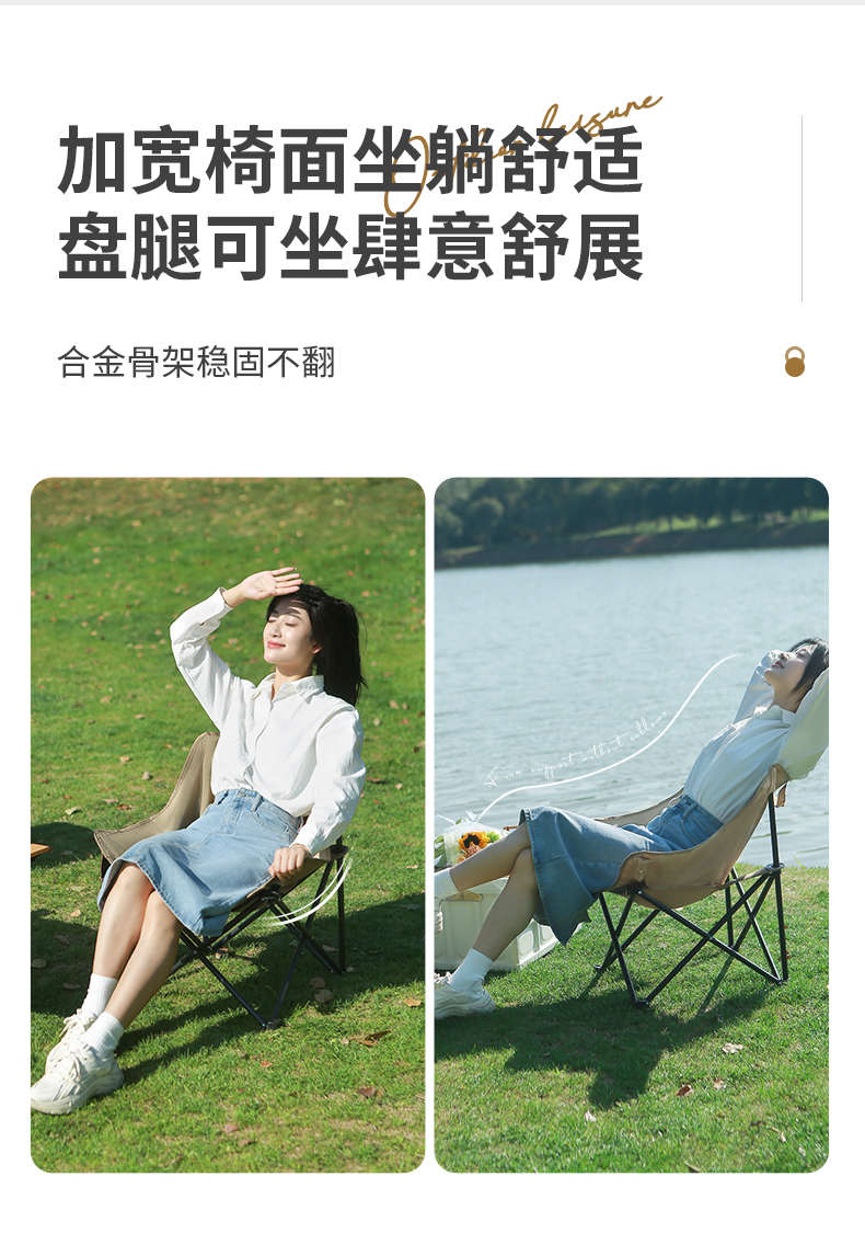 戶外摺疊椅月亮椅可攜式露營椅子摺疊躺椅小凳子馬扎摺疊凳釣魚裝備