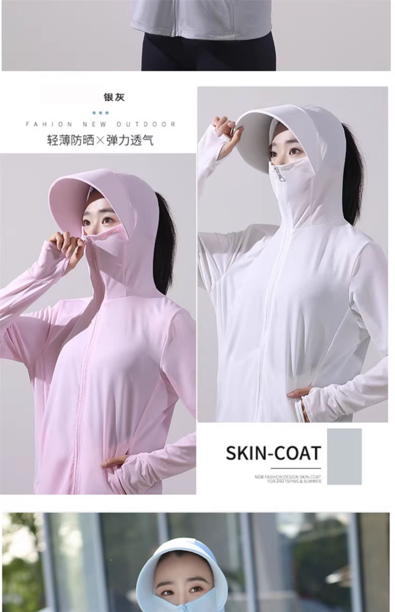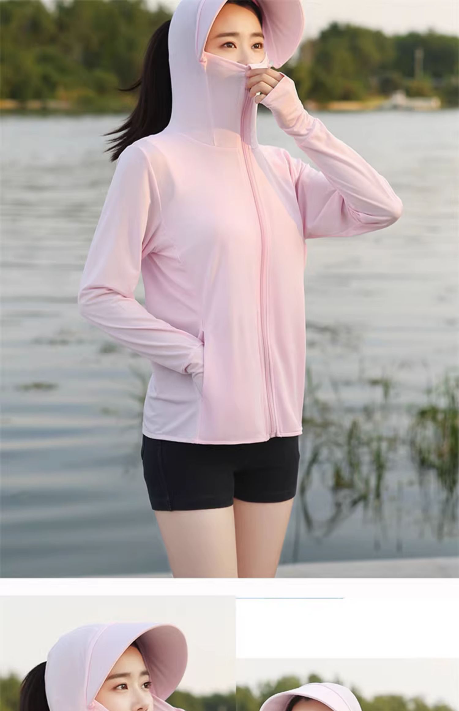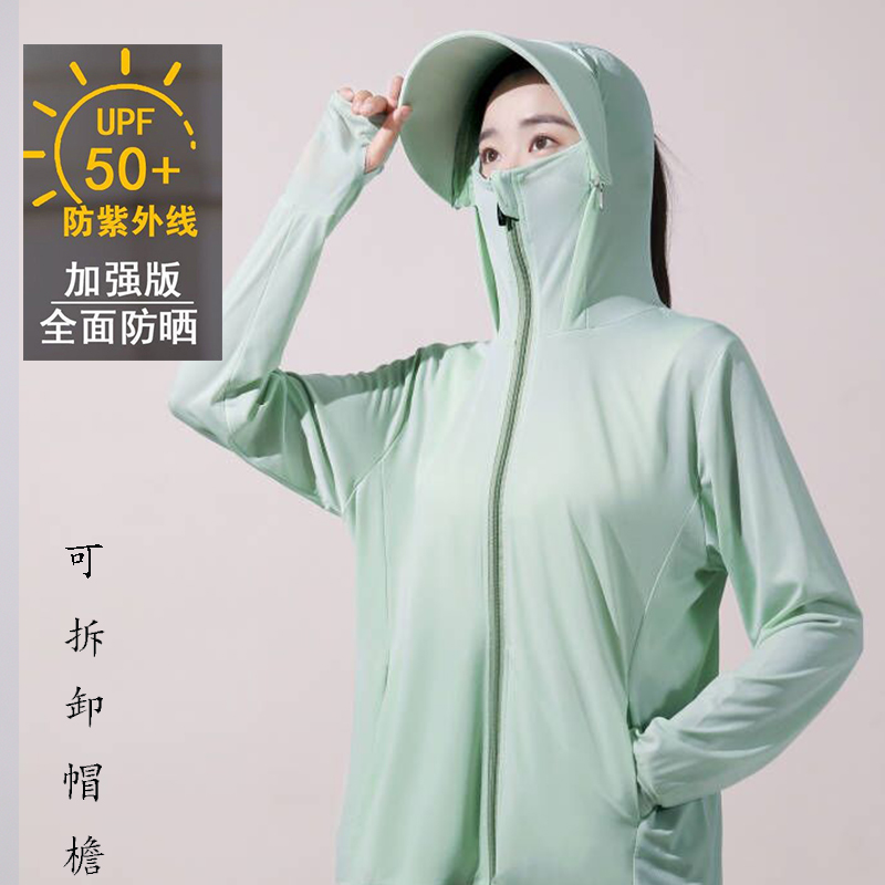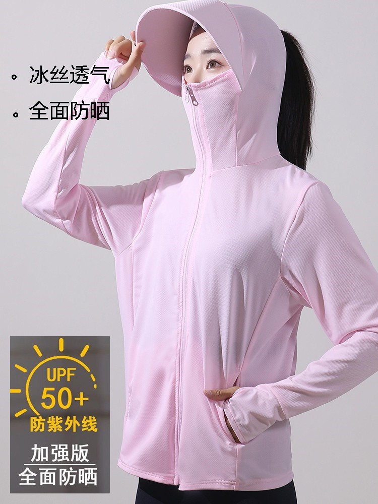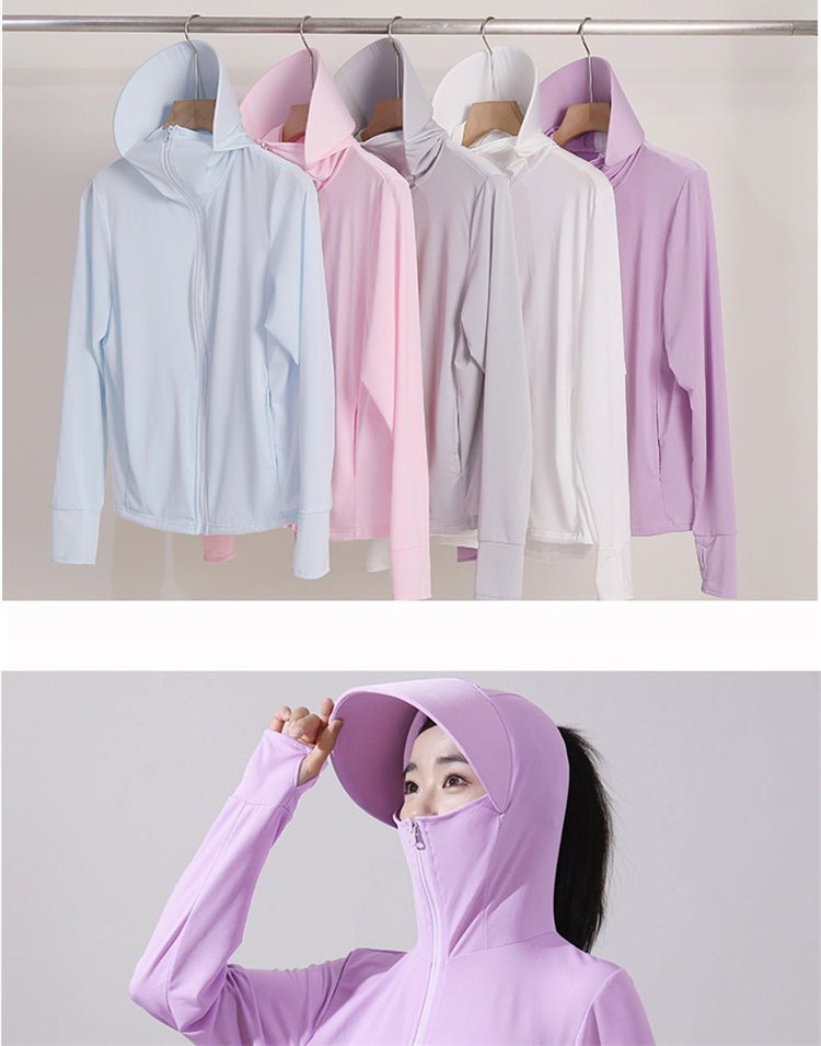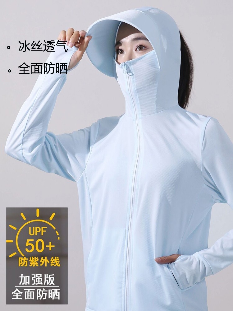 冰絲防曬衣連帽遮臉一體女夏季2023透氣抗UV戶外運動披肩外套