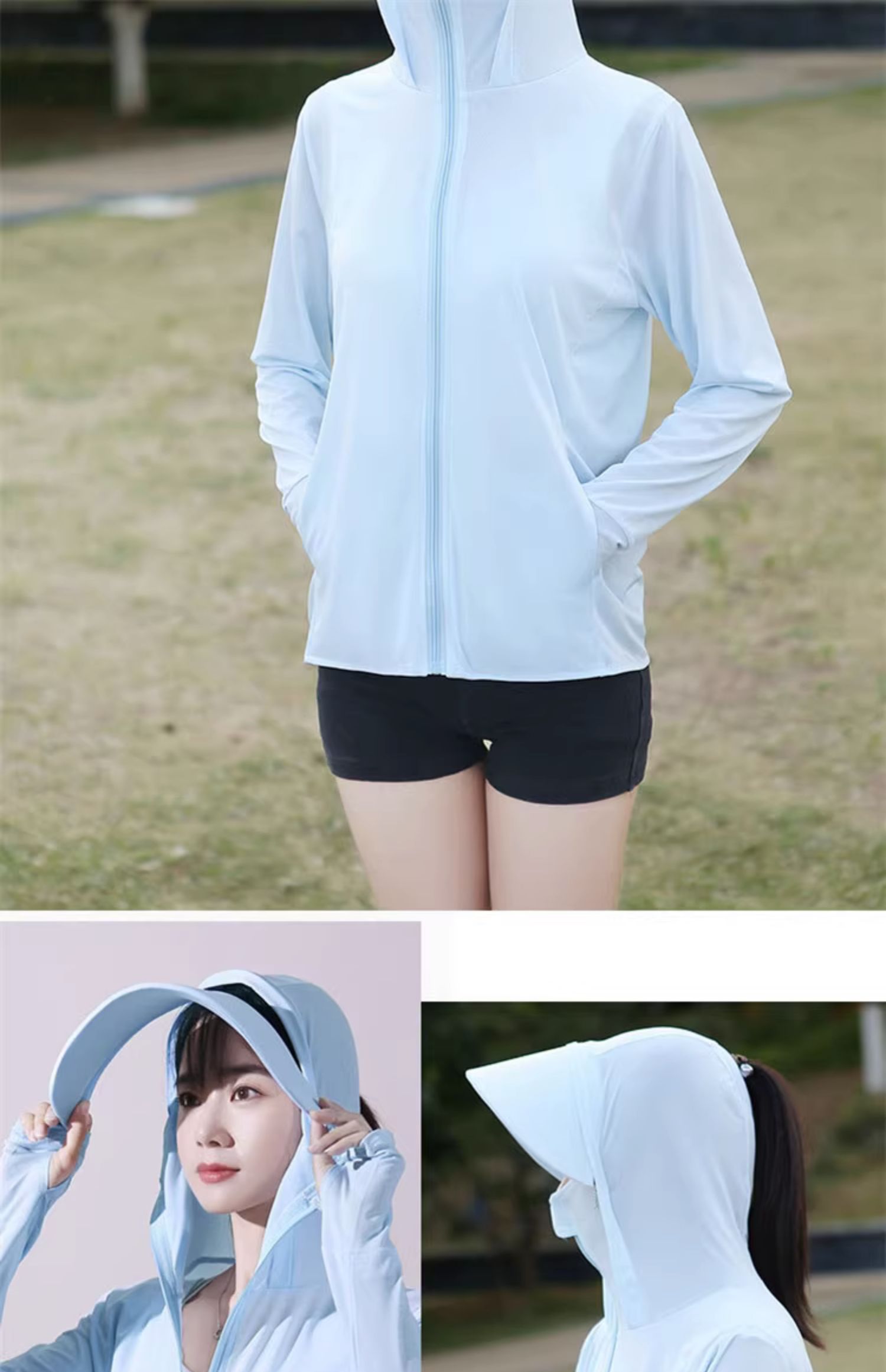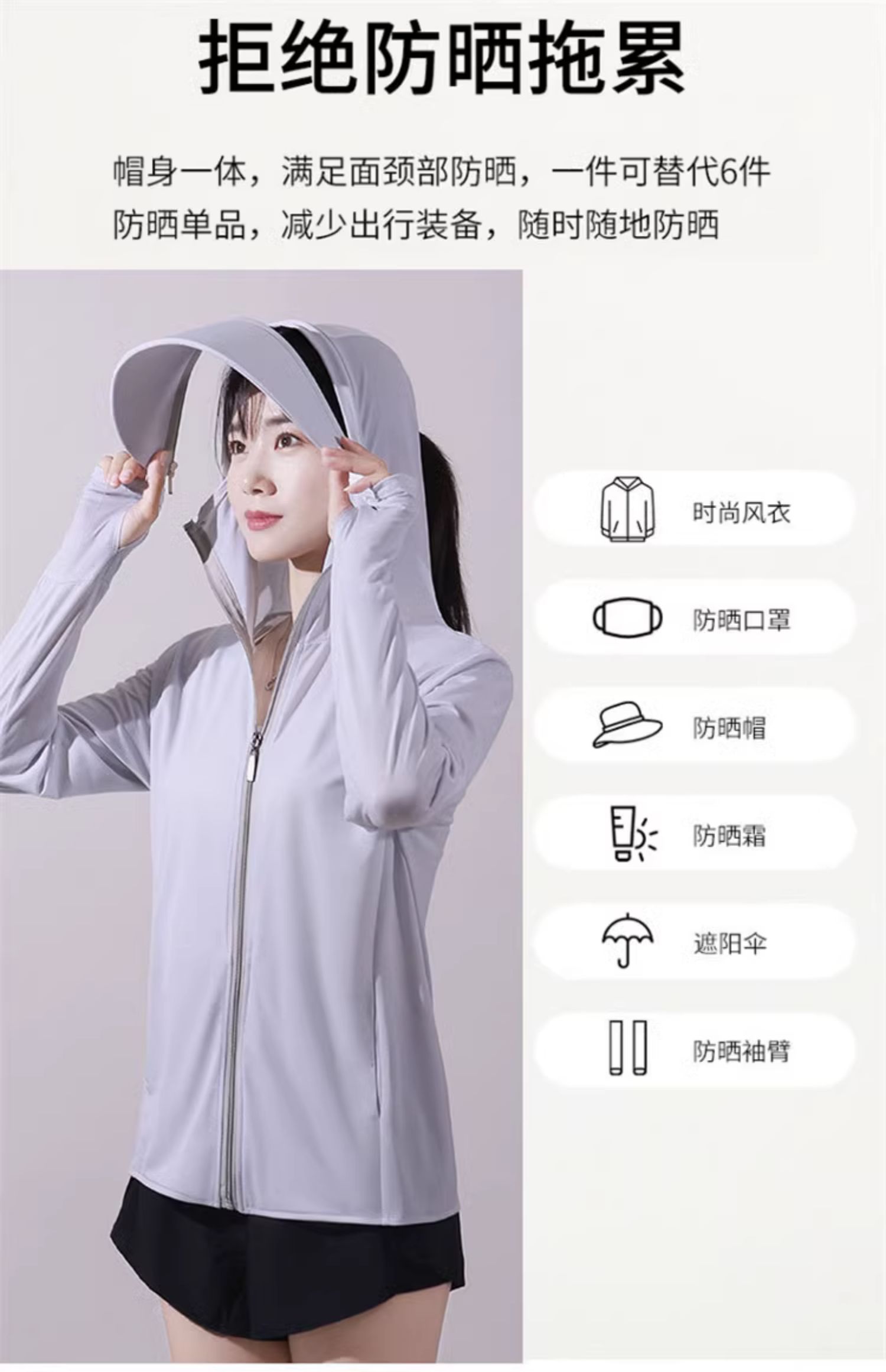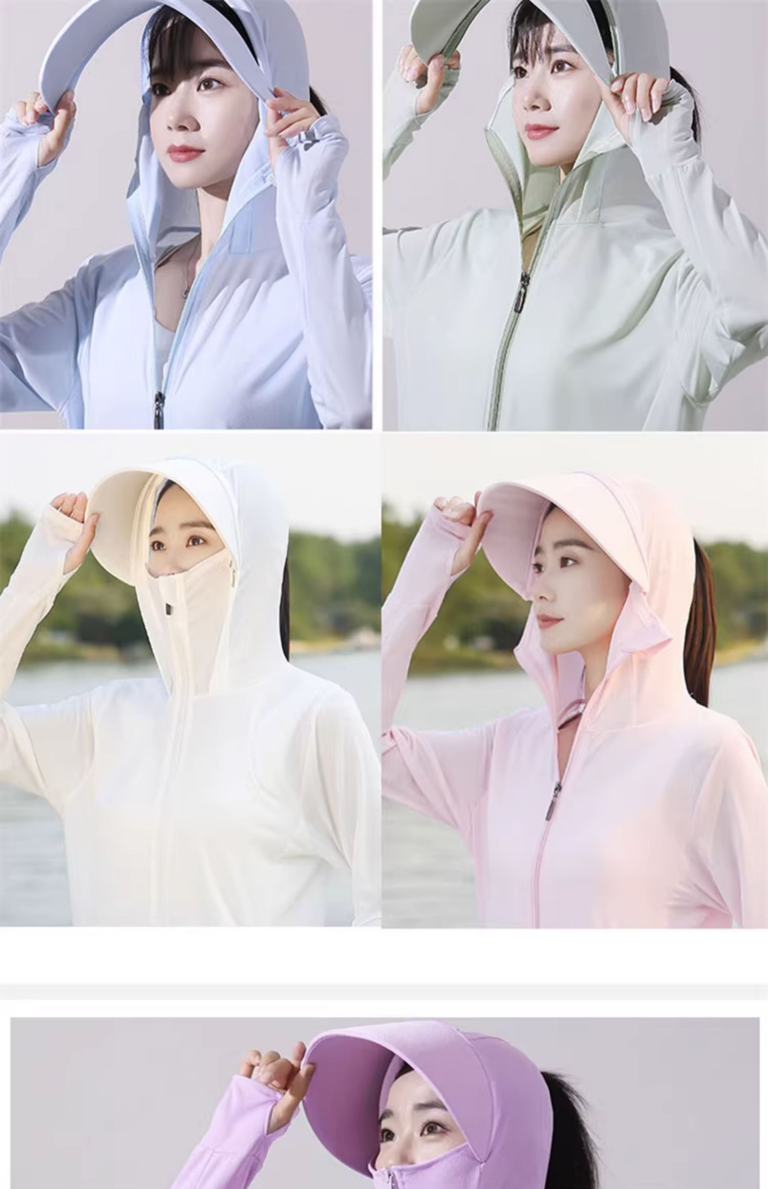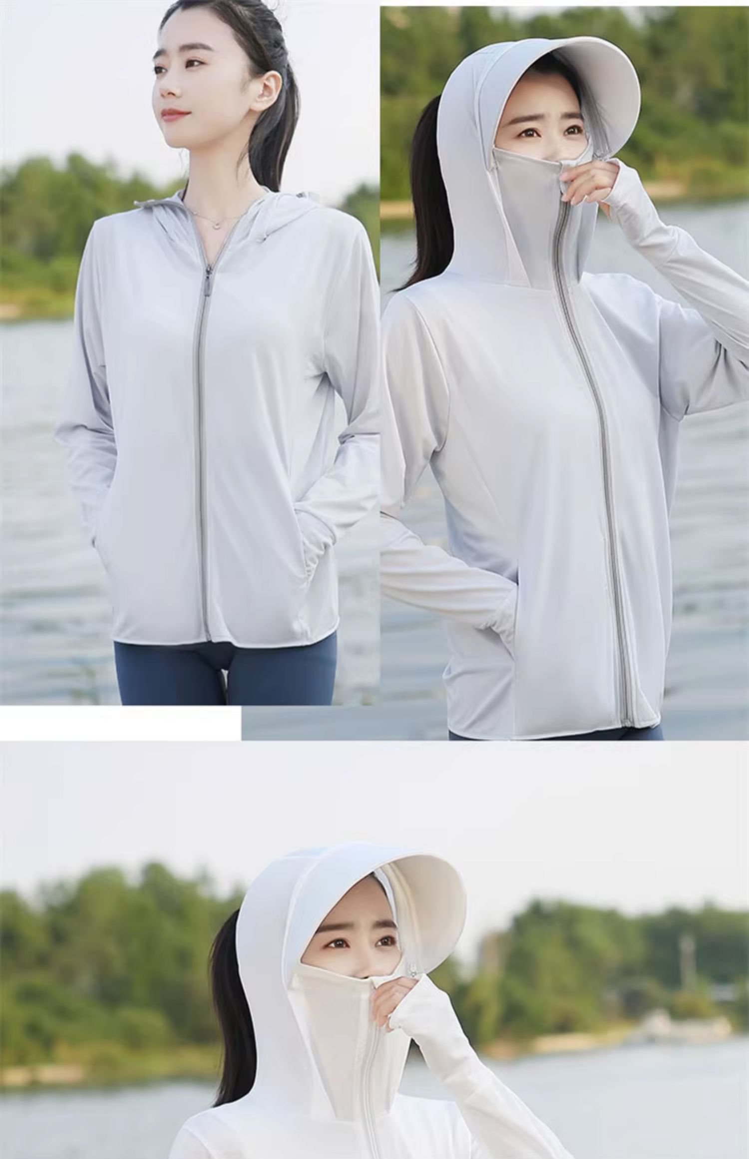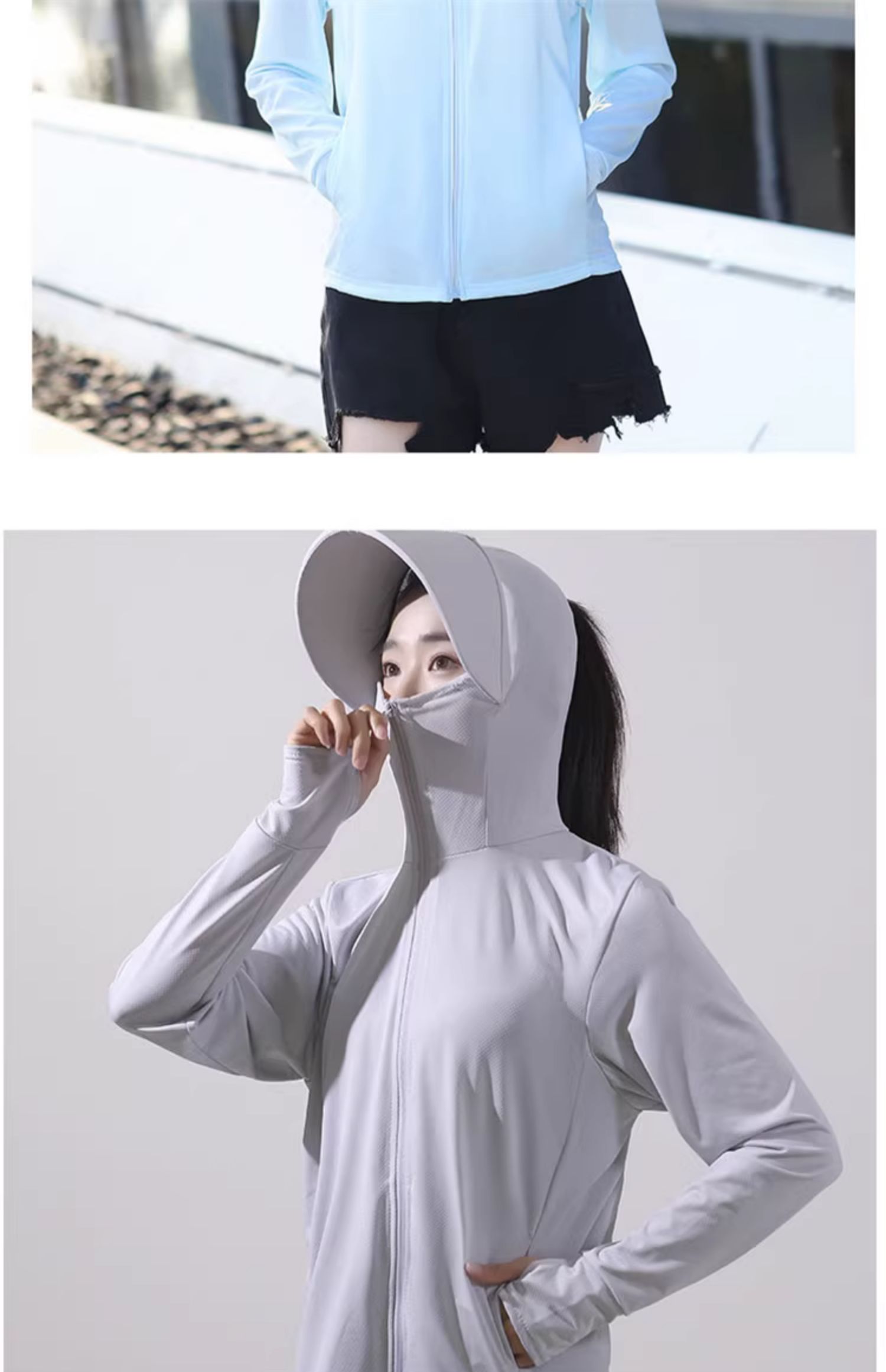 冰絲防曬衣連帽遮臉一體女夏季2023透氣抗UV戶外運動披肩外套