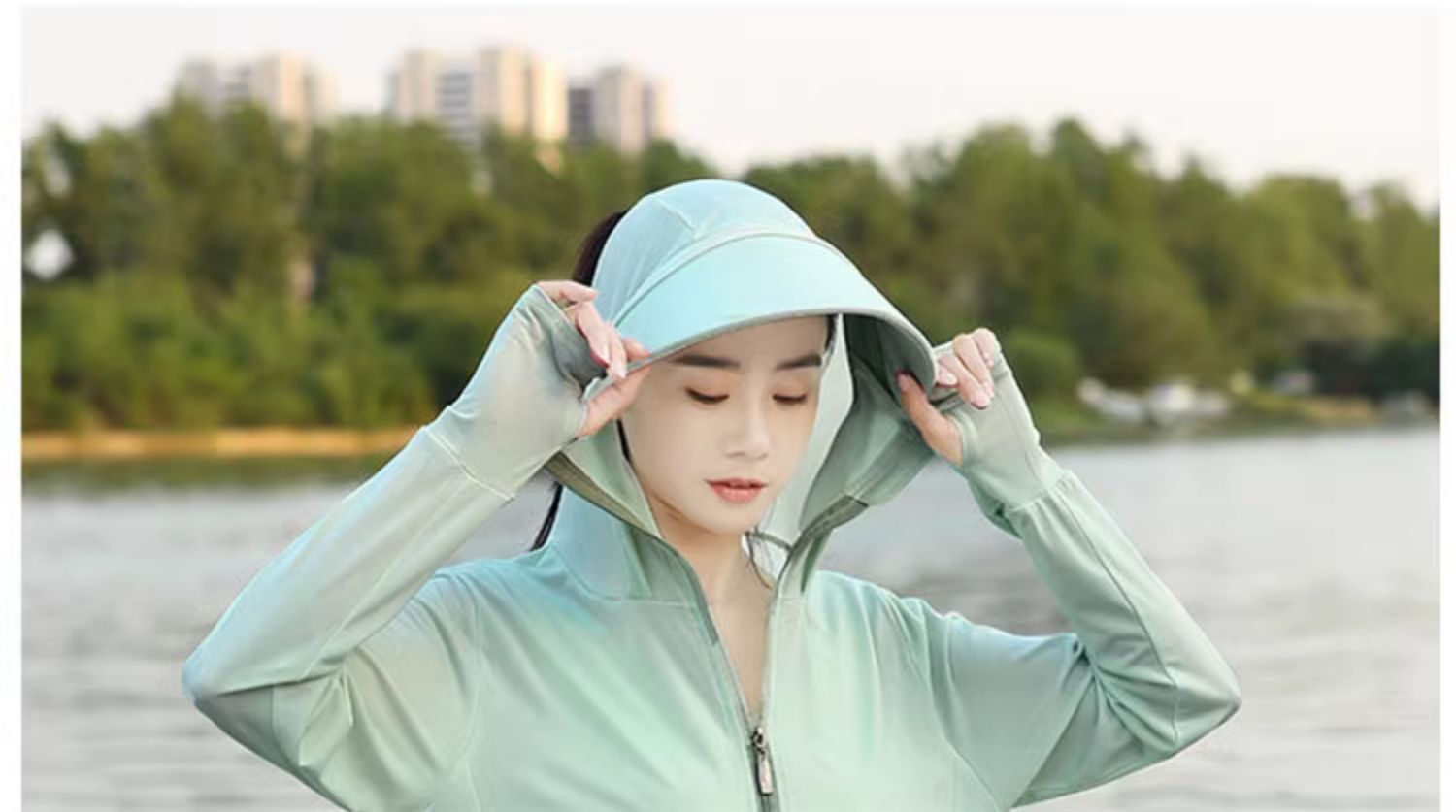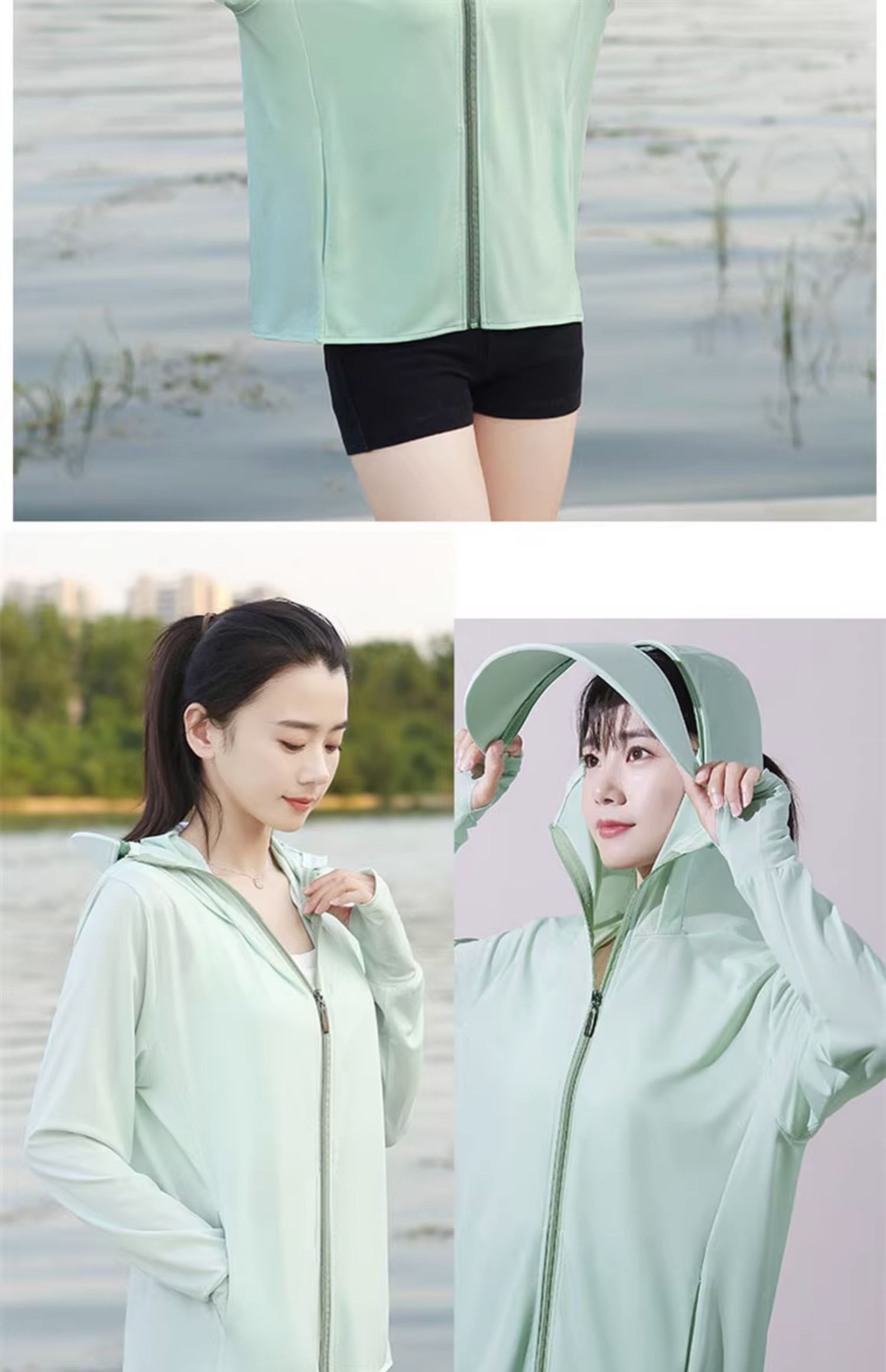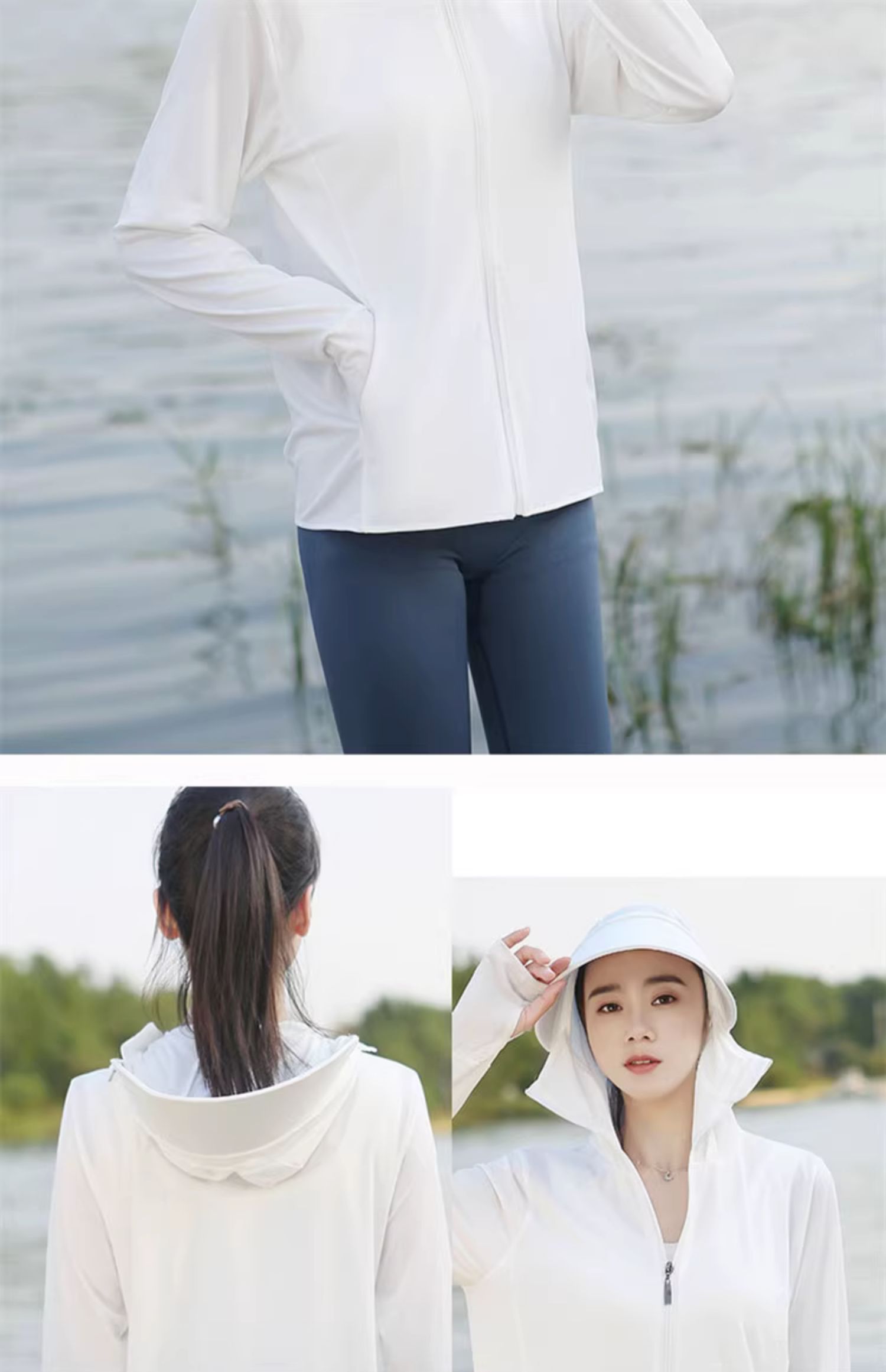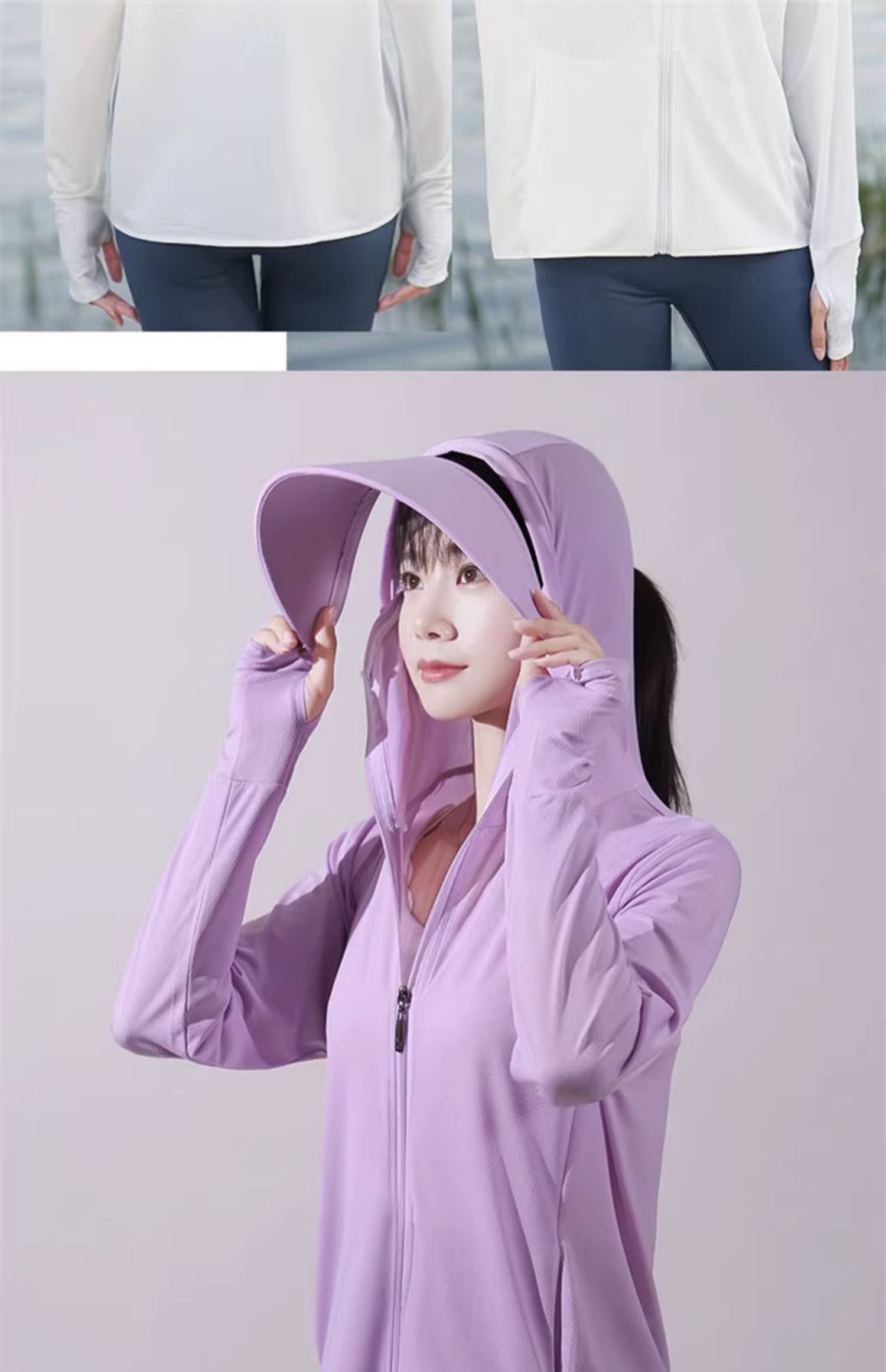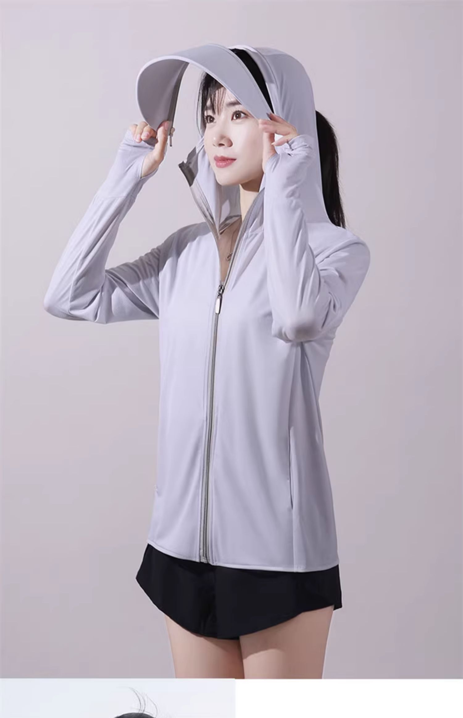 冰絲防曬衣連帽遮臉一體女夏季2023透氣抗UV戶外運動披肩外套
