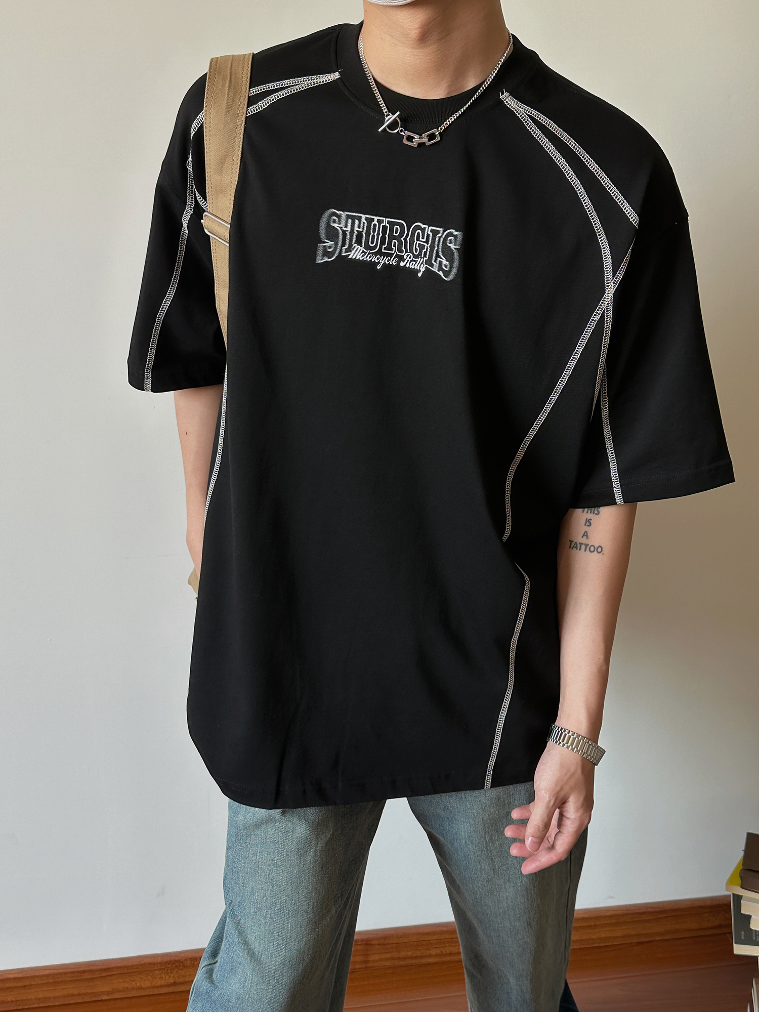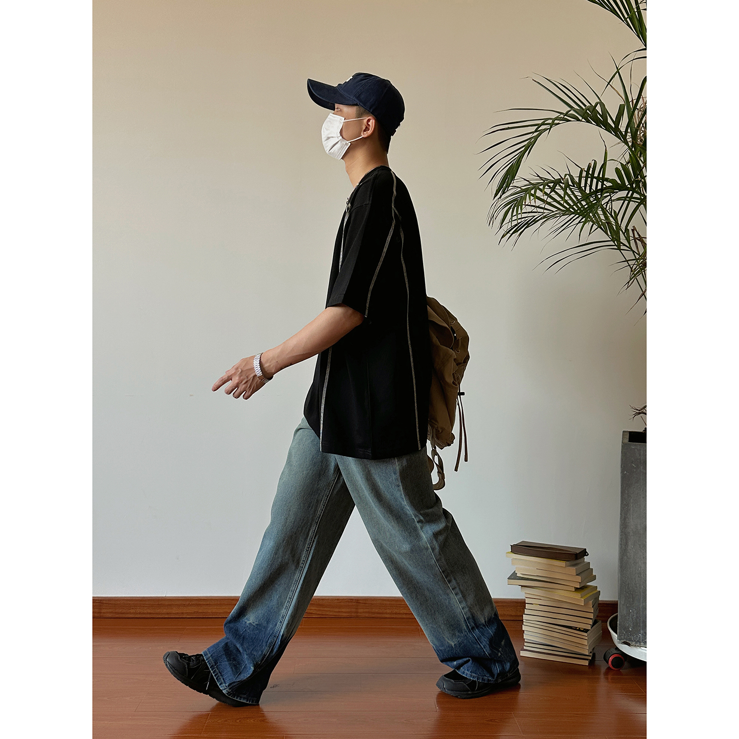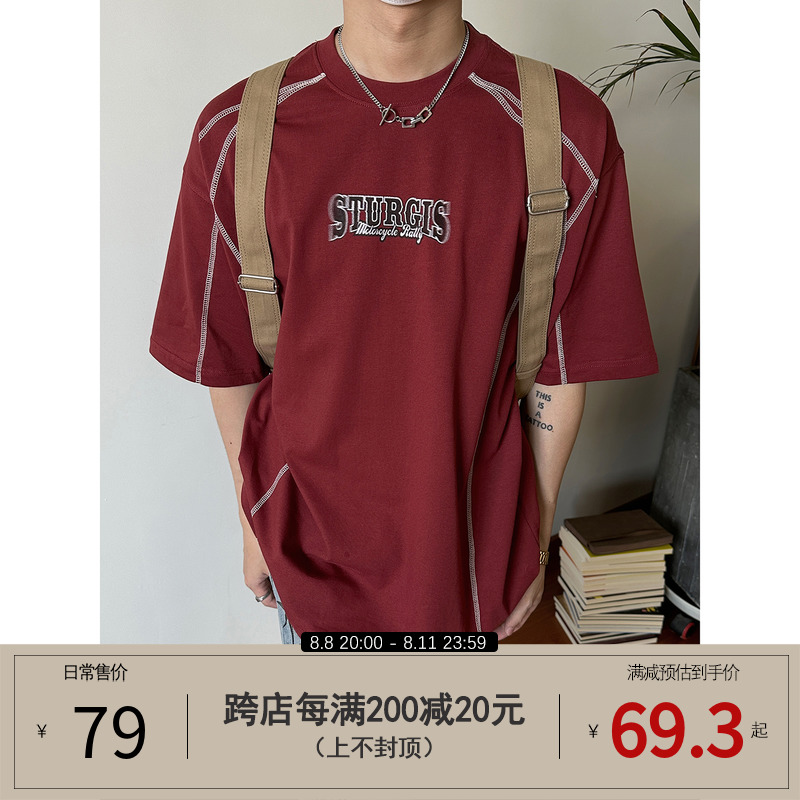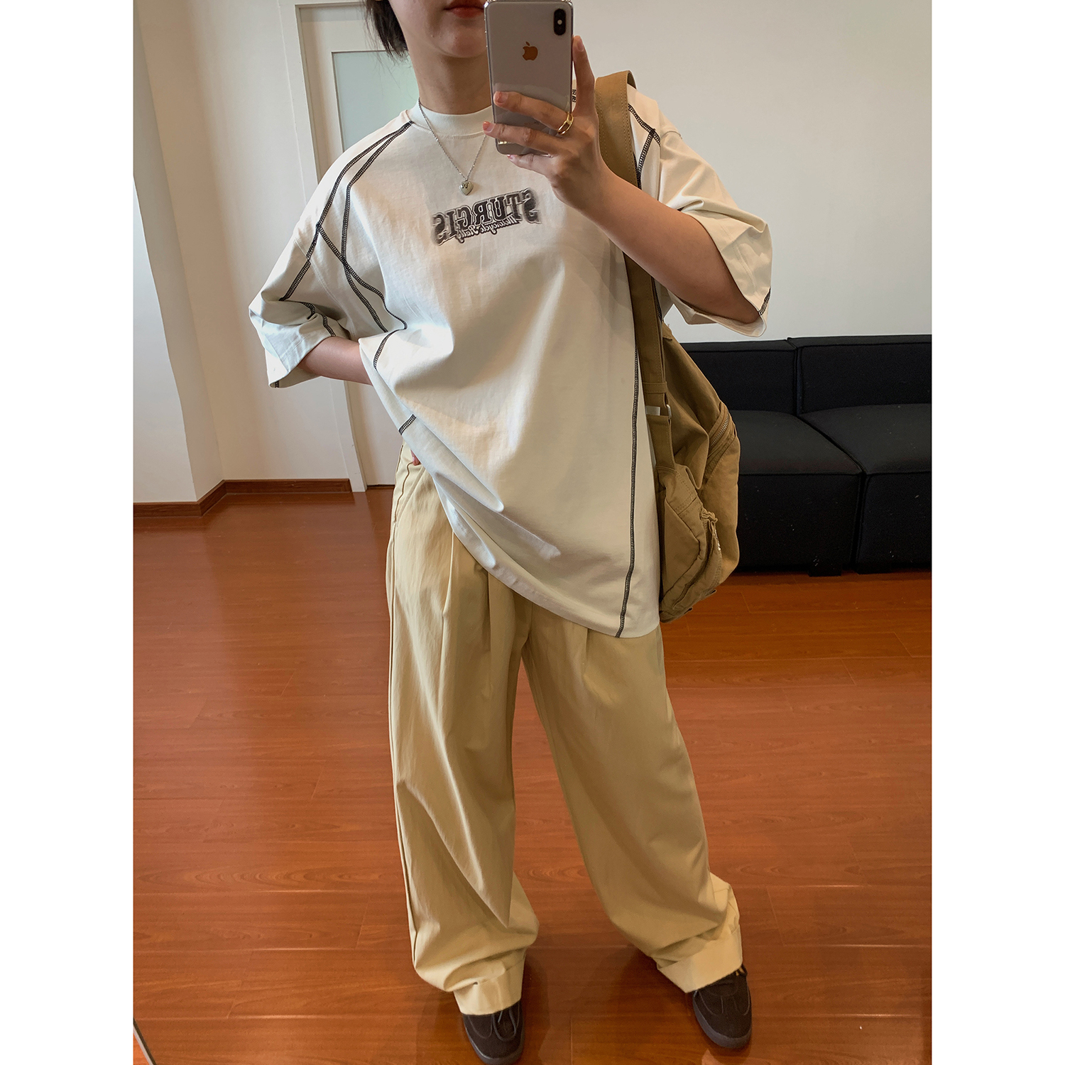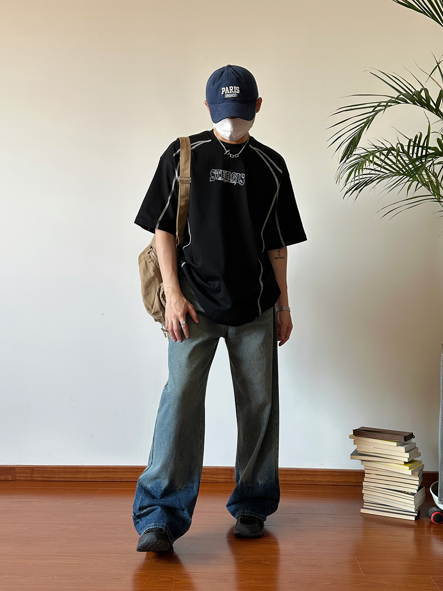 19studio WAYNEPRINCE美式復古線條設計感短袖夏季圓領印花T恤潮