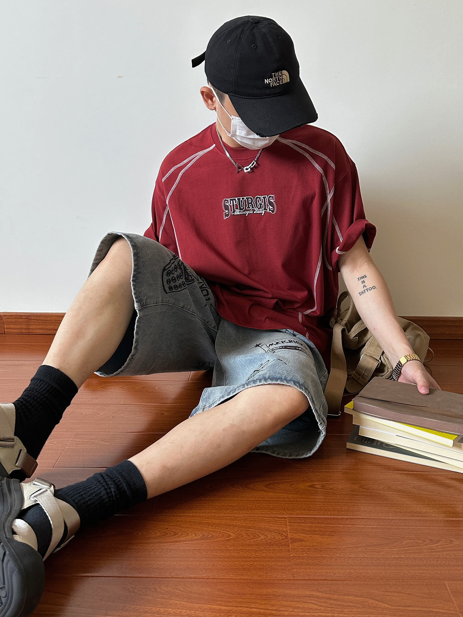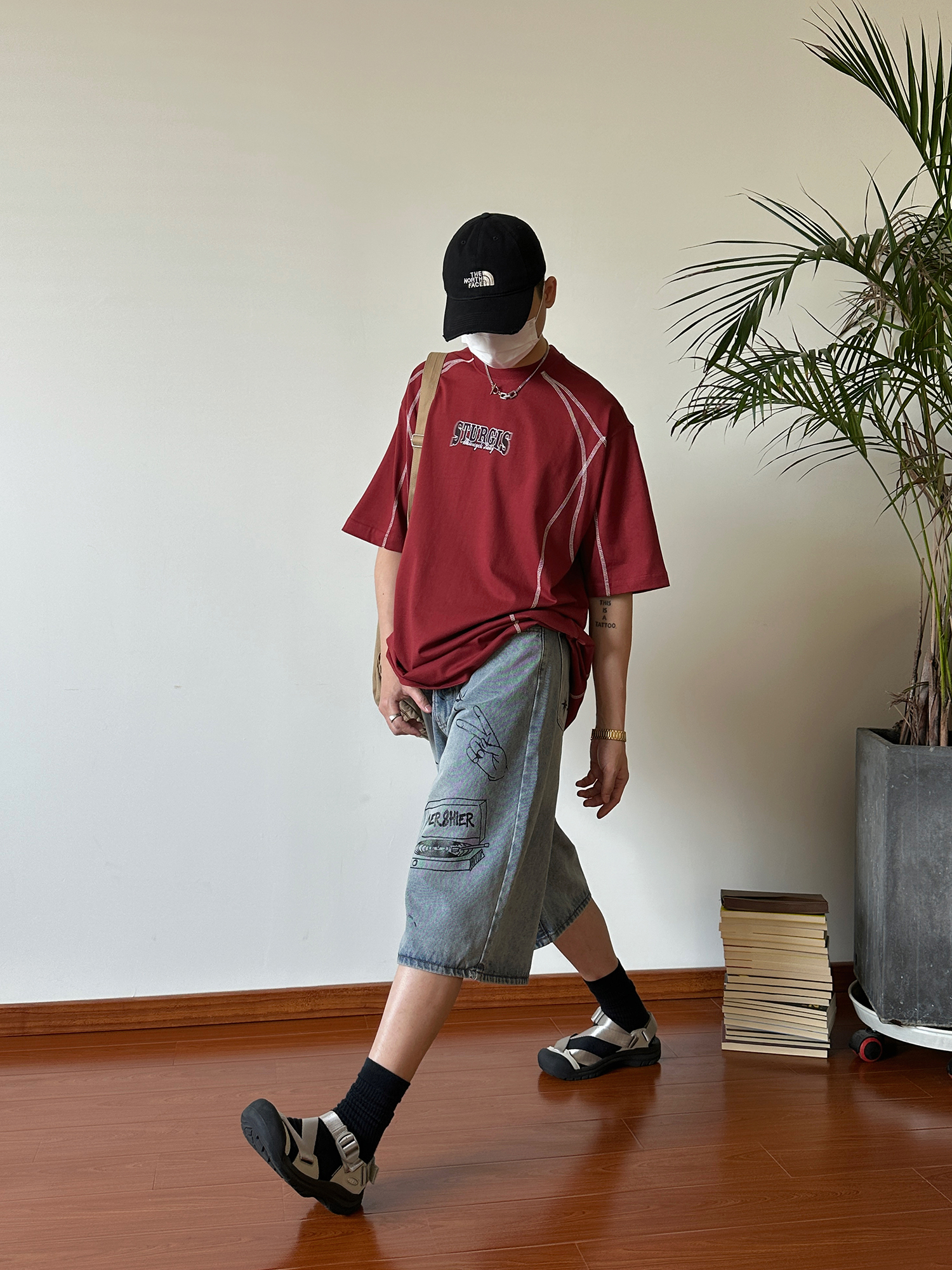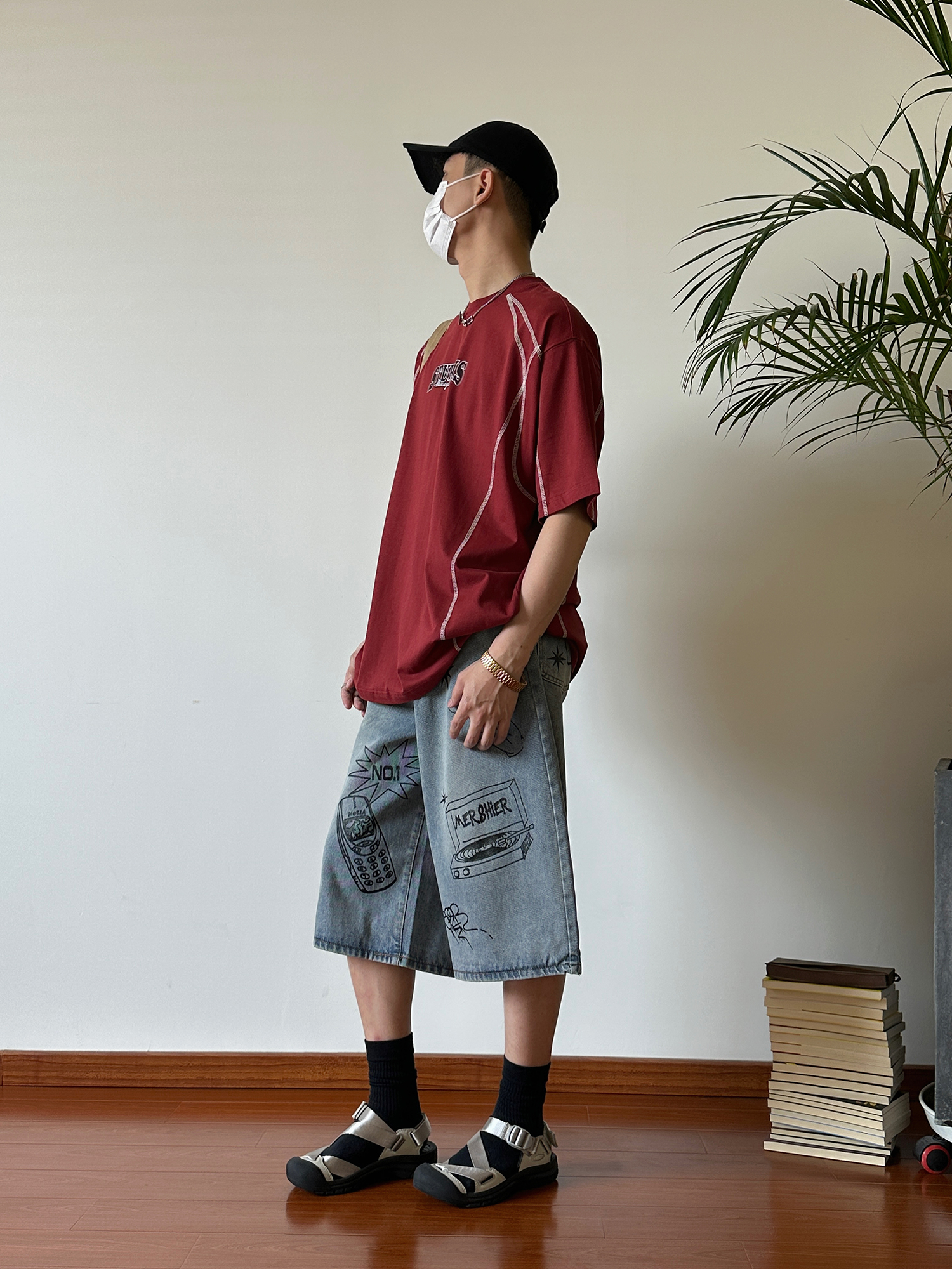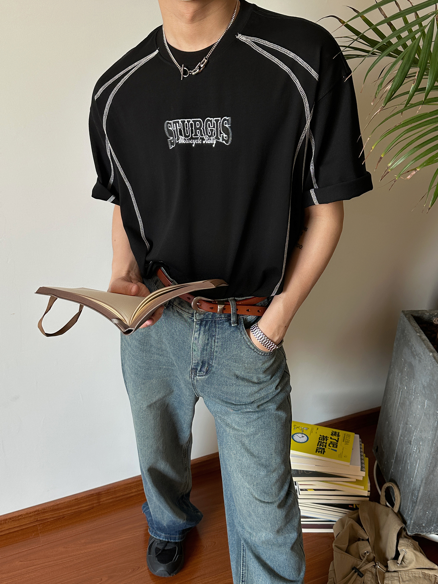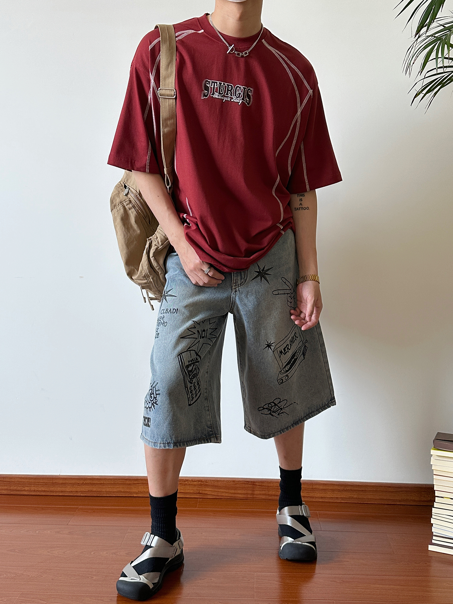 19studio WAYNEPRINCE美式復古線條設計感短袖夏季圓領印花T恤潮