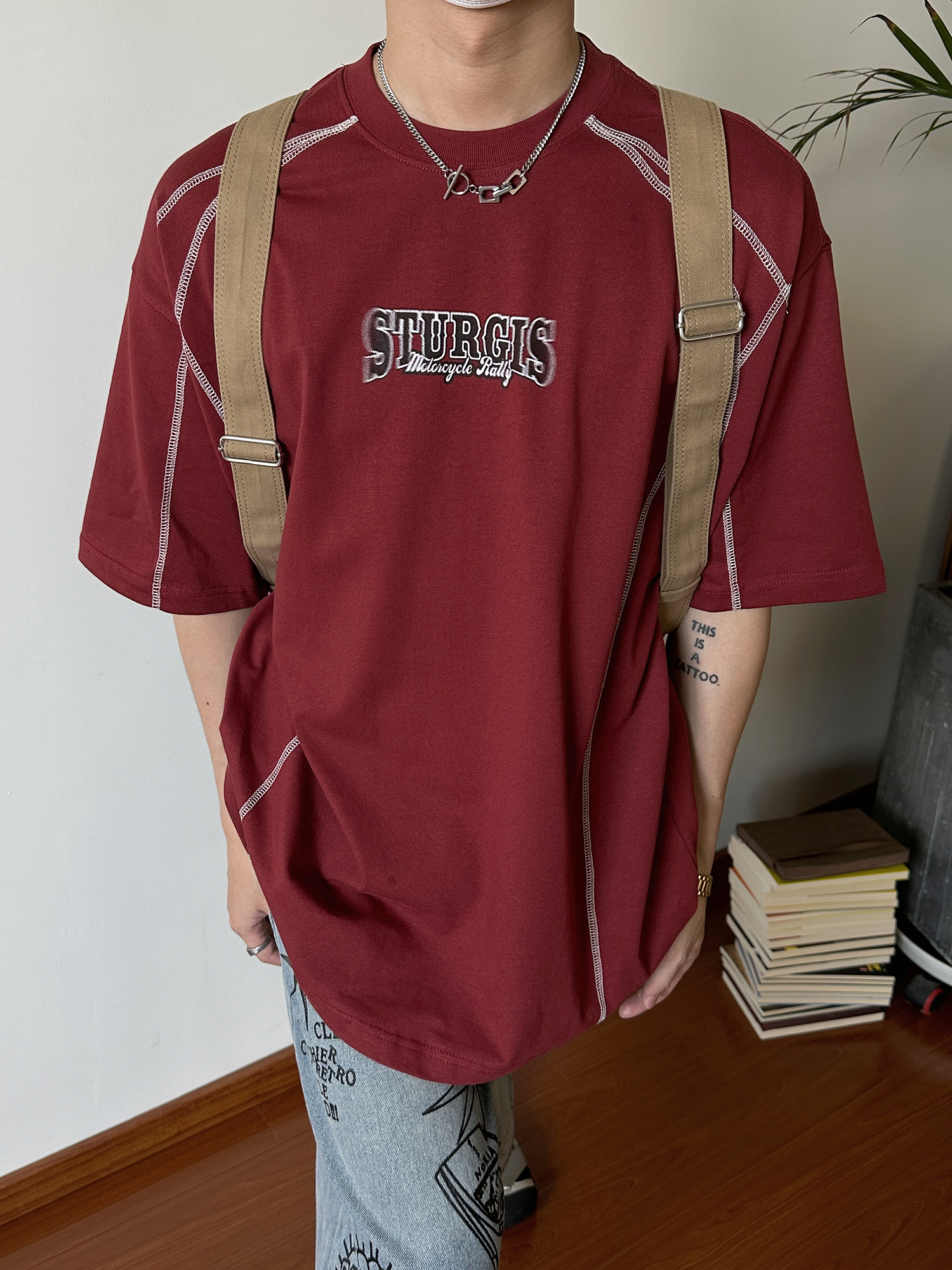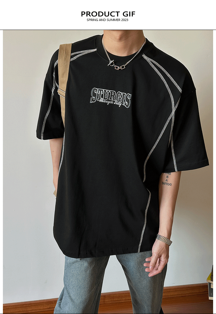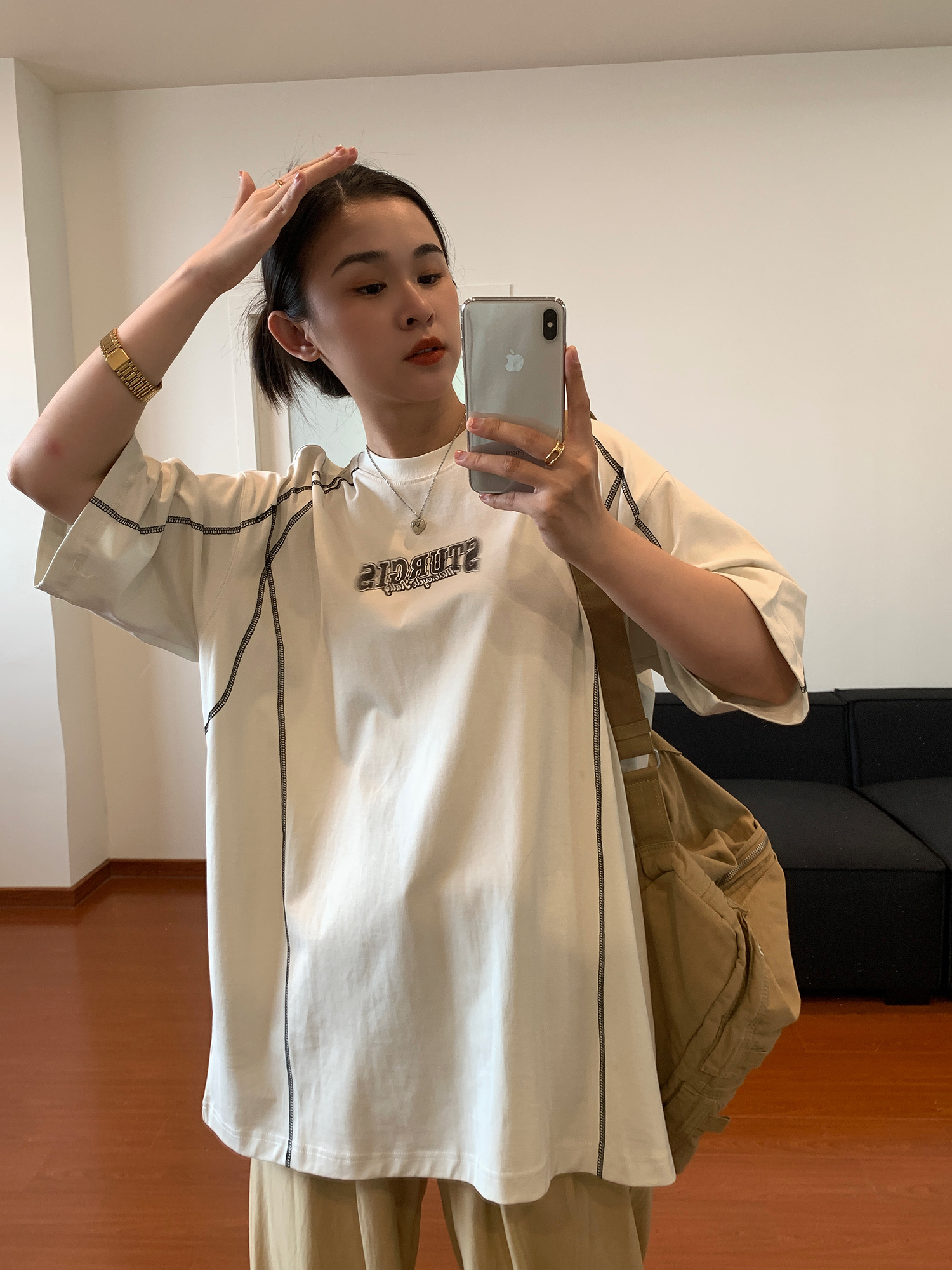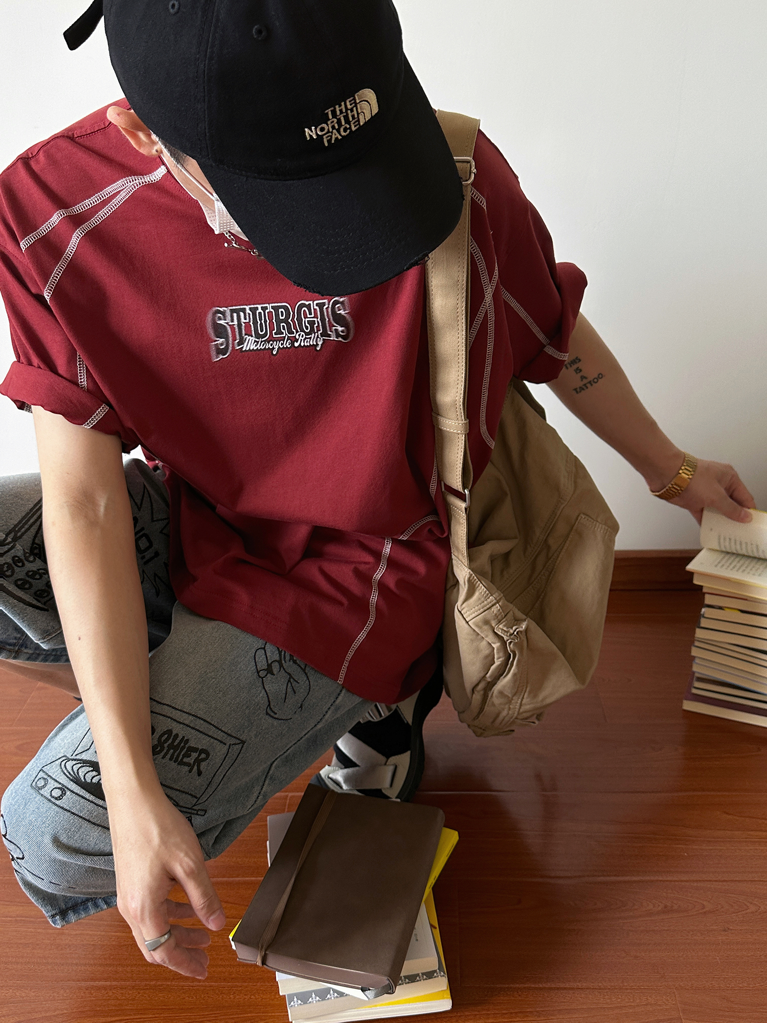 19studio WAYNEPRINCE美式復古線條設計感短袖夏季圓領印花T恤潮