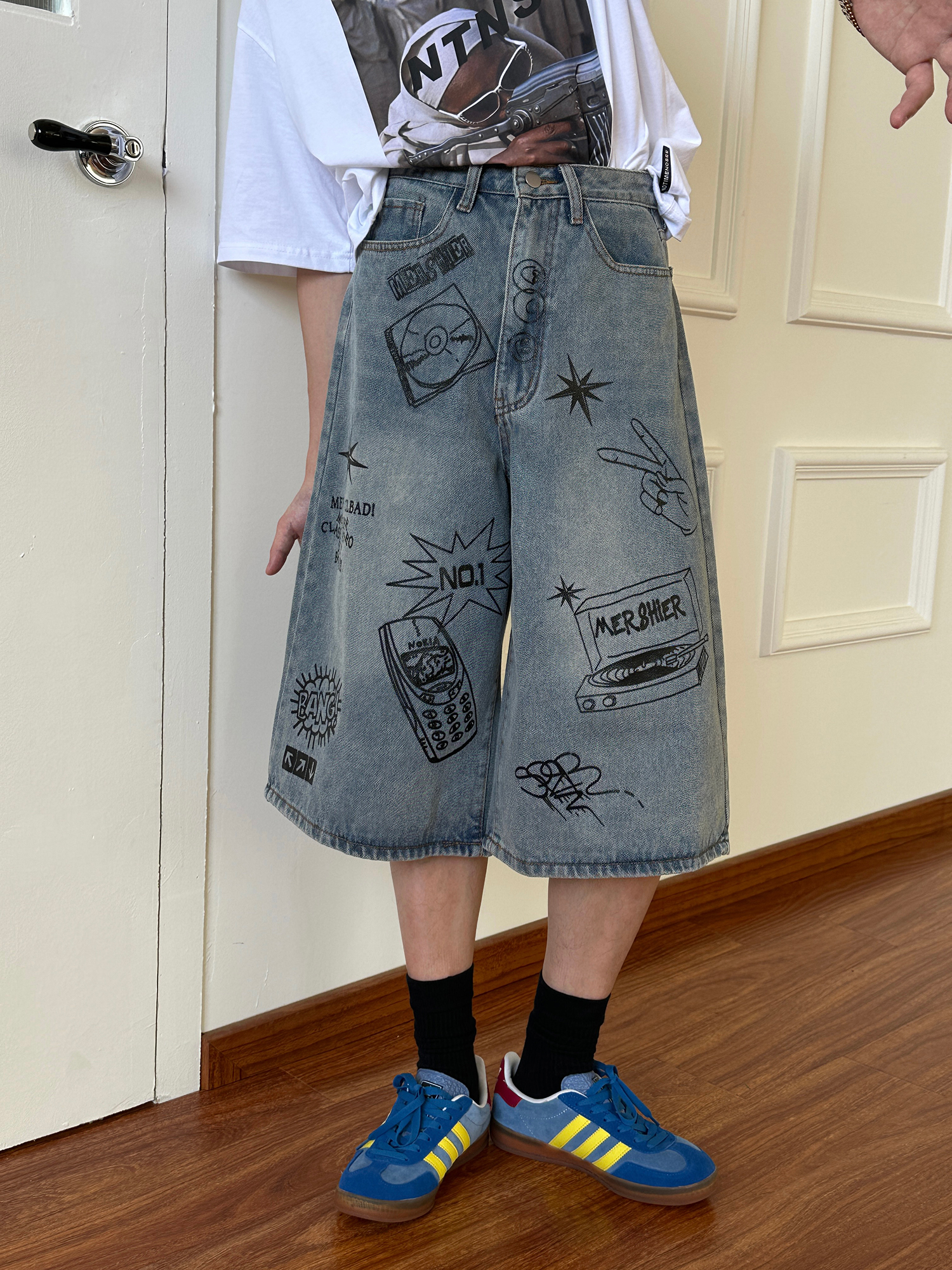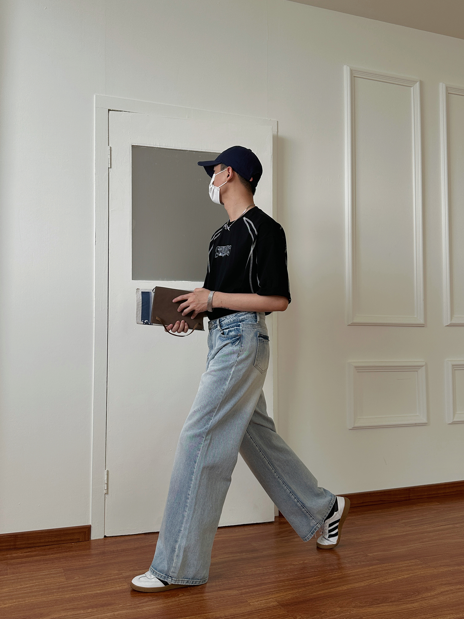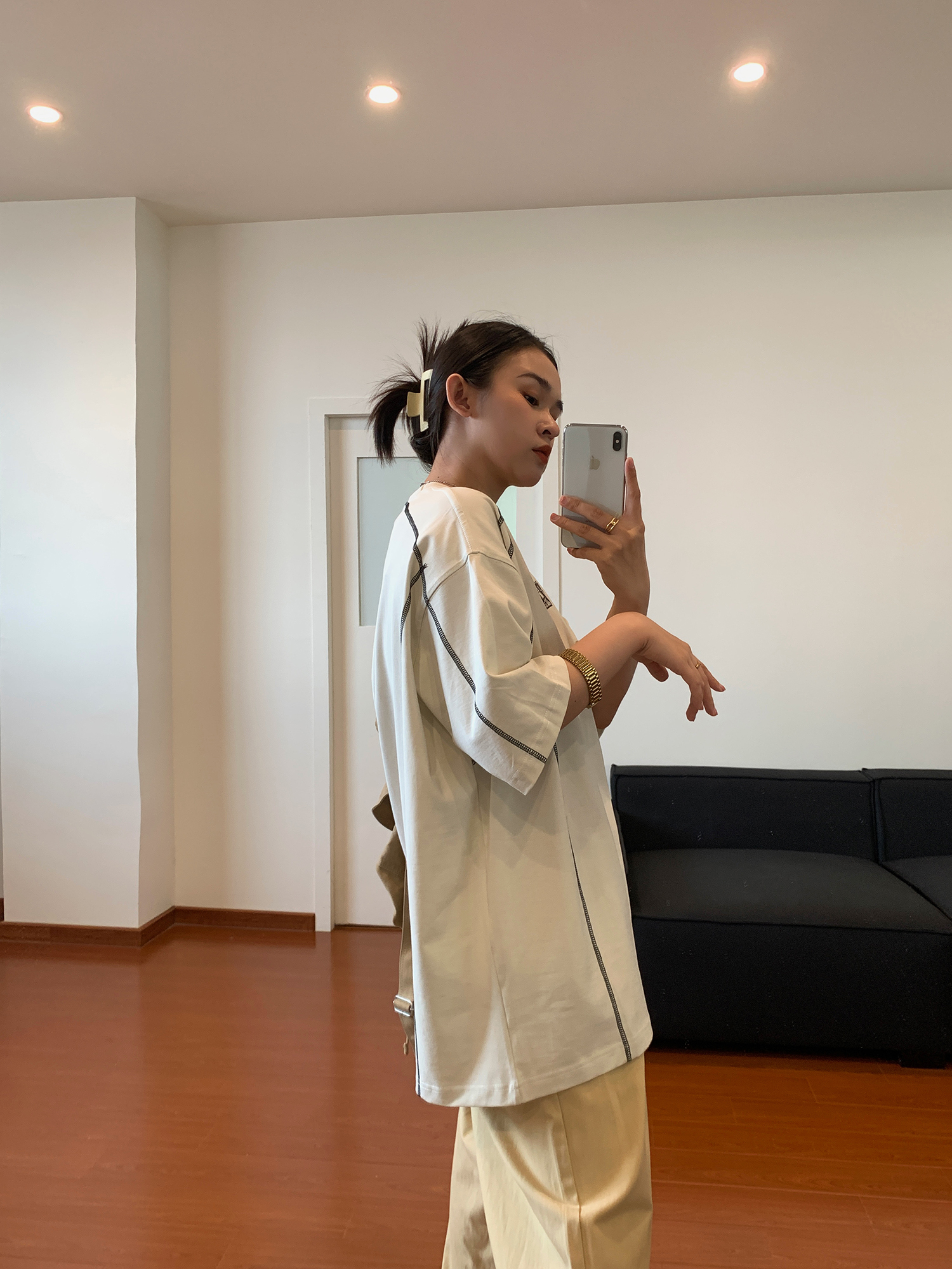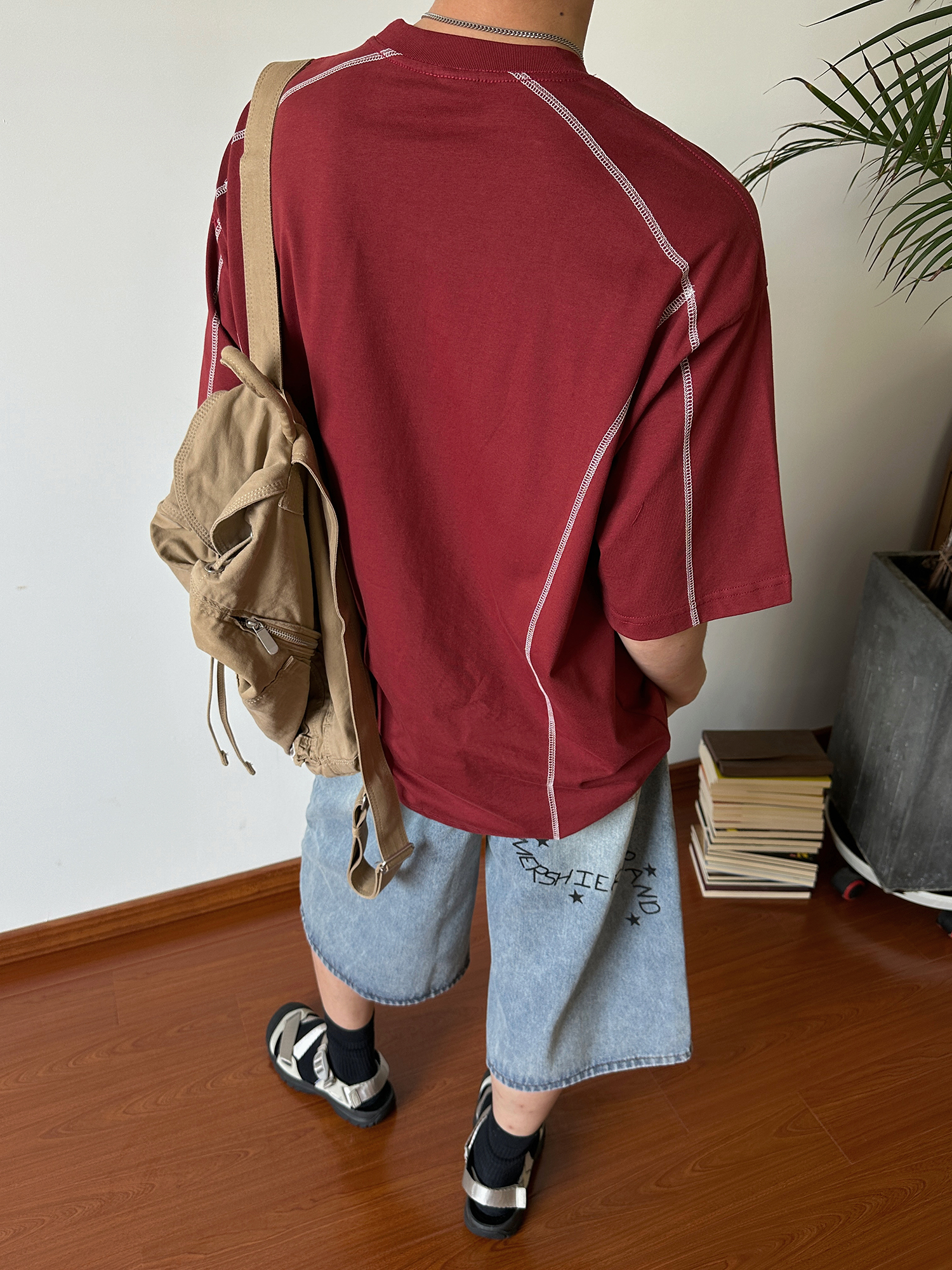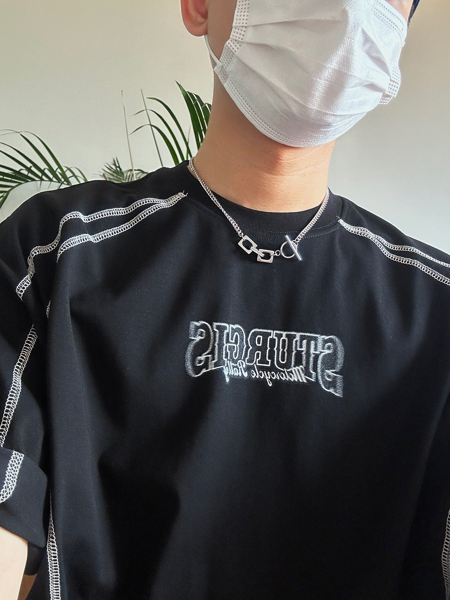 19studio WAYNEPRINCE美式復古線條設計感短袖夏季圓領印花T恤潮