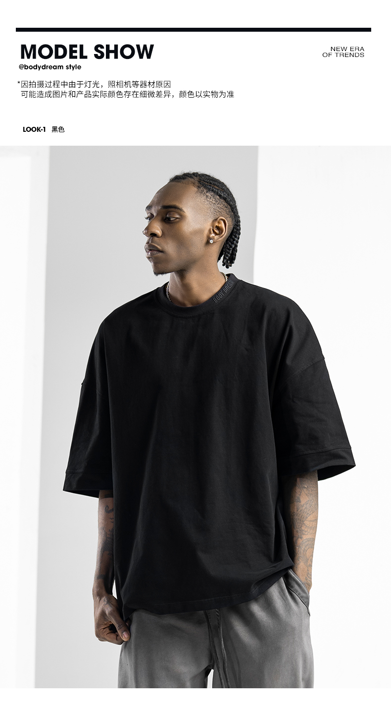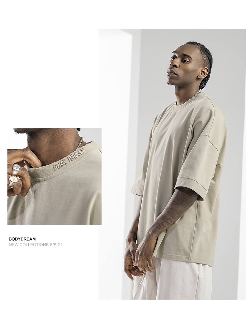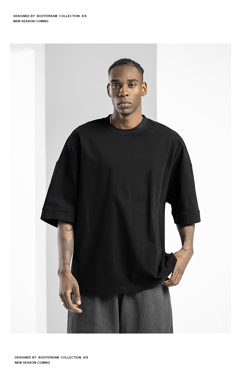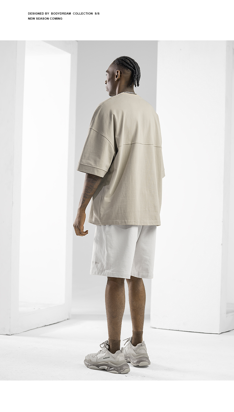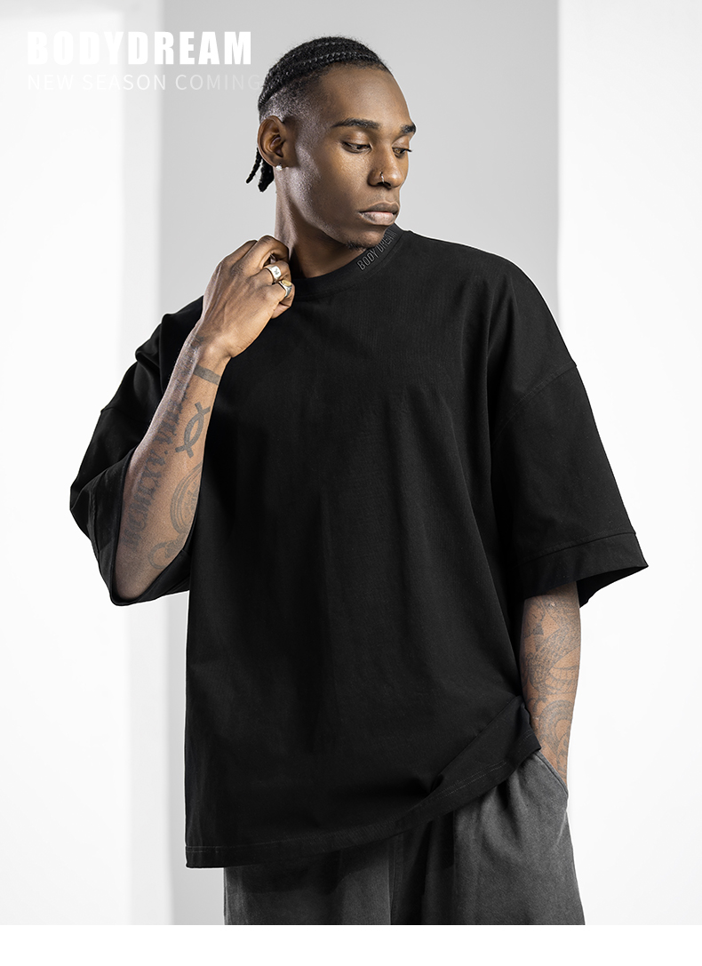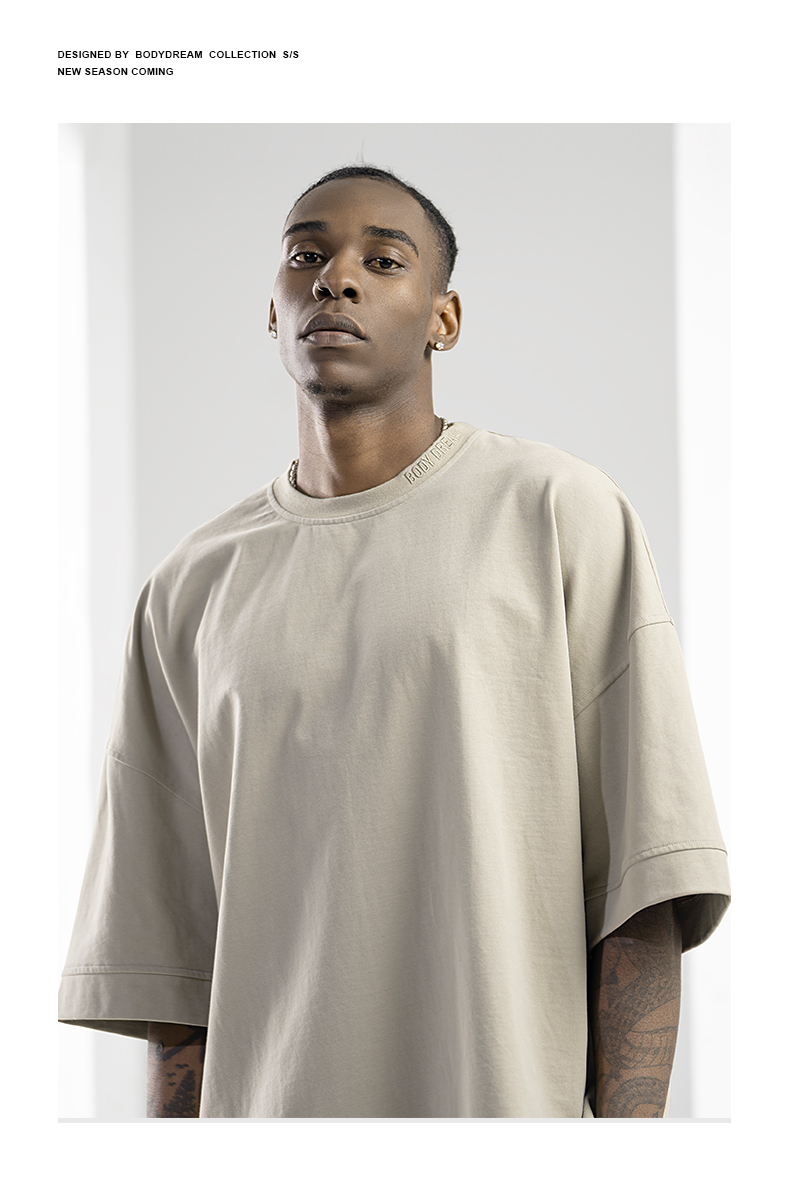BODYDREAM美式重磅純色短袖T恤男運動休閒純棉字母刺繡情侶上衣潮