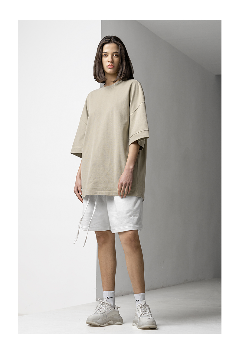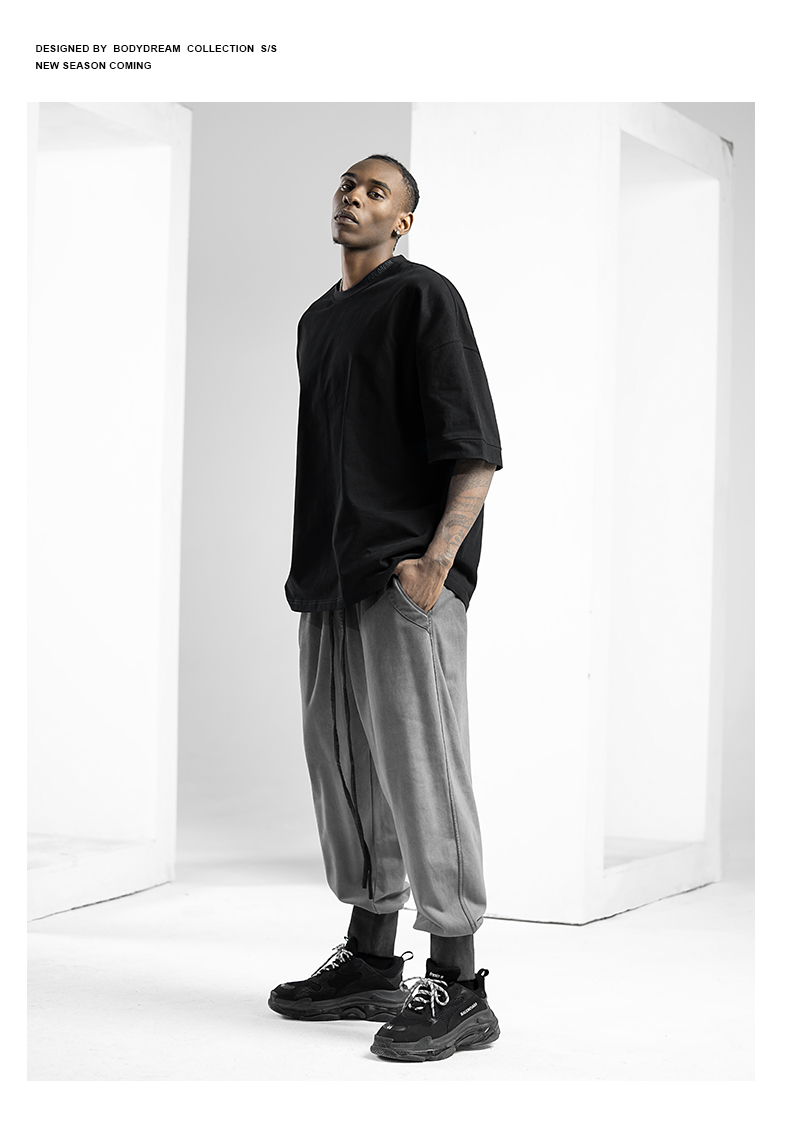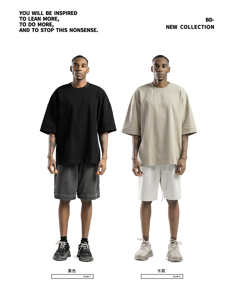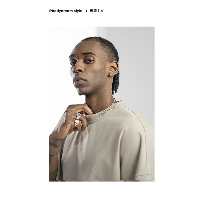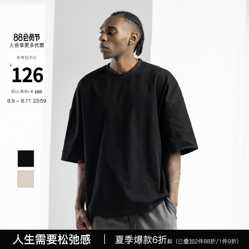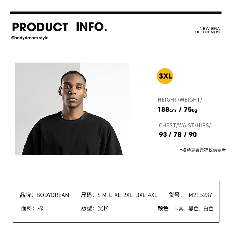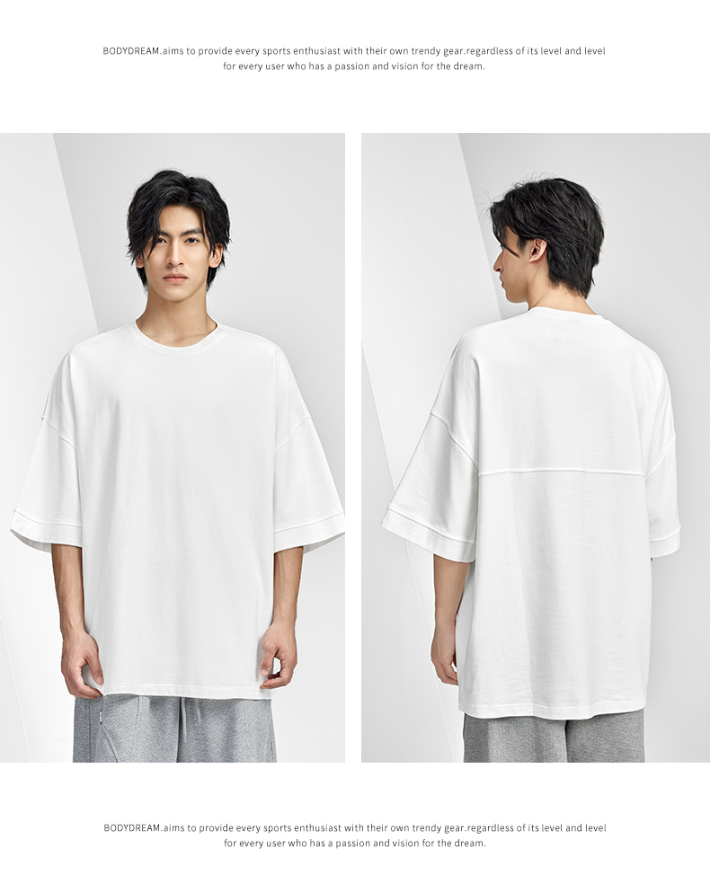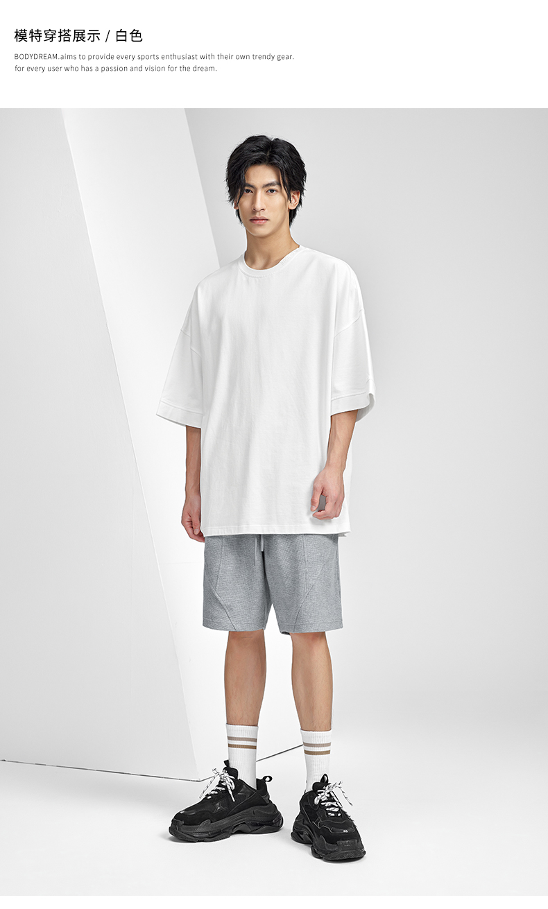 BODYDREAM美式重磅純色短袖T恤男運動休閒純棉字母刺繡情侶上衣潮