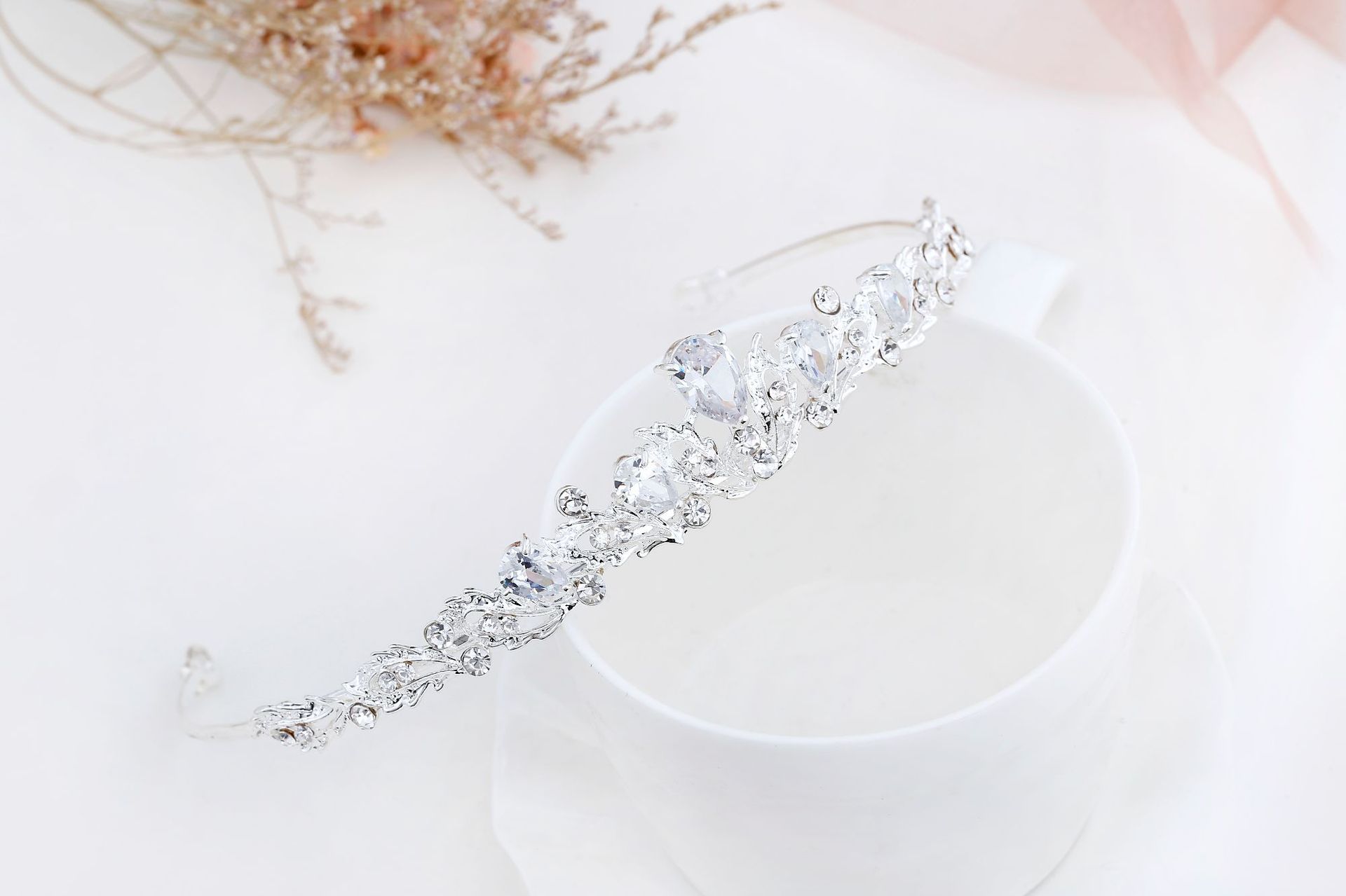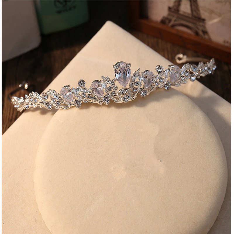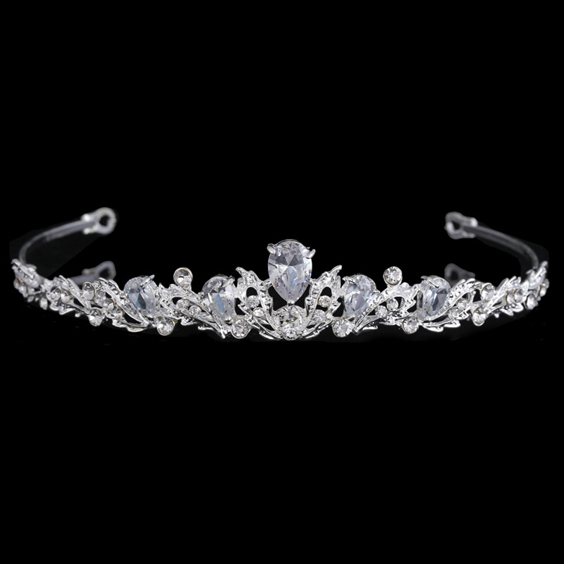 批发镶锆石合金头箍饰品电镀厚银发箍皇冠百搭头饰发饰
