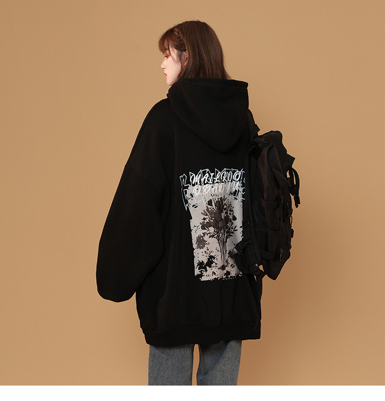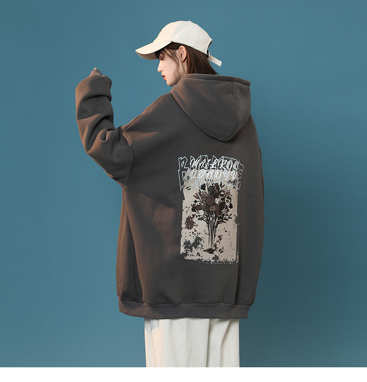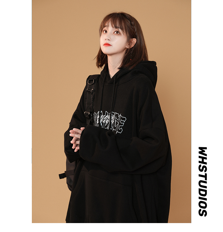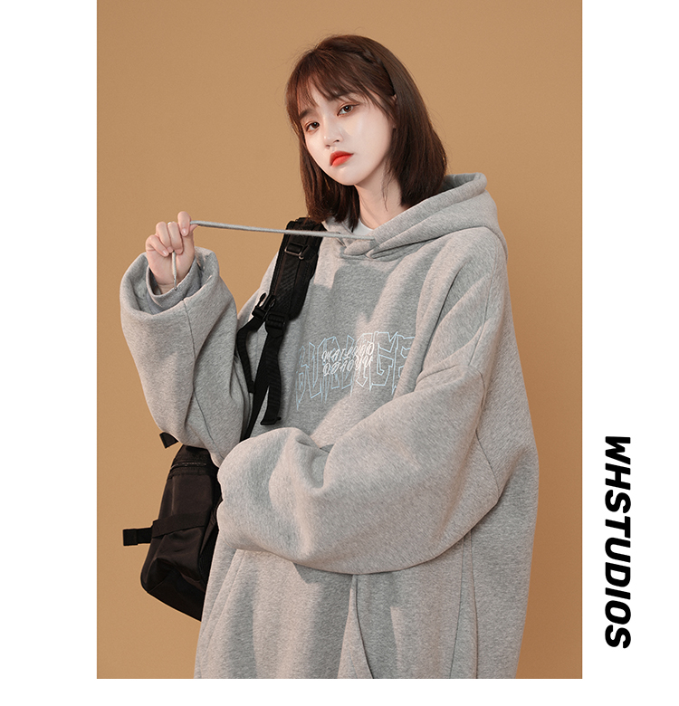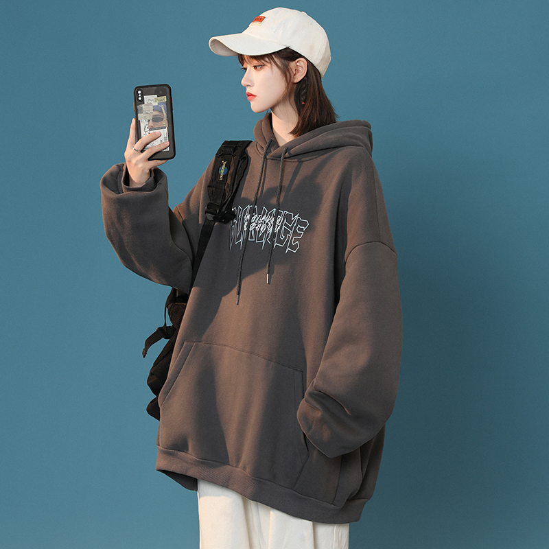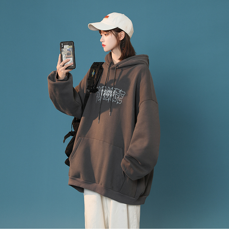 衛衣oversize小眾加絨慵懶風秋冬加厚ins潮春秋古著感連帽外套女