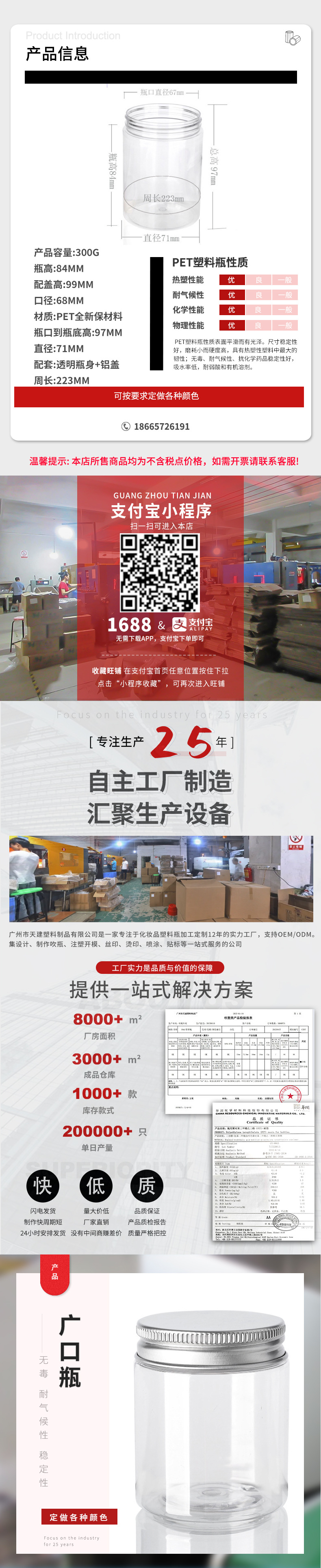现货供应300mlPET广口塑料瓶300g膏霜面霜面膜包装空瓶铝盖