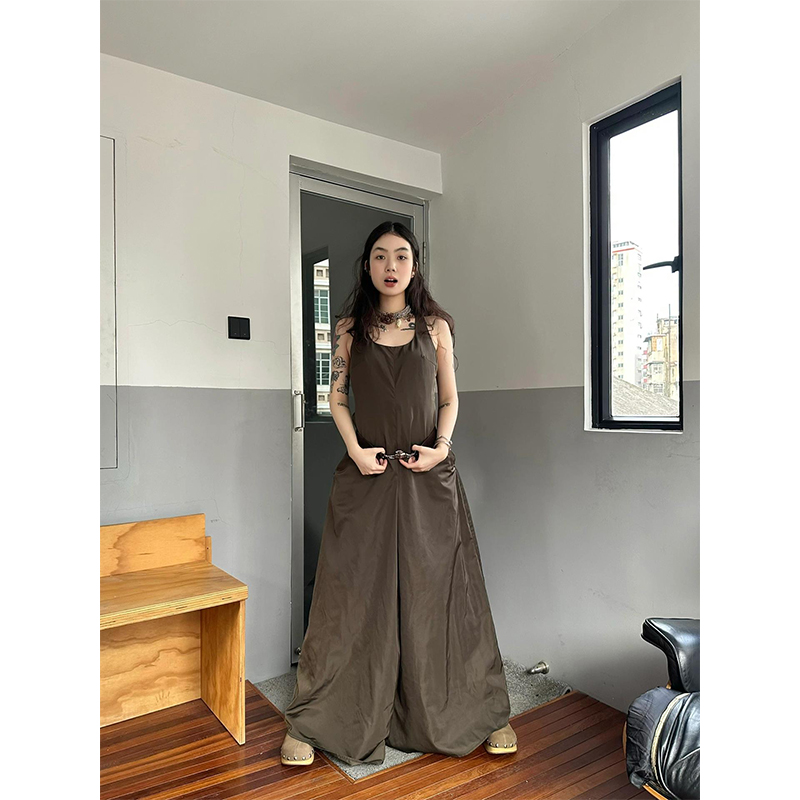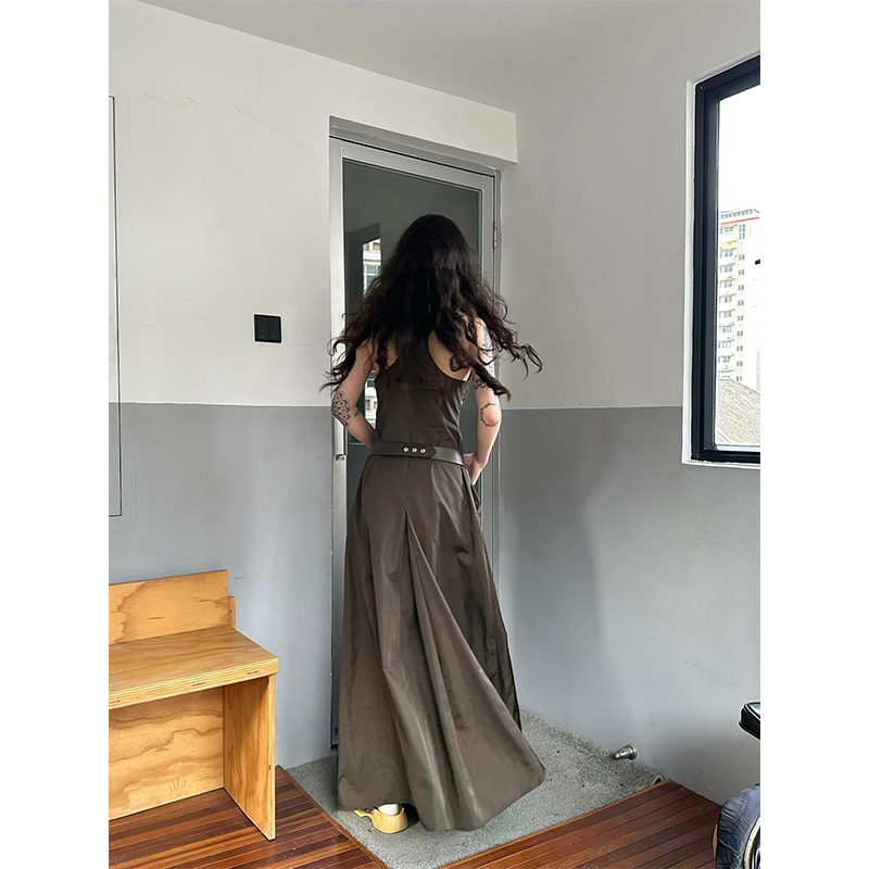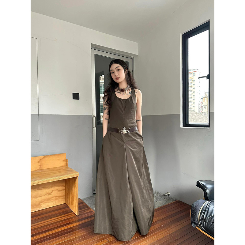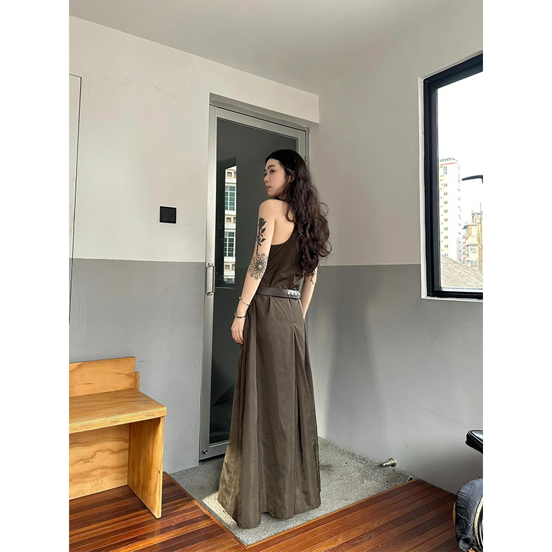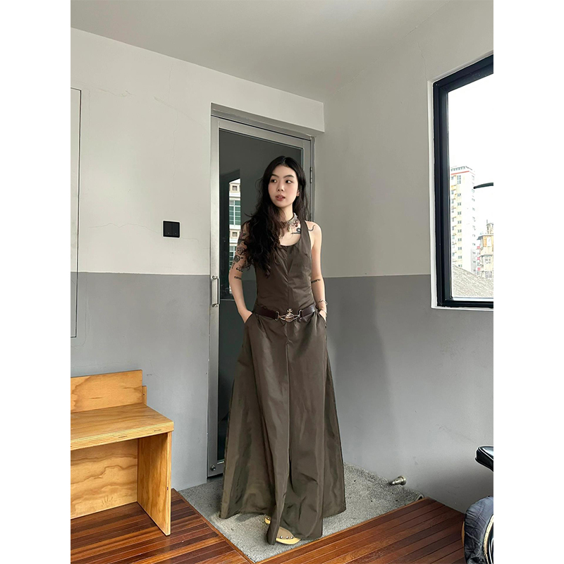 Turn right/陳大腿 純欲高級感工字背運動洋裝女夏性感吊帶長裙