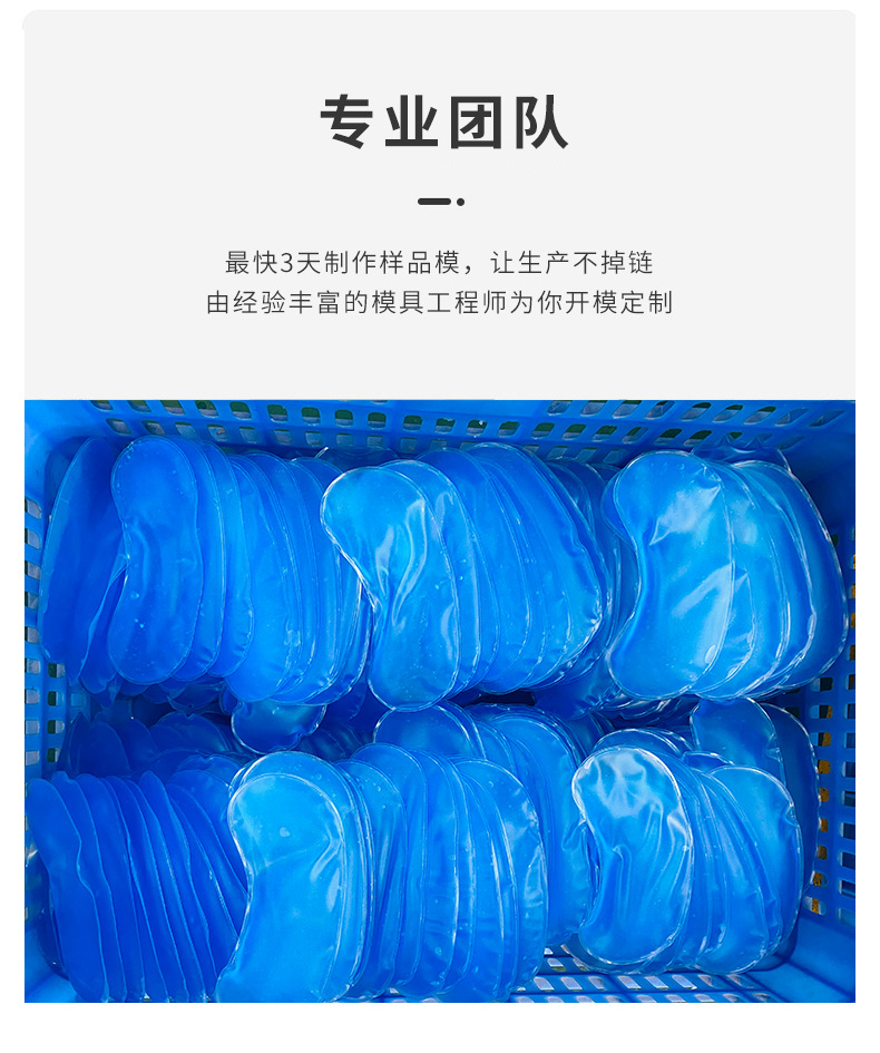 本厂秉承质优价廉、绿色环保的理念,专业生产各种规格型号的眼罩、冰袋,材质为PEVA/PVC环保物料,内入液体为环保无毒油液,可放冰箱零下30度不结冰,配合可爱卡通印刷,适合做美容及产品的促销。