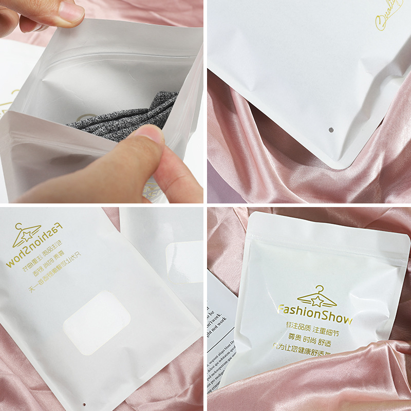 可爱卡通图案金色多条内裤包装袋袜子袋服装收纳袋白牛皮纸自封袋