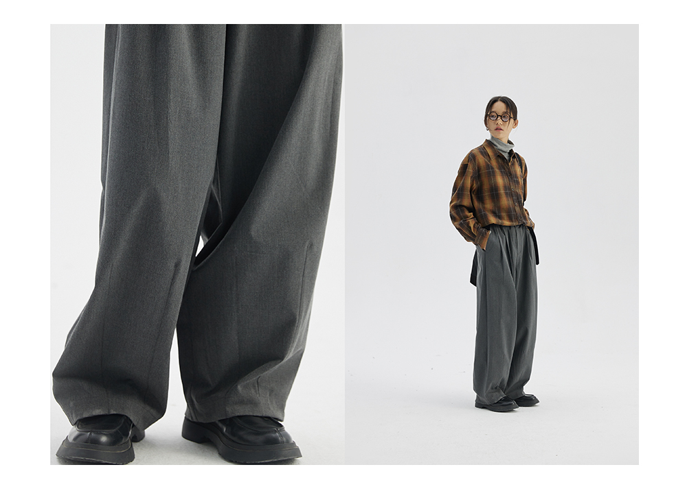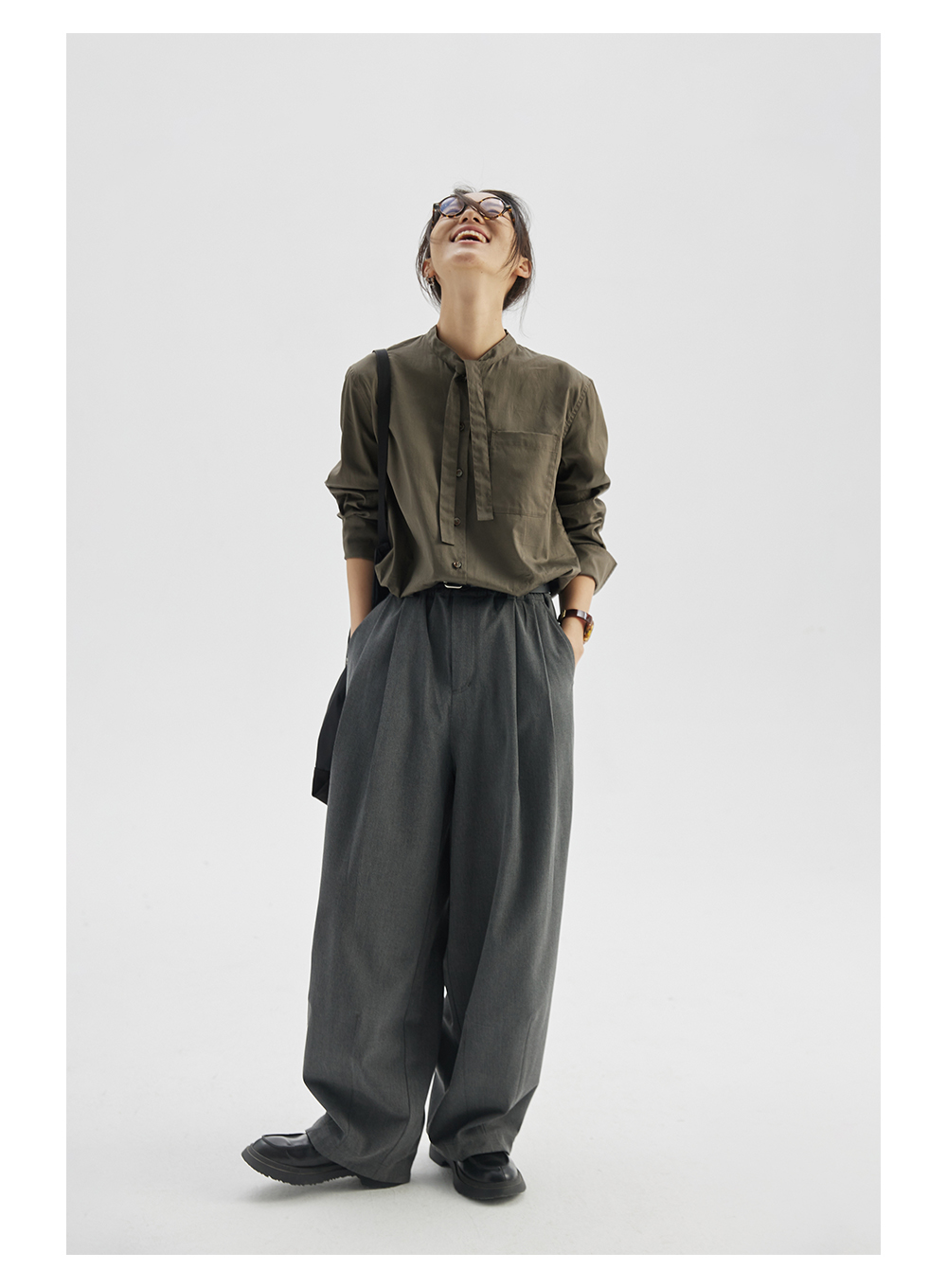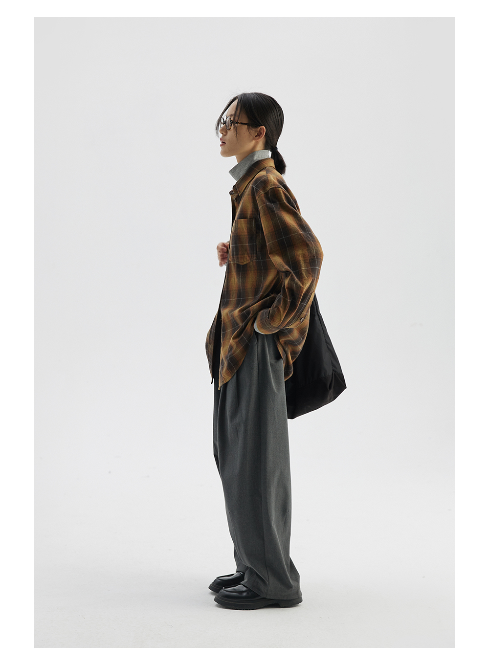 步履不停 日系復古學者風寬鬆垂感小個子直筒寬褲女褲