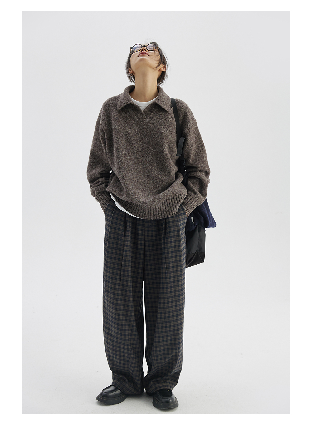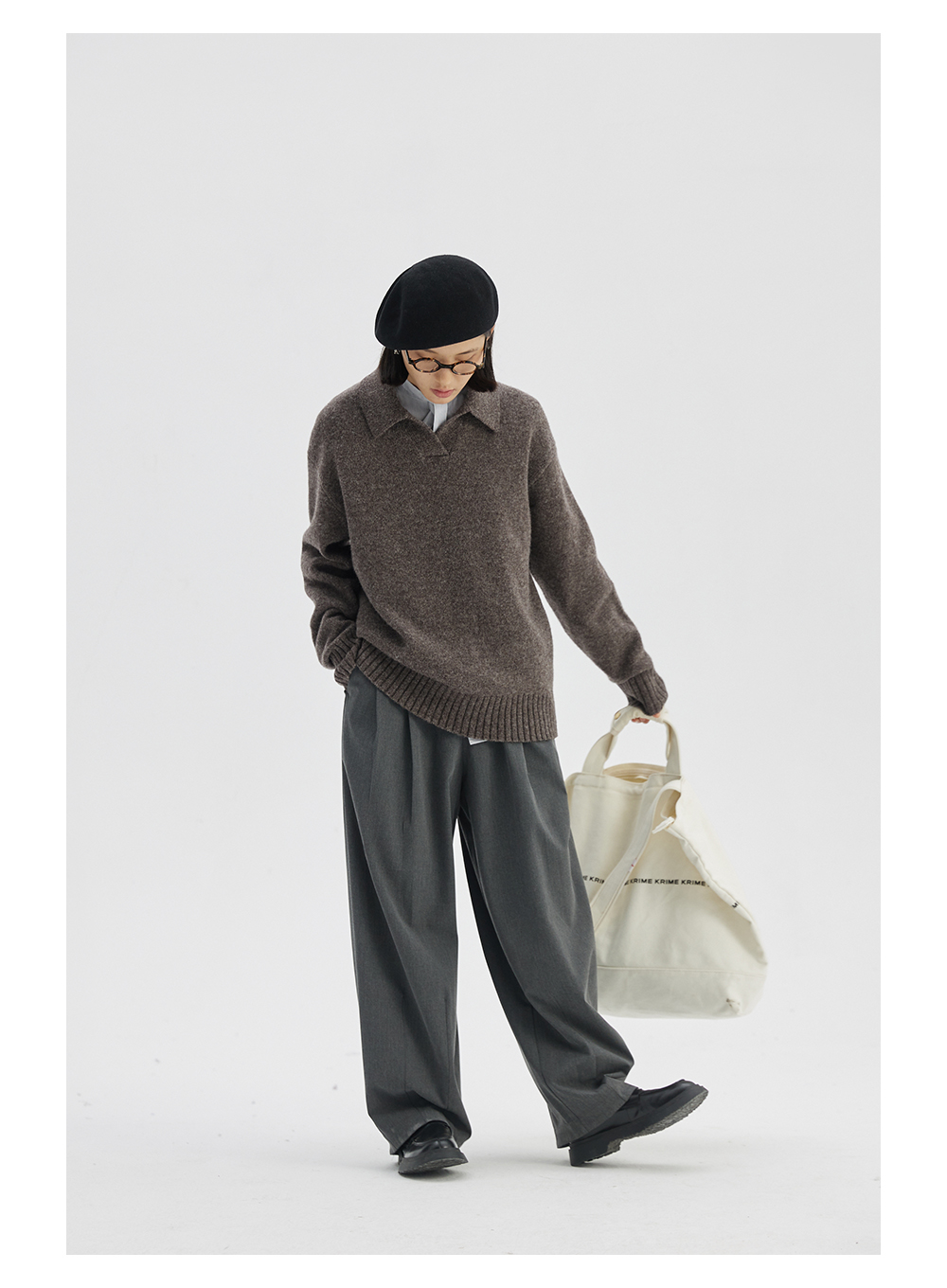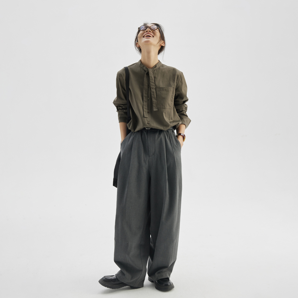 步履不停 日系復古學者風寬鬆垂感小個子直筒寬褲女褲