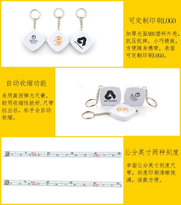 卷尺厂家供应方形2米小钢尺 带钥匙扣迷你钢卷尺 礼品卷尺2米现货