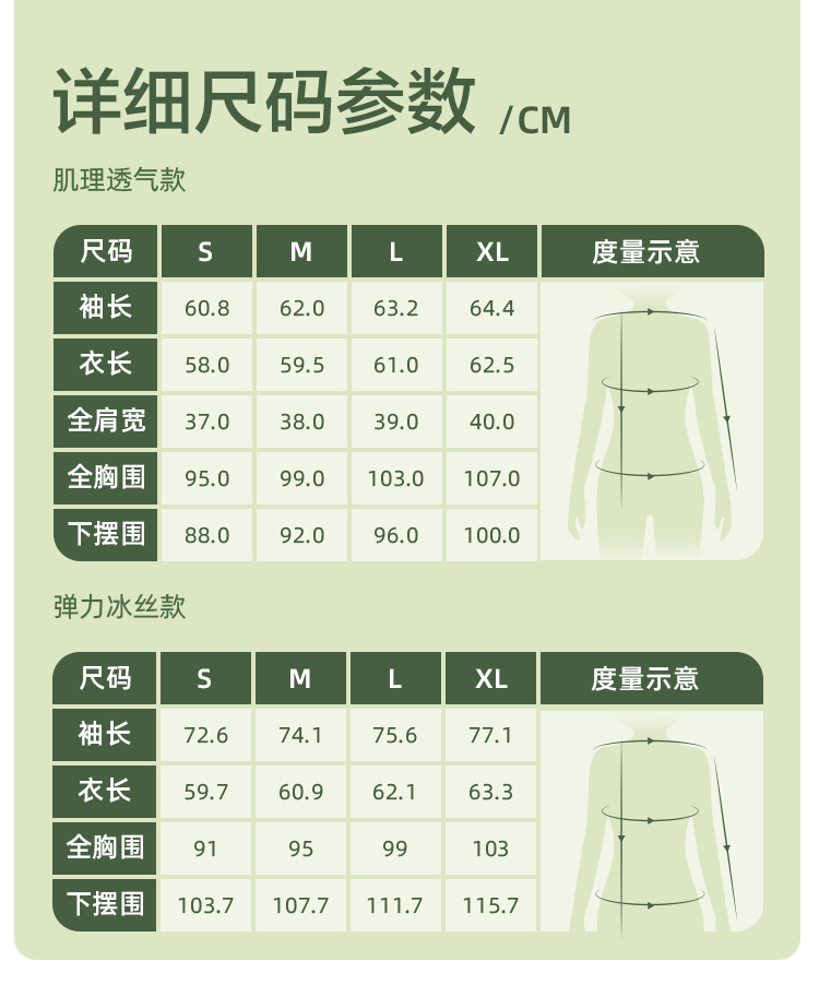 顏色分類 【肌理透氣款】布丁黃 【肌理透氣款】椰米白 【肌理透氣款】清煙藍 【肌理透氣款】蒼柏綠 【彈力冰絲款】淺藤紫 【彈力冰絲款】鬆煙藍 【彈力冰絲款】霜雲白 【彈力冰絲款】藍菸灰