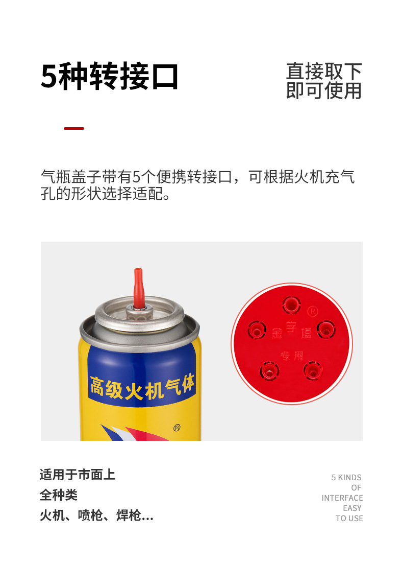 高纯度打火机气体 通用国标接口 金字塔百诚焦点海豚气体