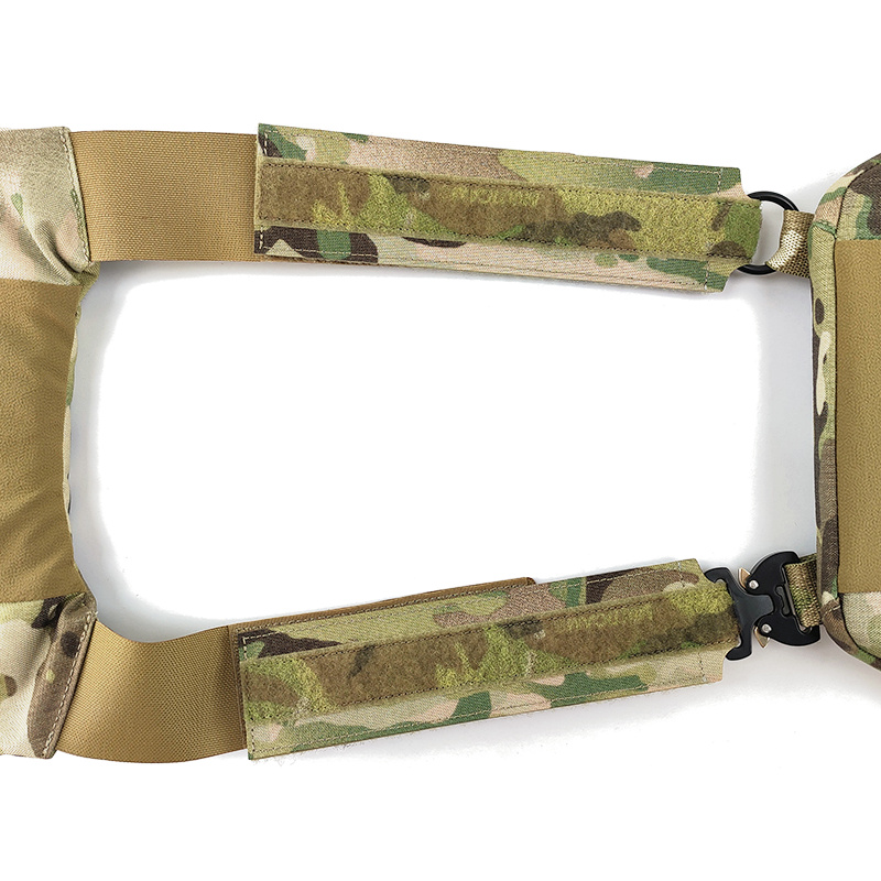 材质原品CP Multicam面料原品Squadron复合面料Cordura消光尼龙500D(哑光)、橘皮四面弹里料、原品织带原品1寸眼镜蛇插扣YKK10号拉链兼容ferro原品拉链背板包、原品TEGIRS 12层纤维塑板、原品魔术贴、原品雪绒布。(仅右肩(图上左边)的圆扣非原品)。两肩的扣具可拆卸调换/更换