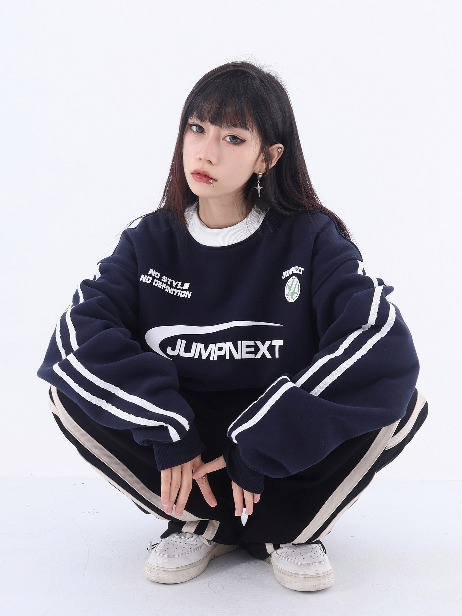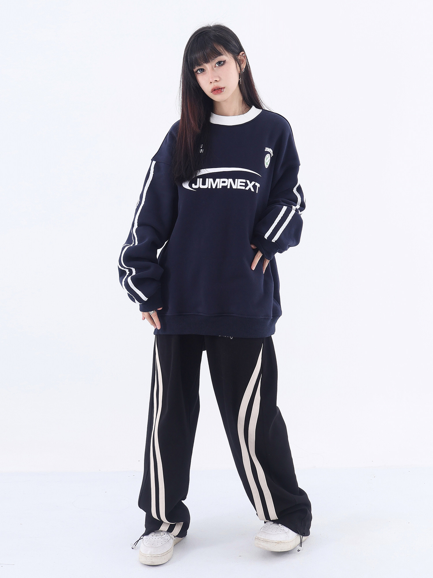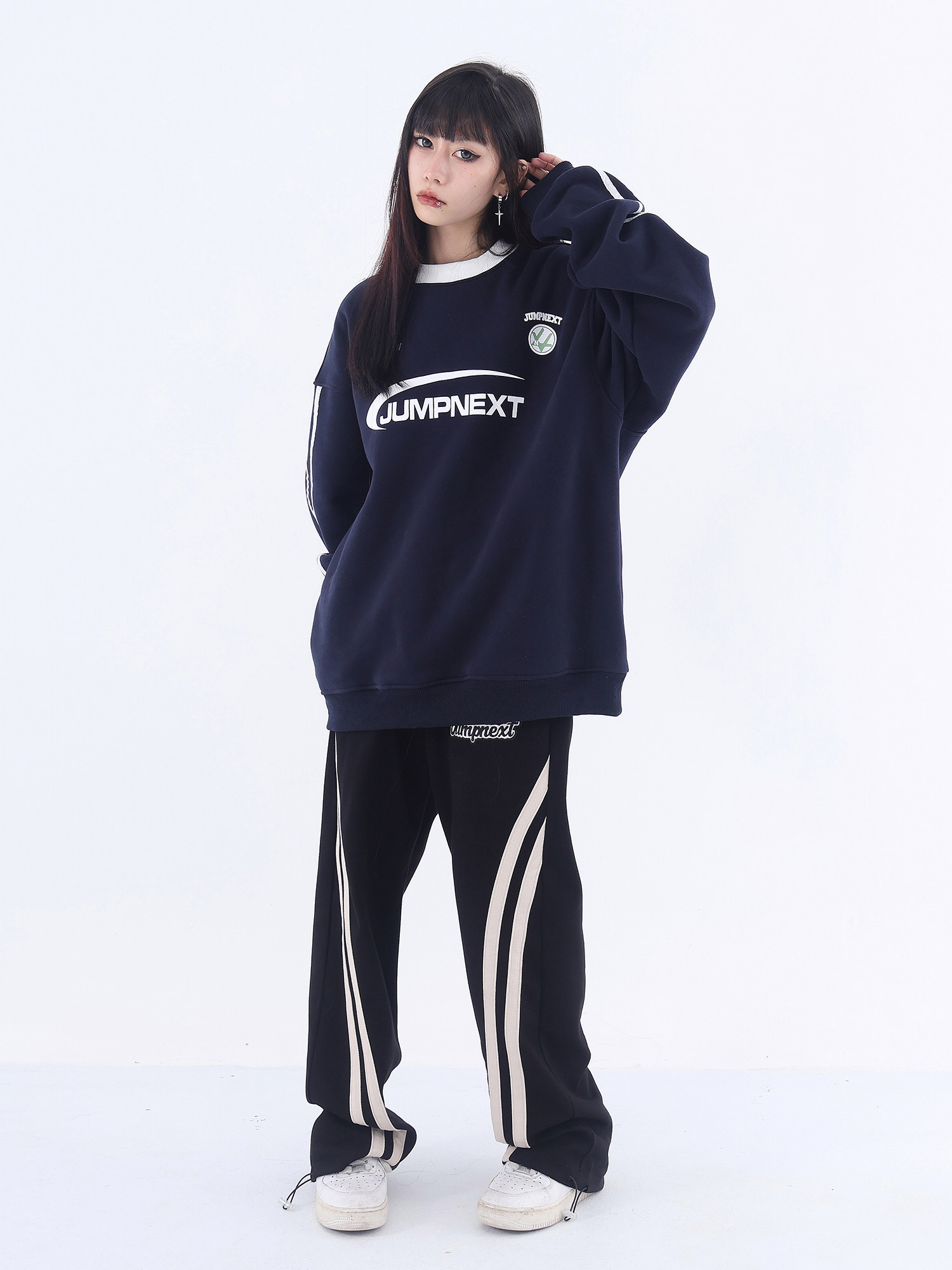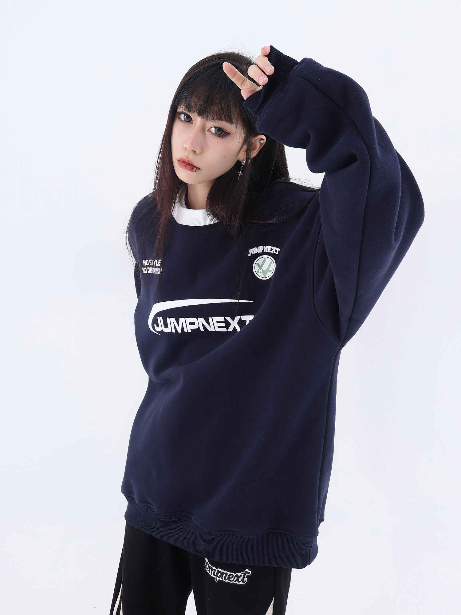JUMPNEXT國潮牌美式復古運動風字母印花圓領加絨情侶寬鬆套頭休閒上衣