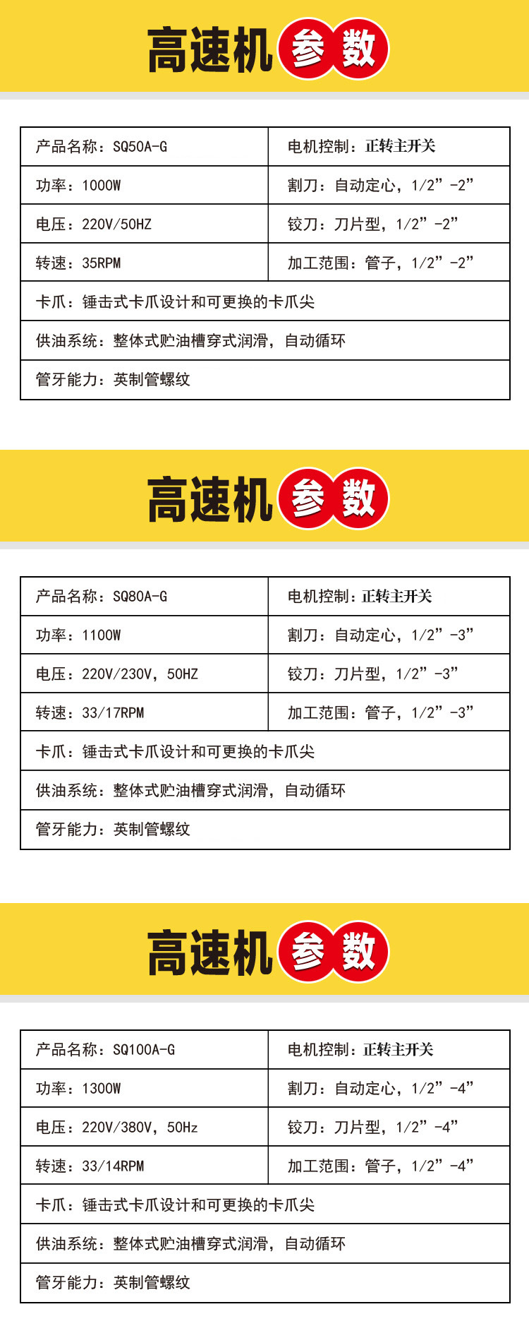 虎王厂家直销2寸高速套丝机镀锌水管钢管电动切管套丝机SQ50A-G