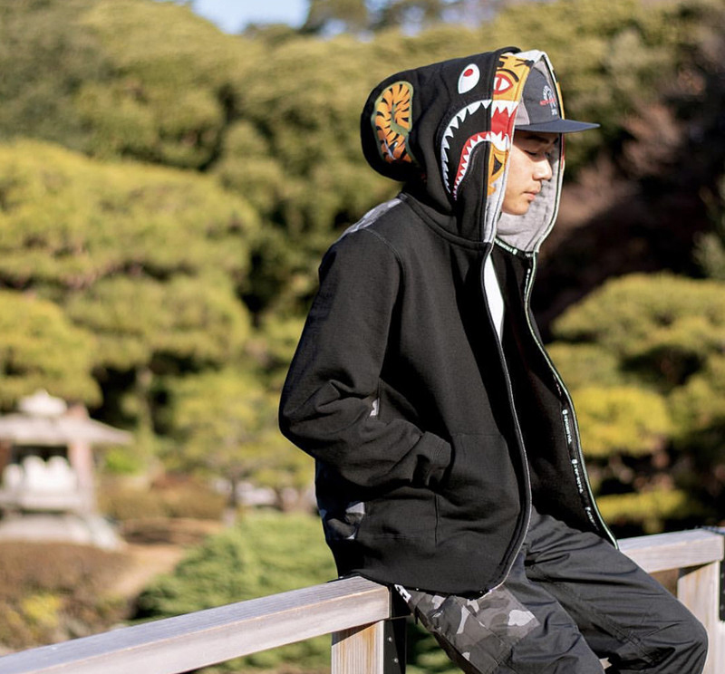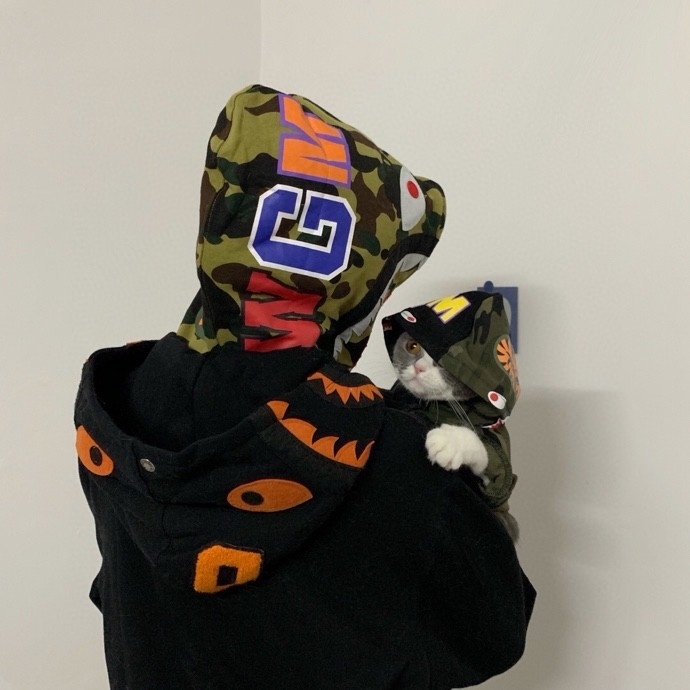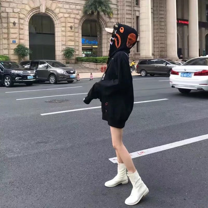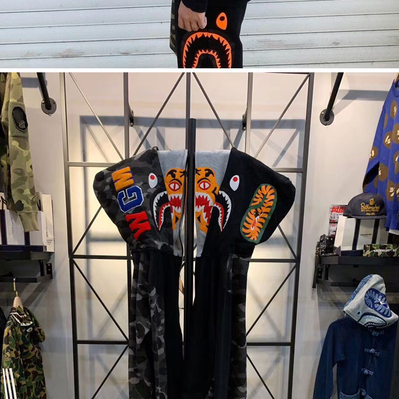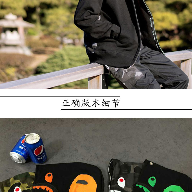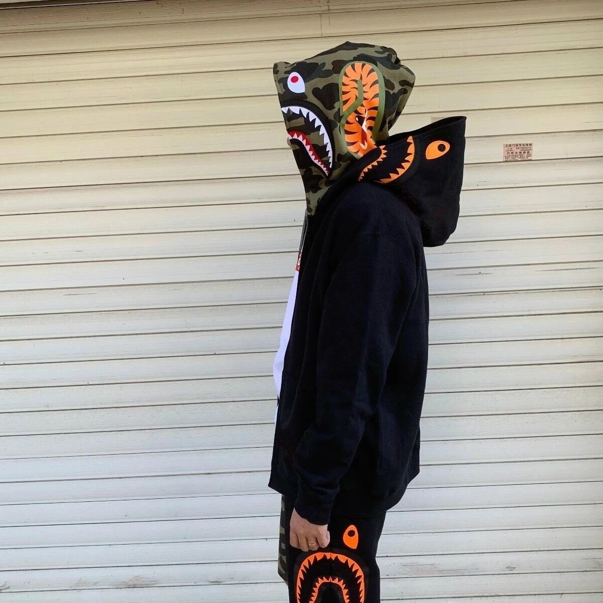 ins鯊魚雙帽外套連帽運動衫迷彩開衫寬鬆情侶男女學生潮牌夜光猿人