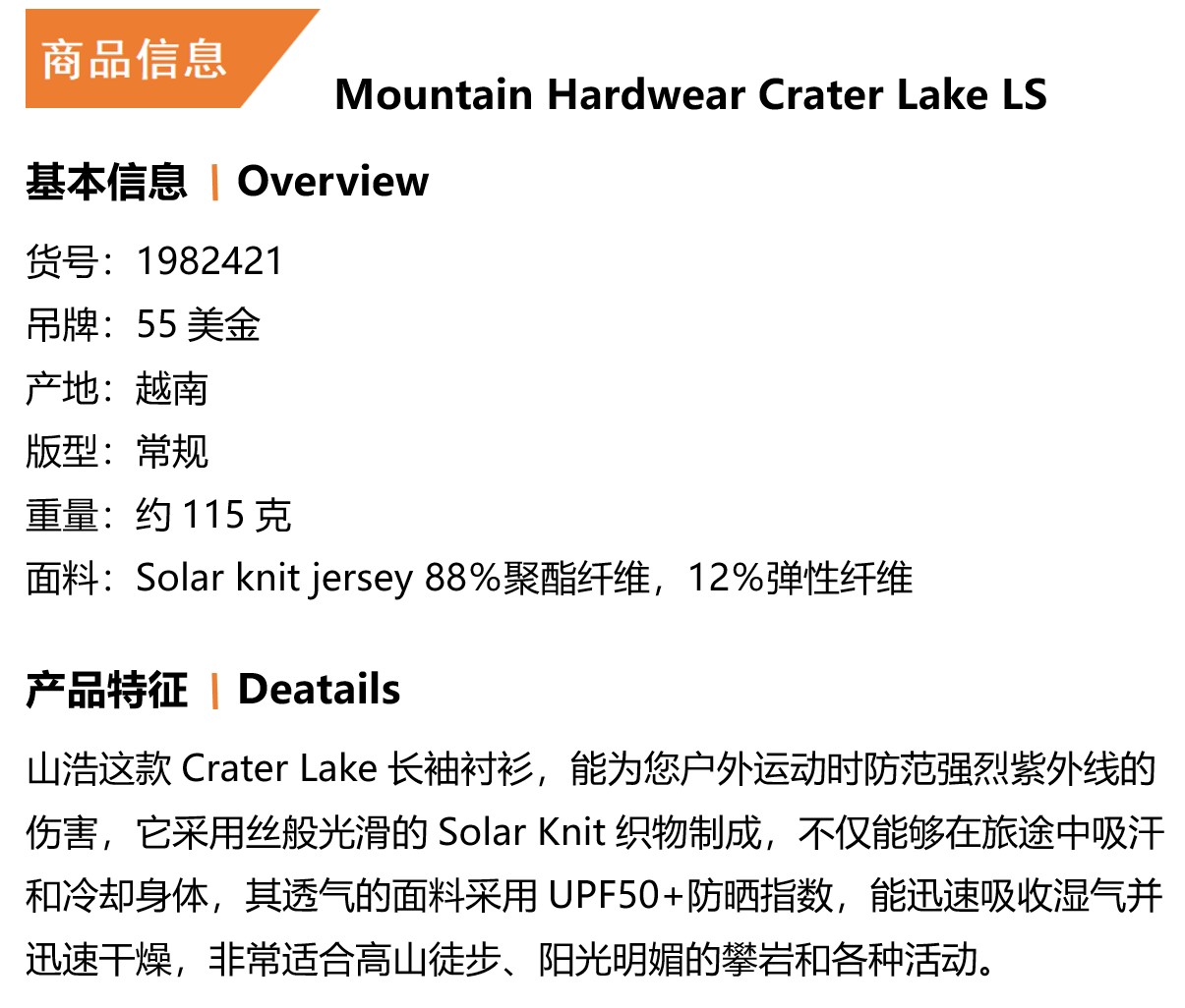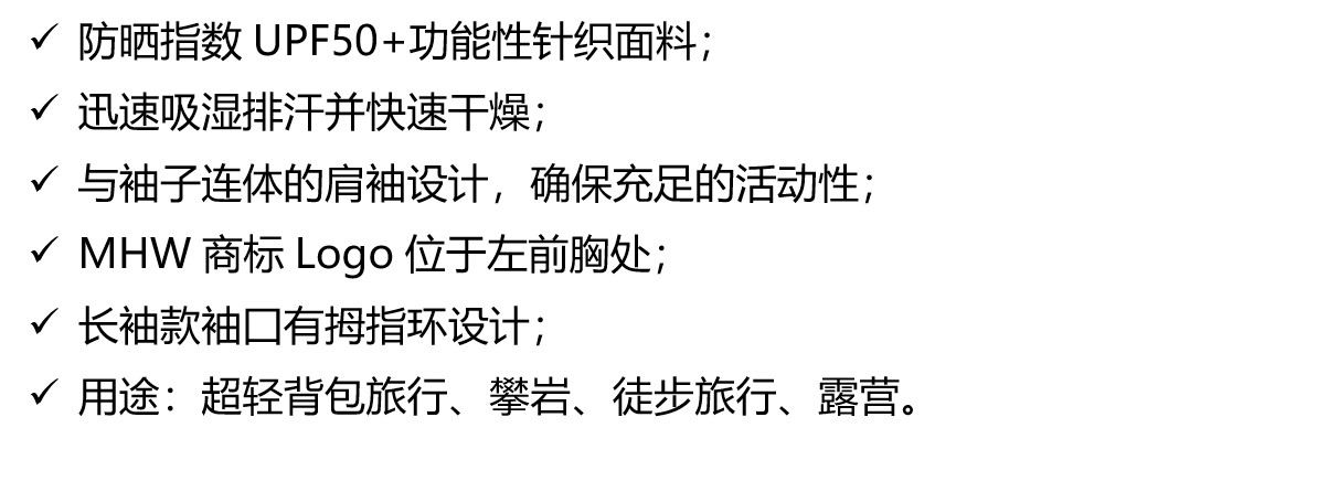 主要功能 抗UV,透氣,速乾,超輕,吸汗