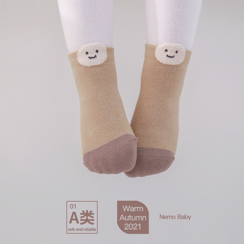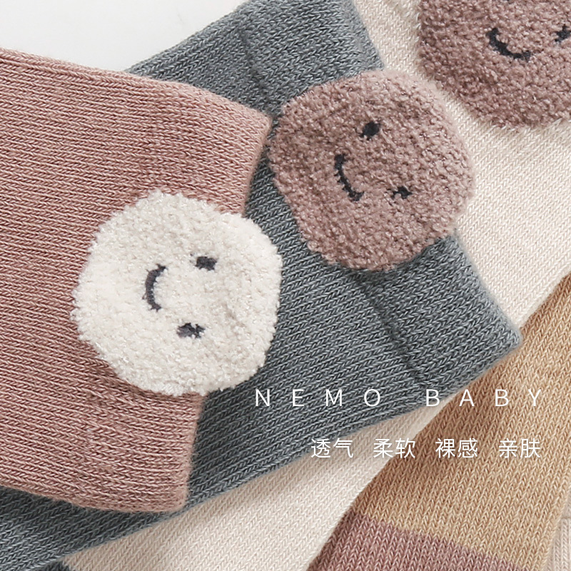 21新生婴儿袜子春秋精梳棉透气笑脸防滑韩版可爱卡通秋冬儿童袜子