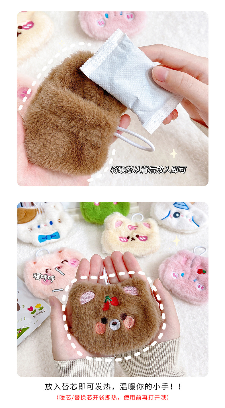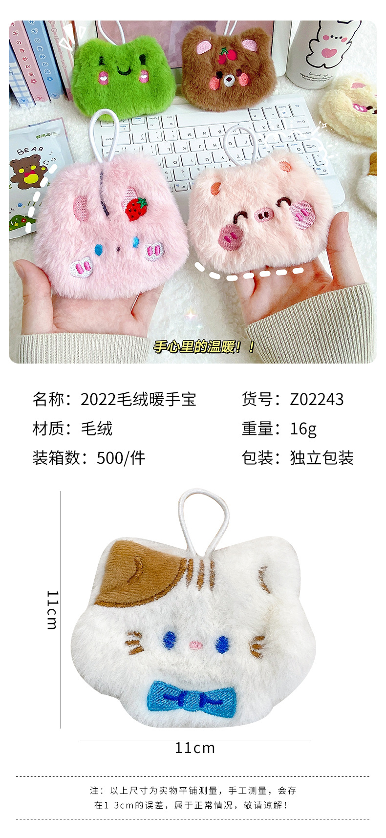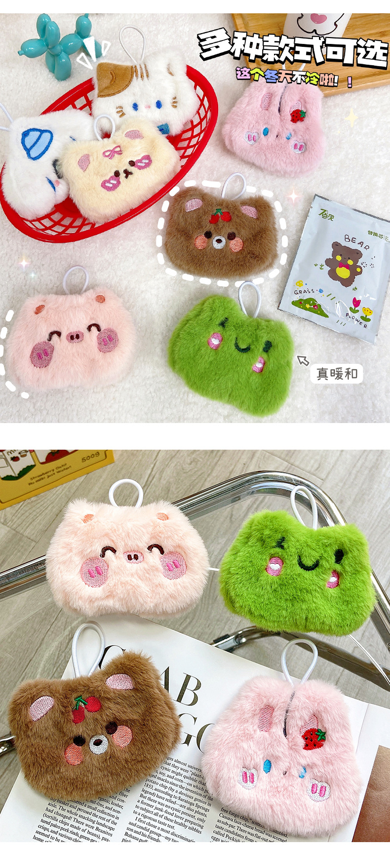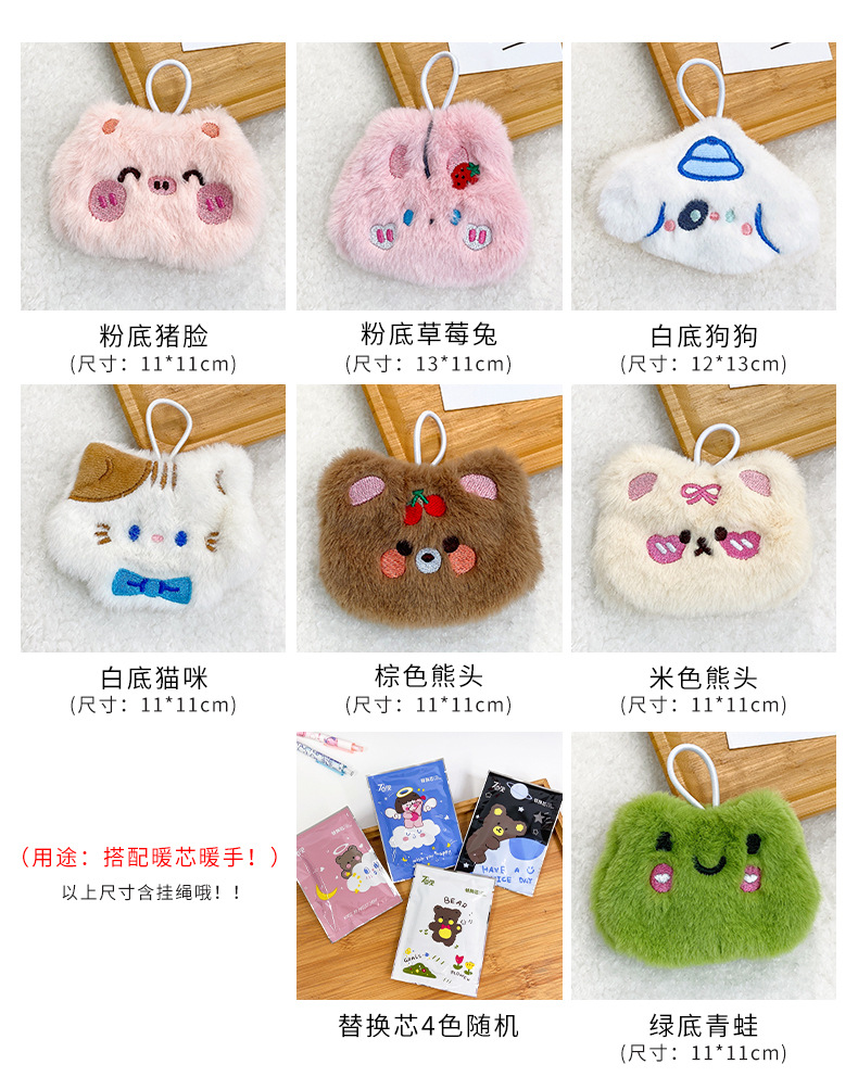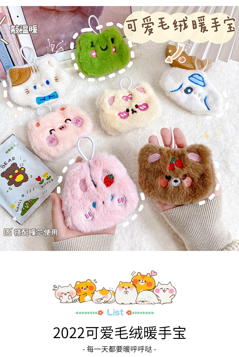 可爱毛绒刺绣暖手宝暖手自发热暖蛋手握式迷你学生卡套暖手宝宝