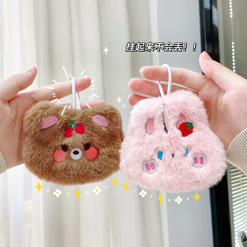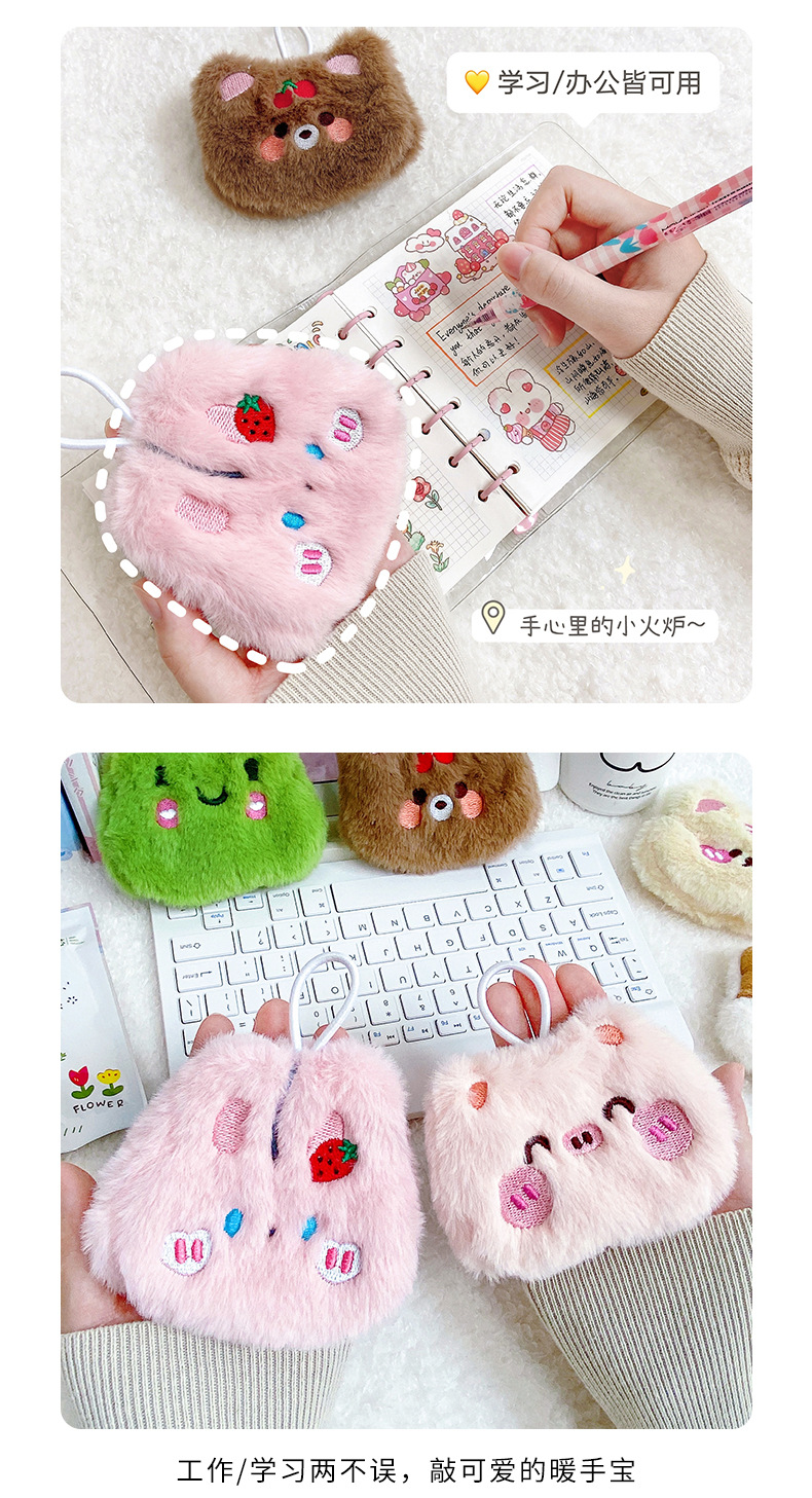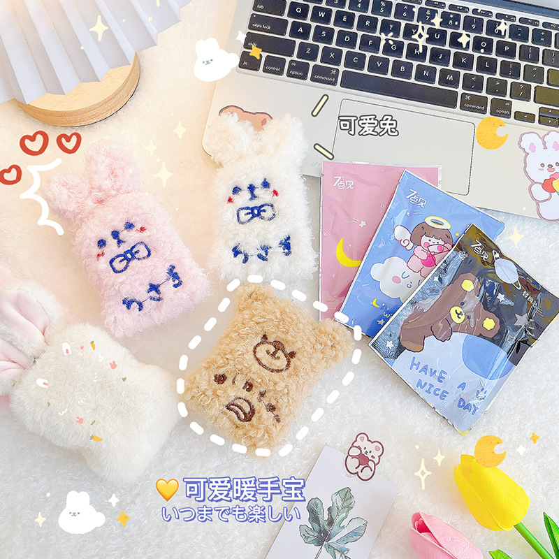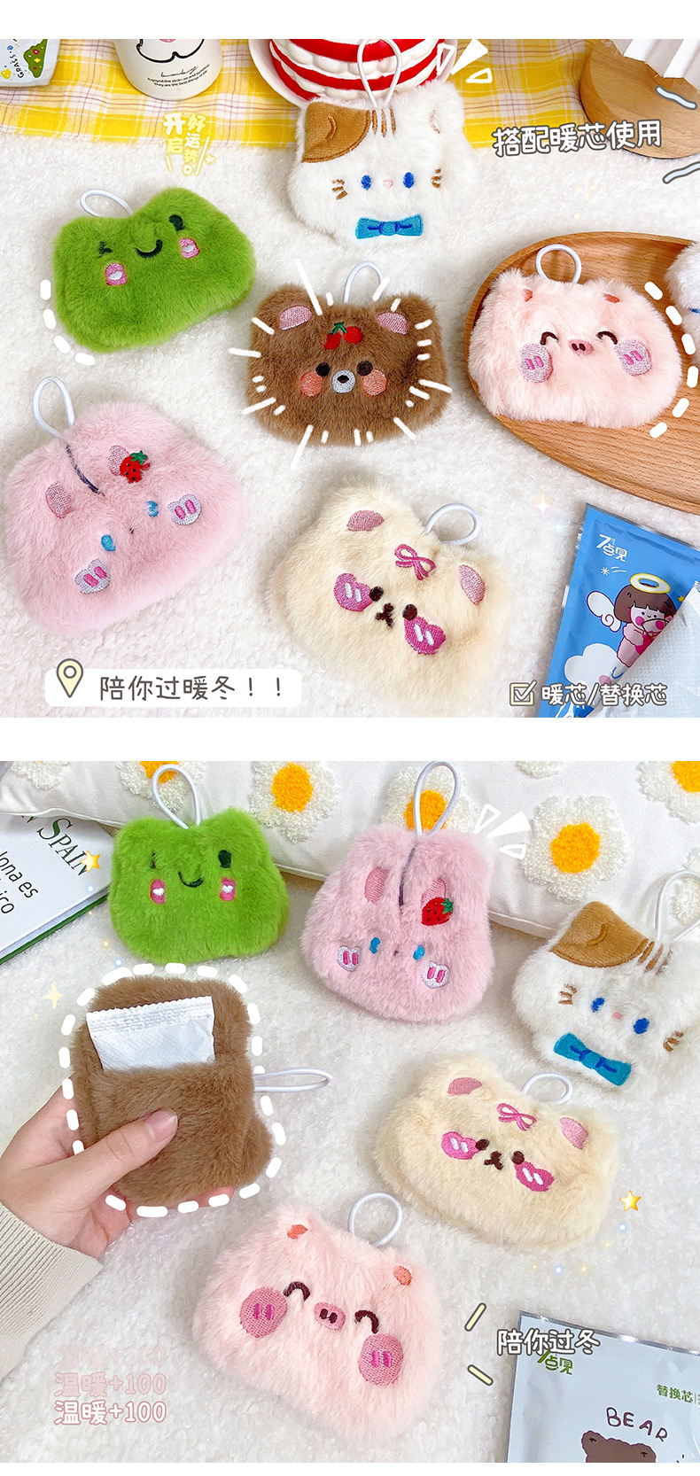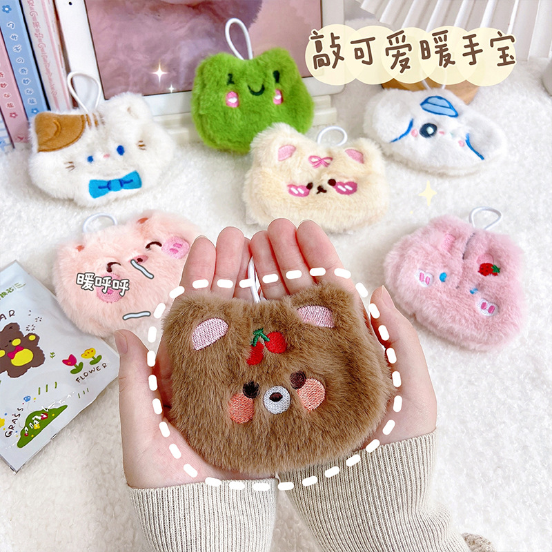 可爱毛绒刺绣暖手宝暖手自发热暖蛋手握式迷你学生卡套暖手宝宝