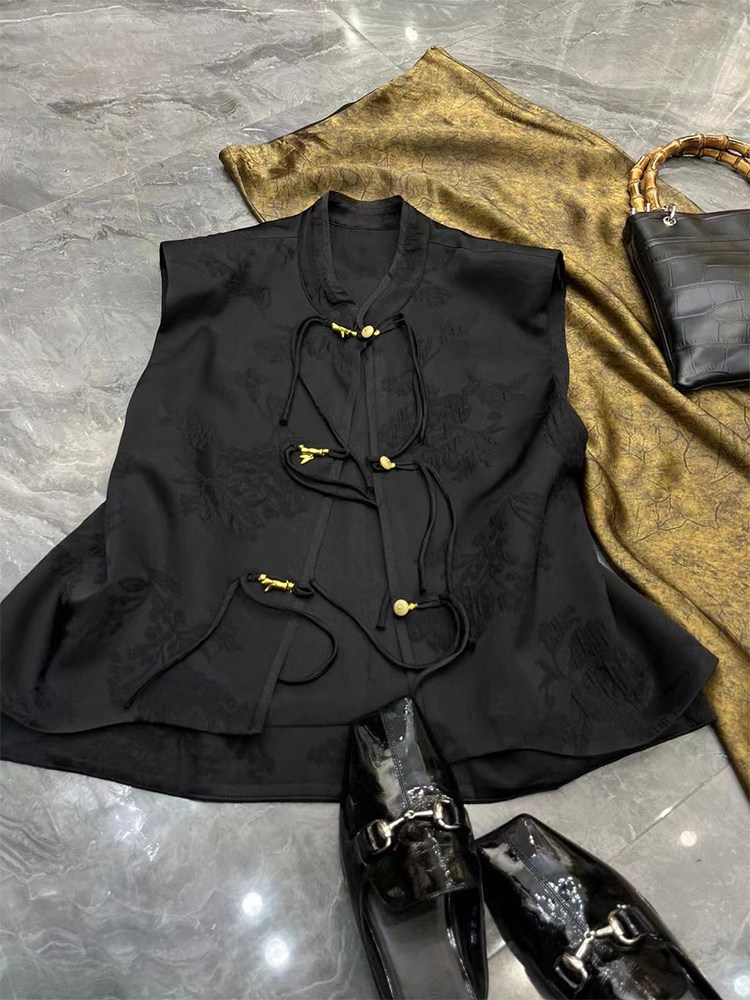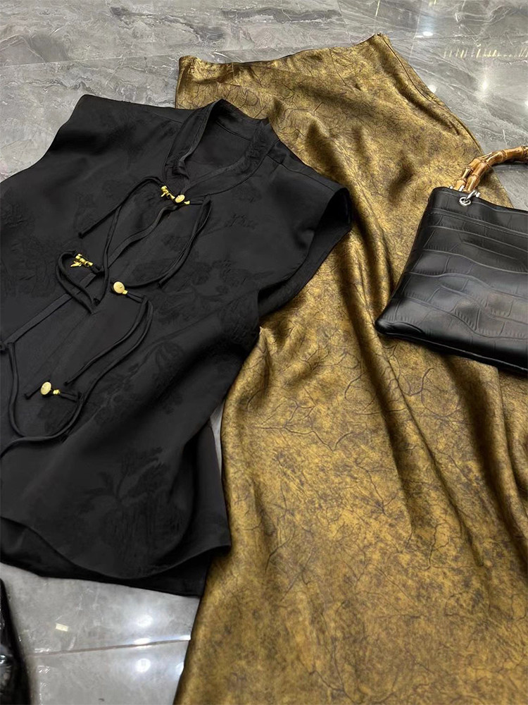 新中式女裝國風禪意黑色馬甲唐裝半身長裙兩件式套裝裙2023夏季新款