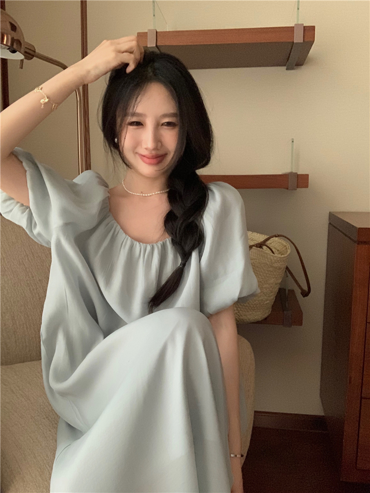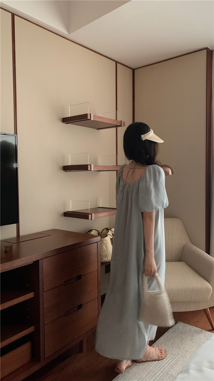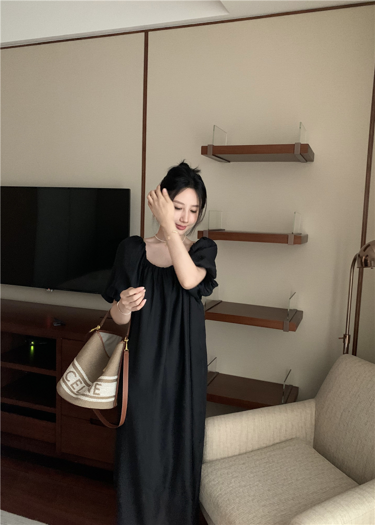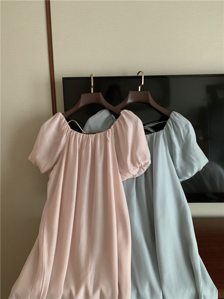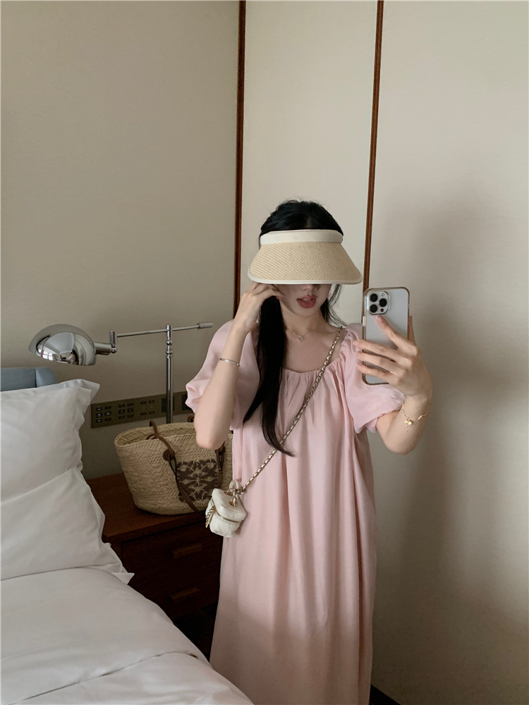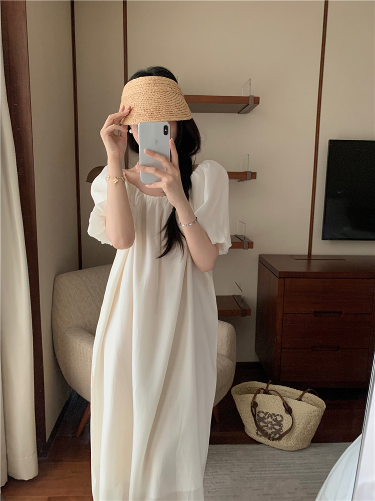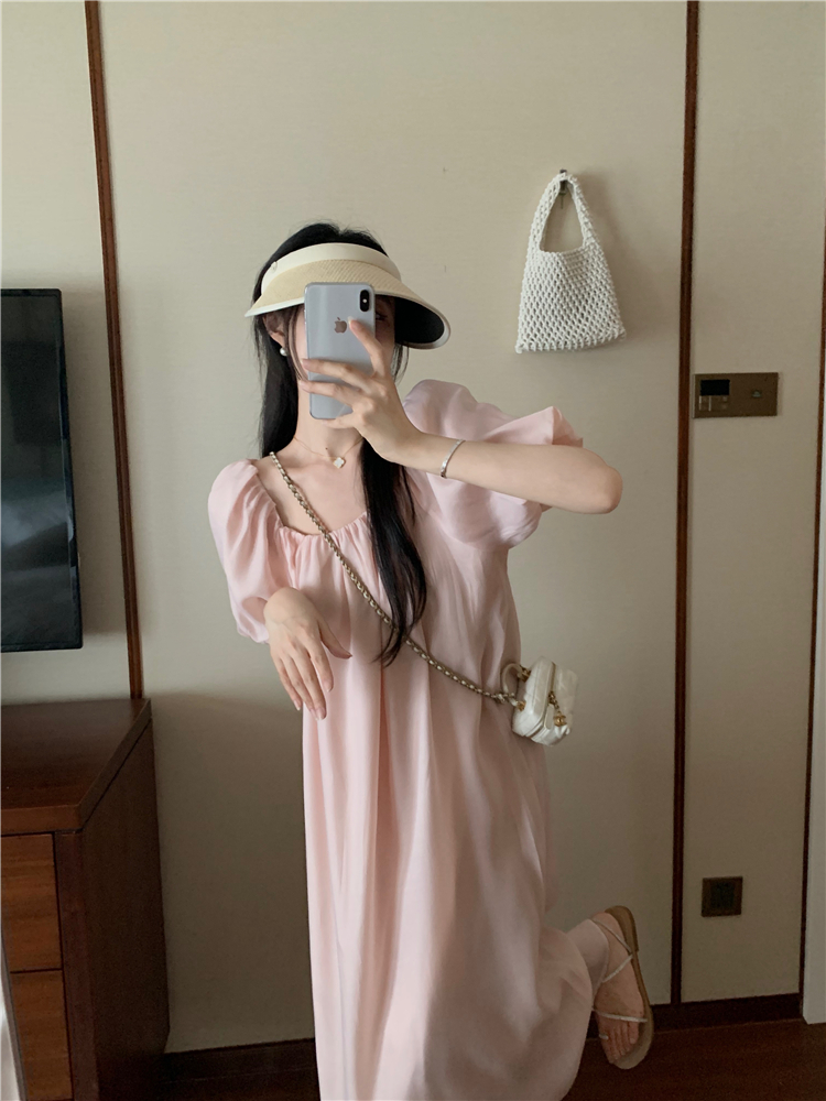 PPHOME白霧甜桃~氣質潮仙氣洋裝韓版圓領收腰設計顯瘦通勤長裙