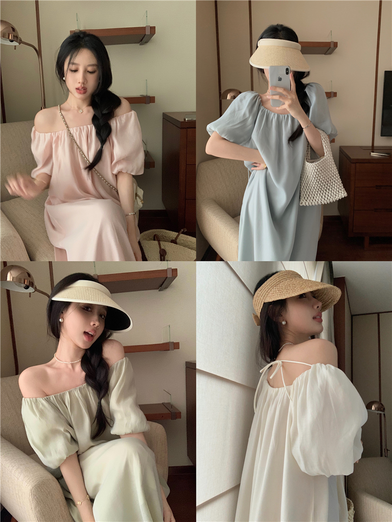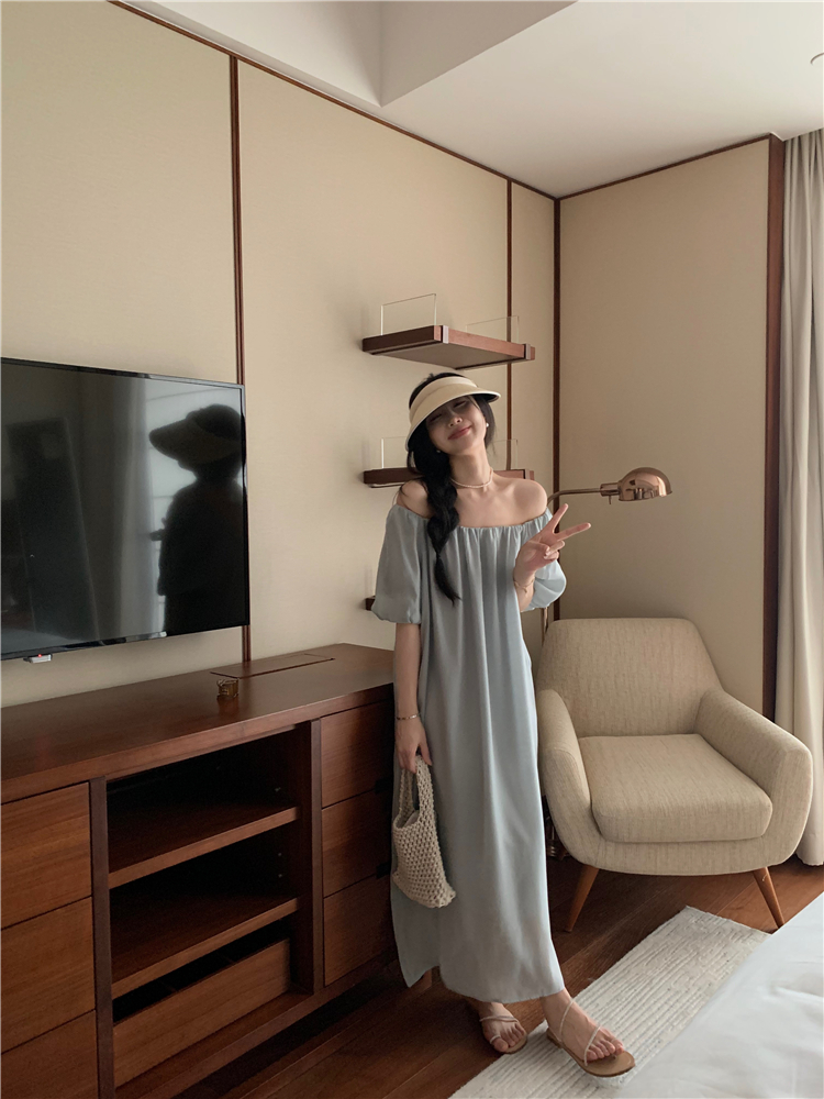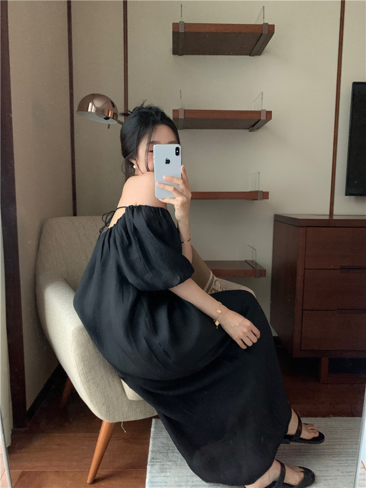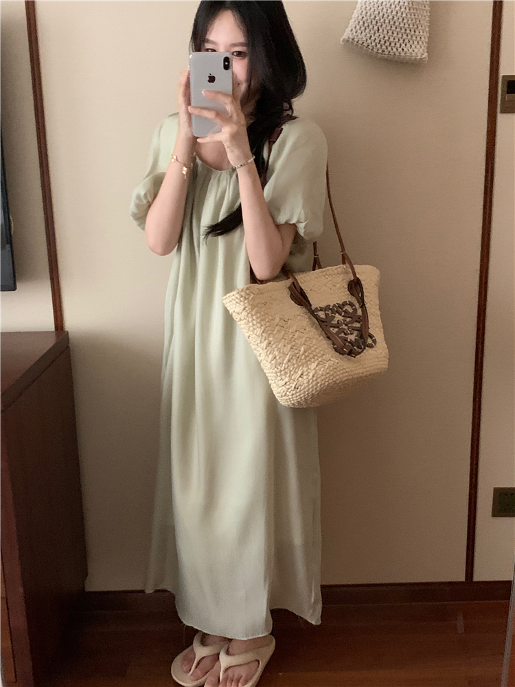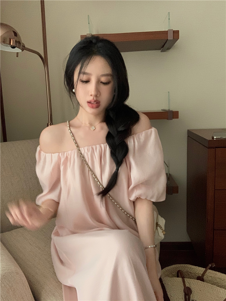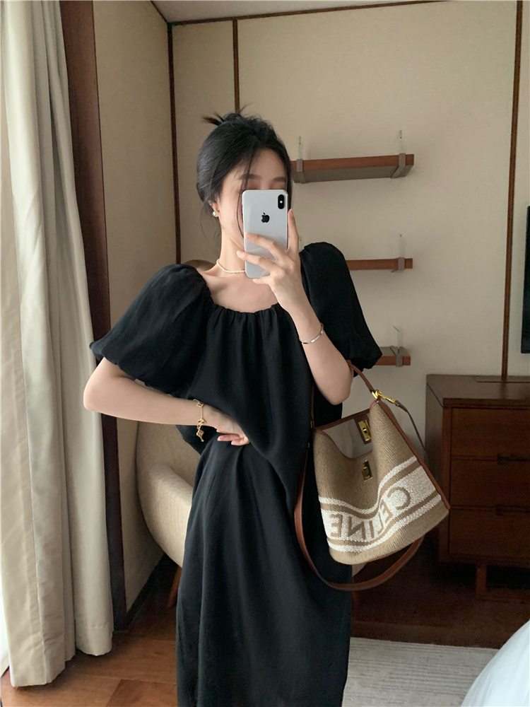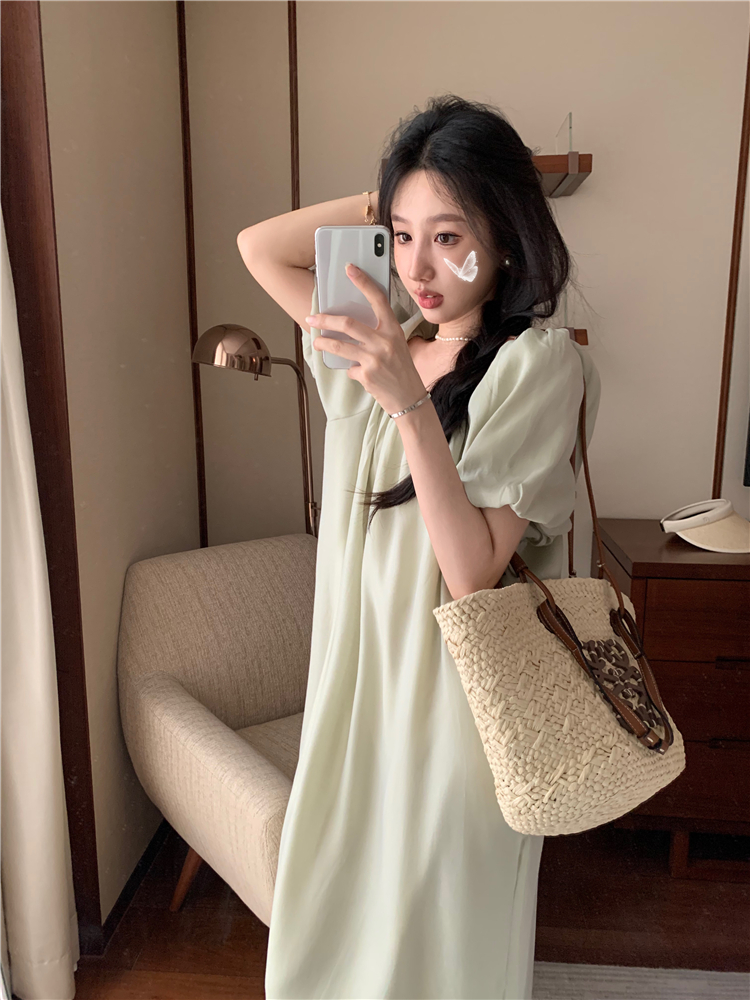 PPHOME白霧甜桃~氣質潮仙氣洋裝韓版圓領收腰設計顯瘦通勤長裙