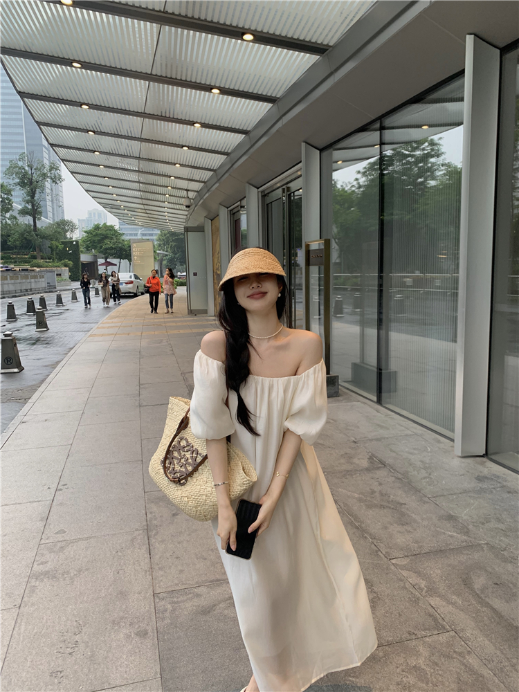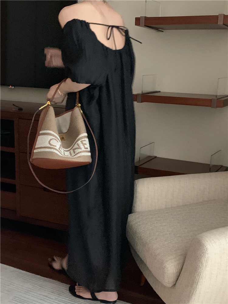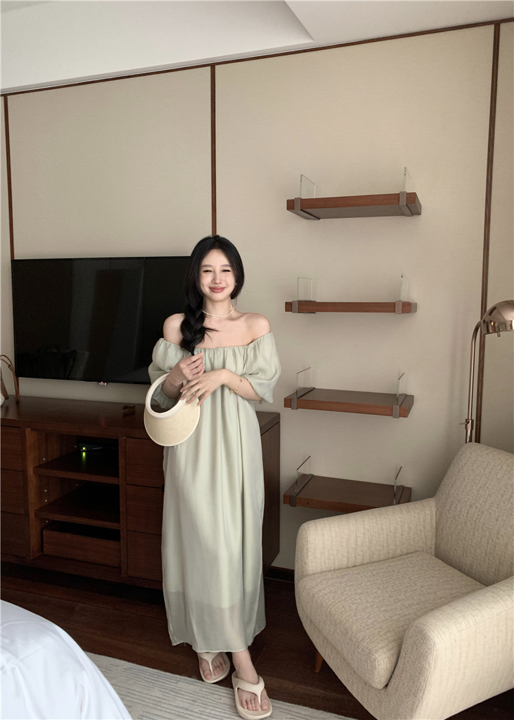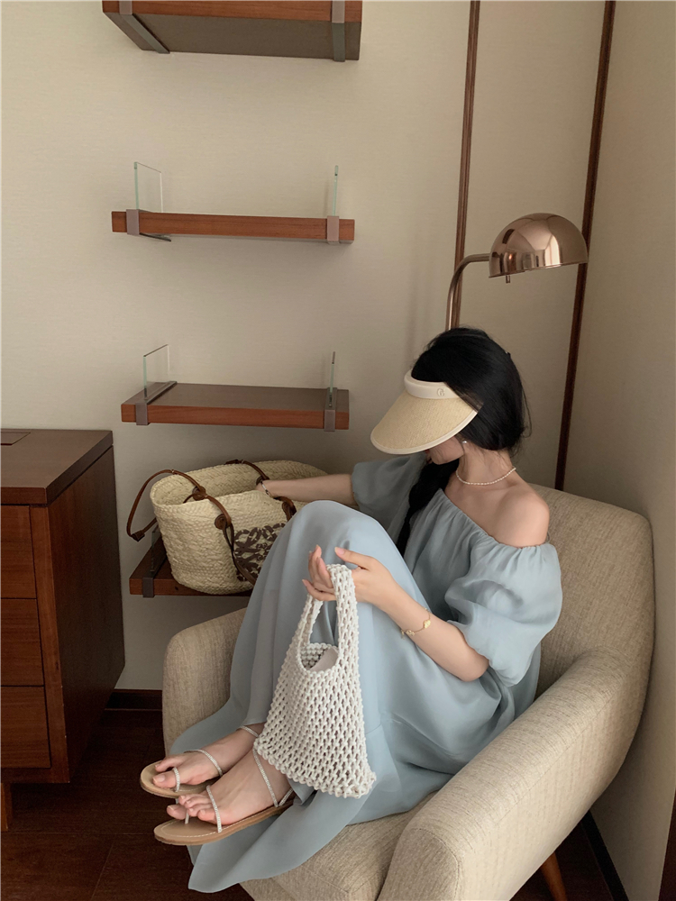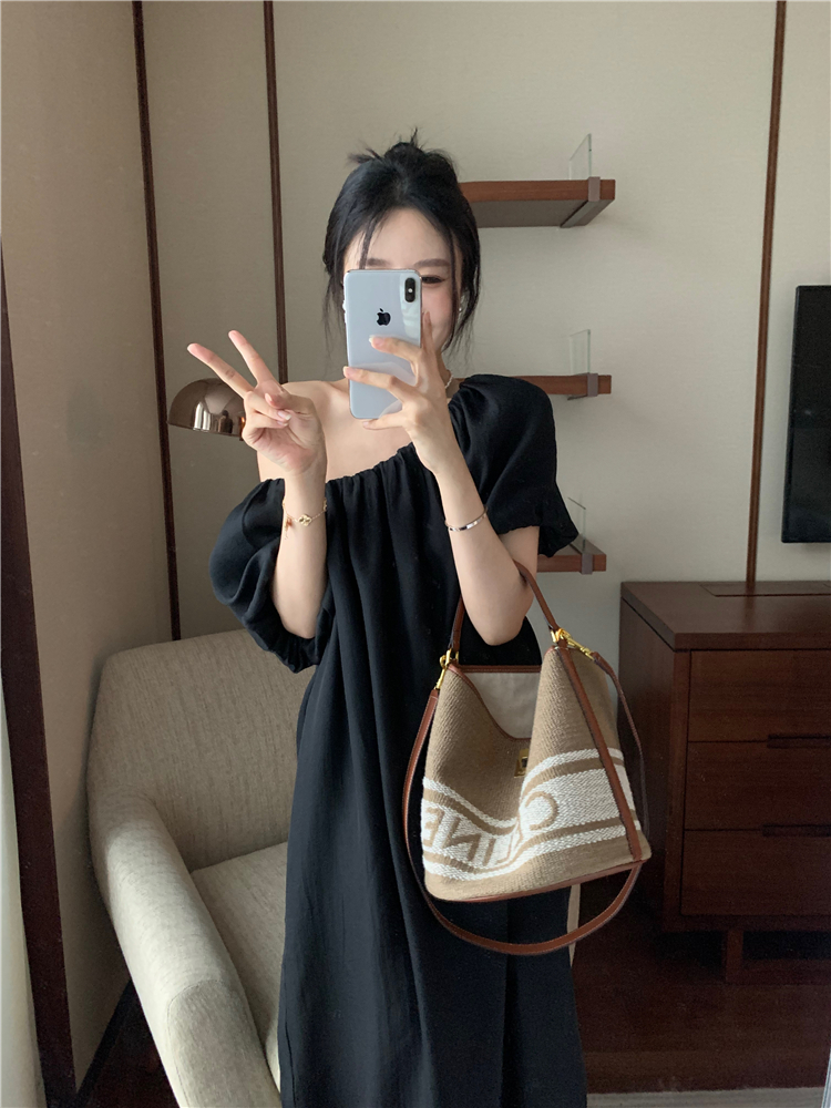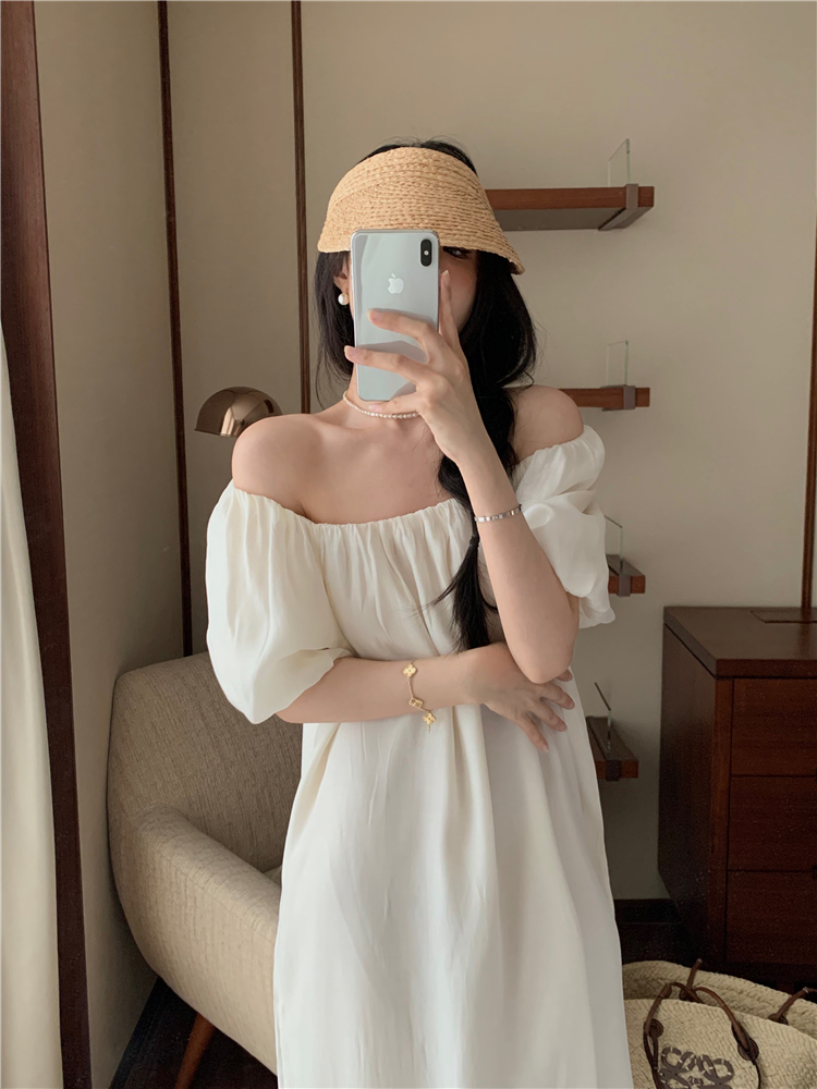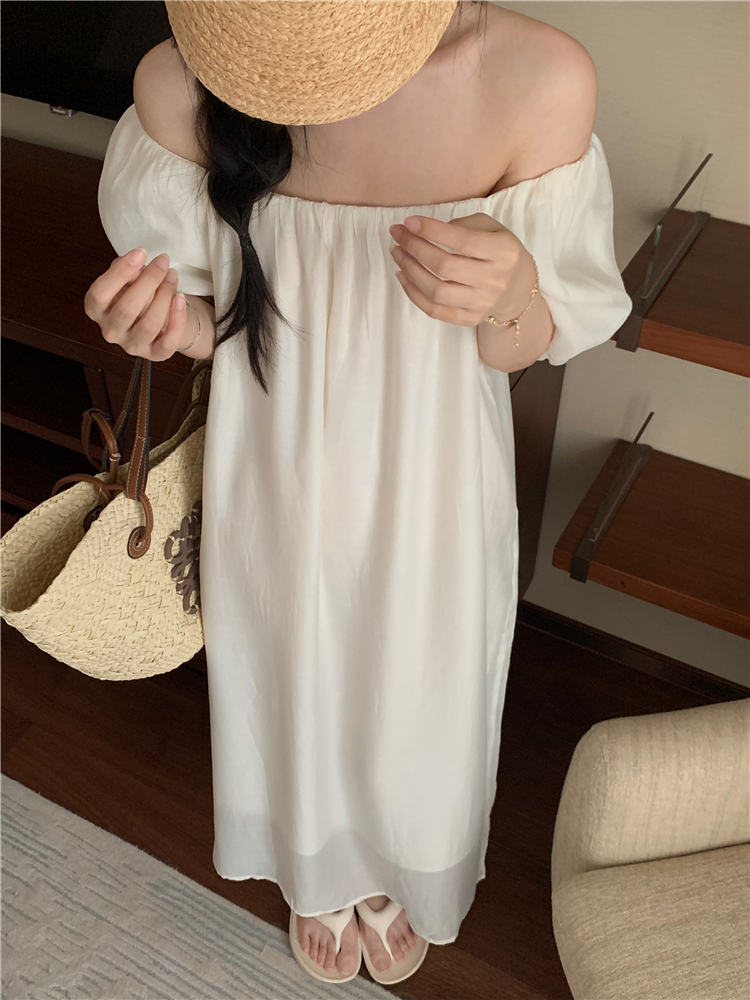 PPHOME白霧甜桃~氣質潮仙氣洋裝韓版圓領收腰設計顯瘦通勤長裙
