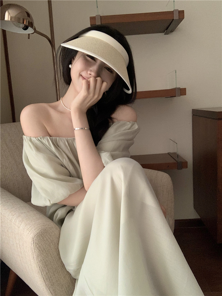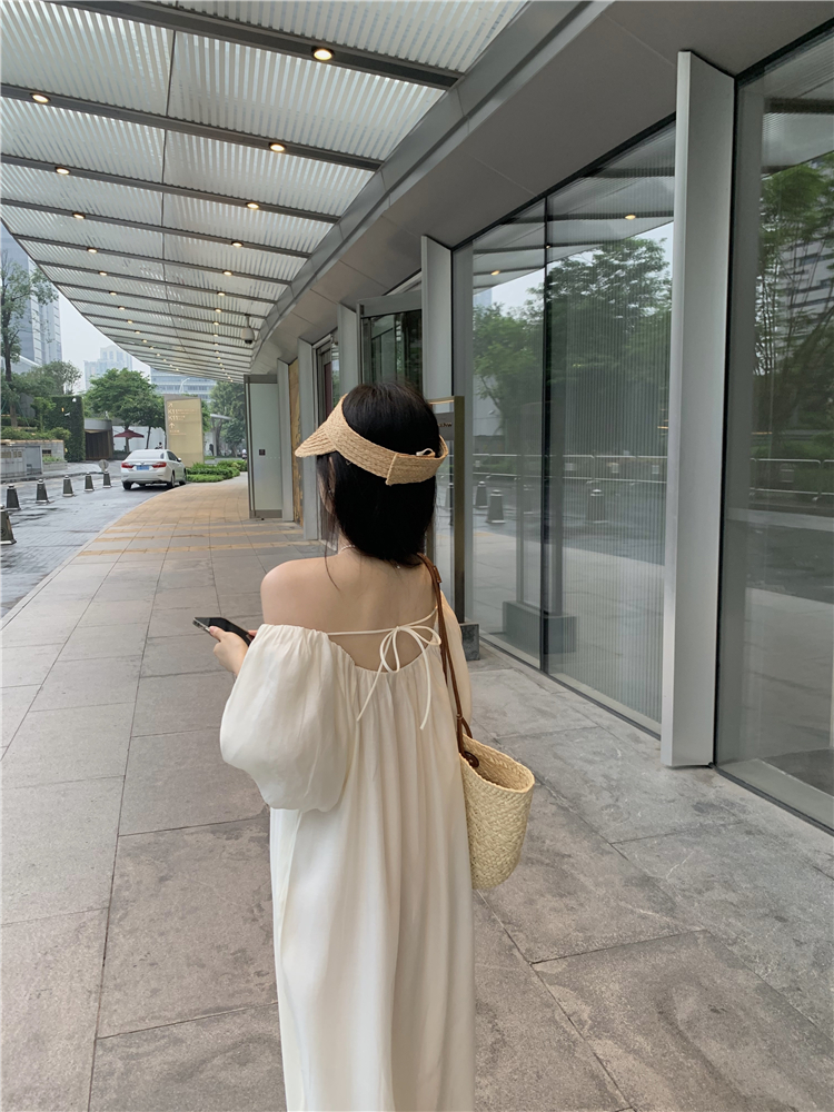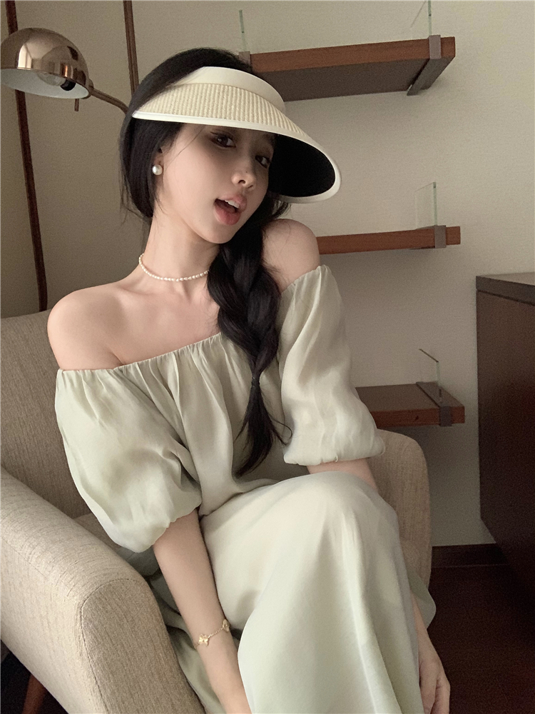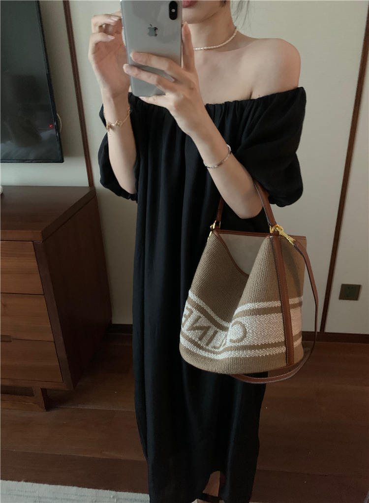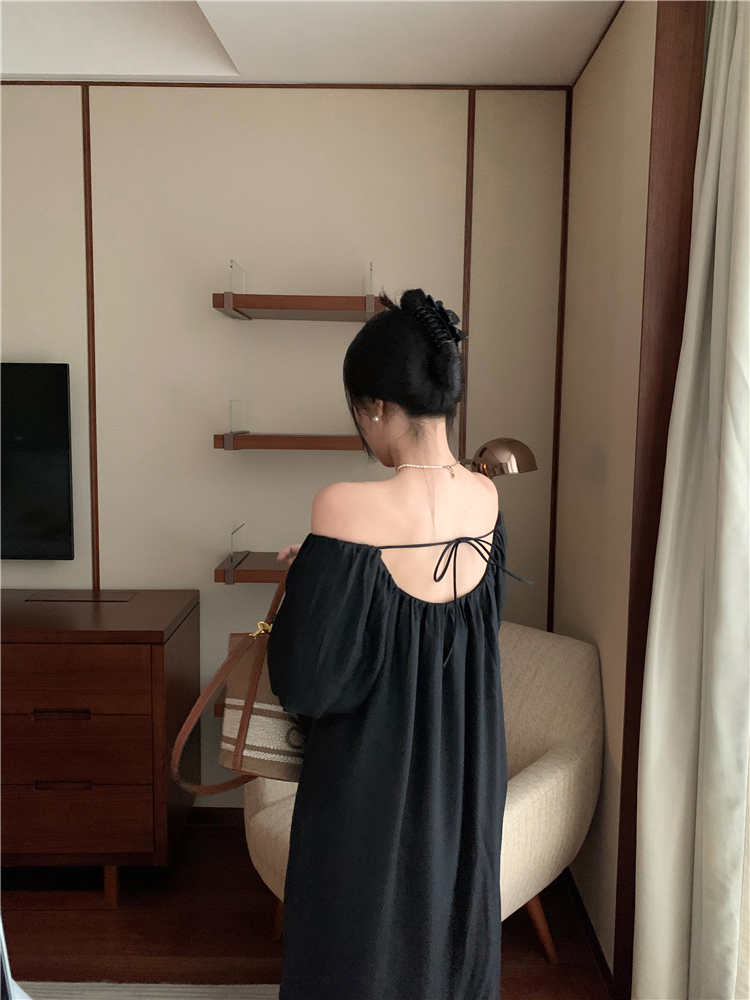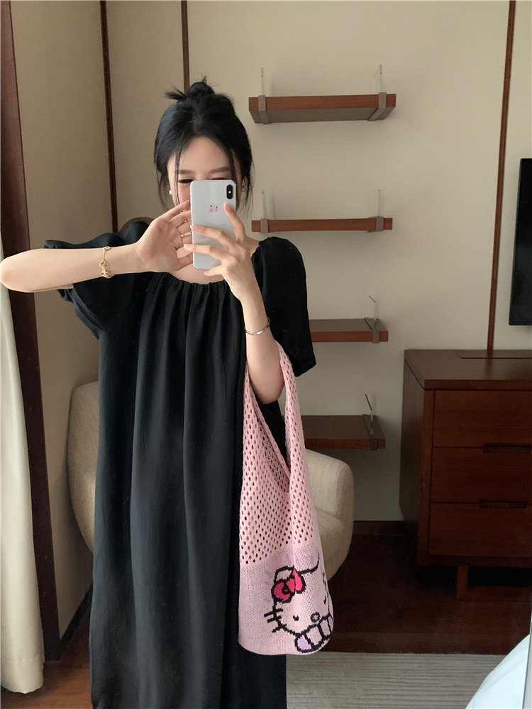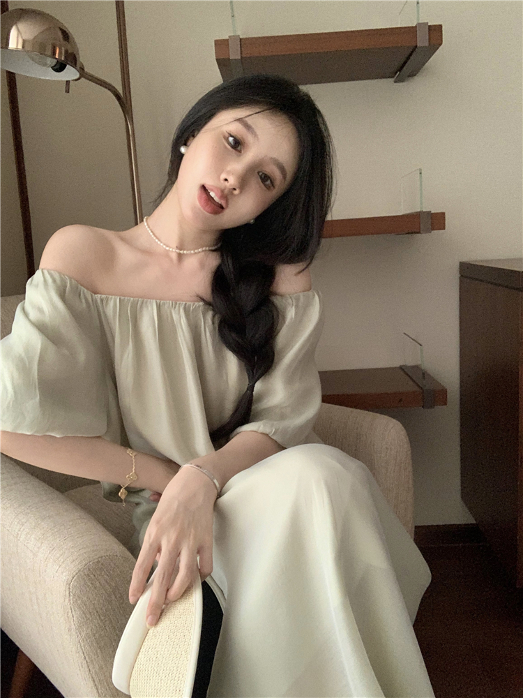 PPHOME白霧甜桃~氣質潮仙氣洋裝韓版圓領收腰設計顯瘦通勤長裙