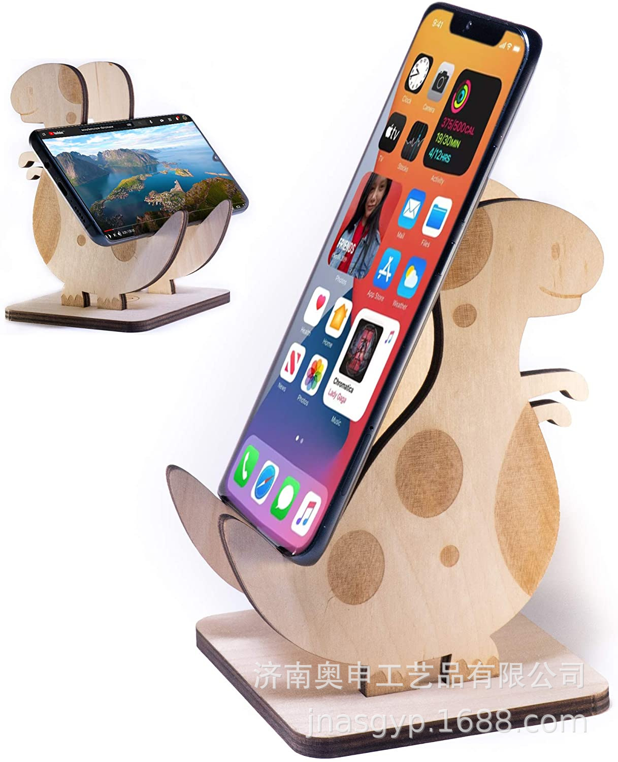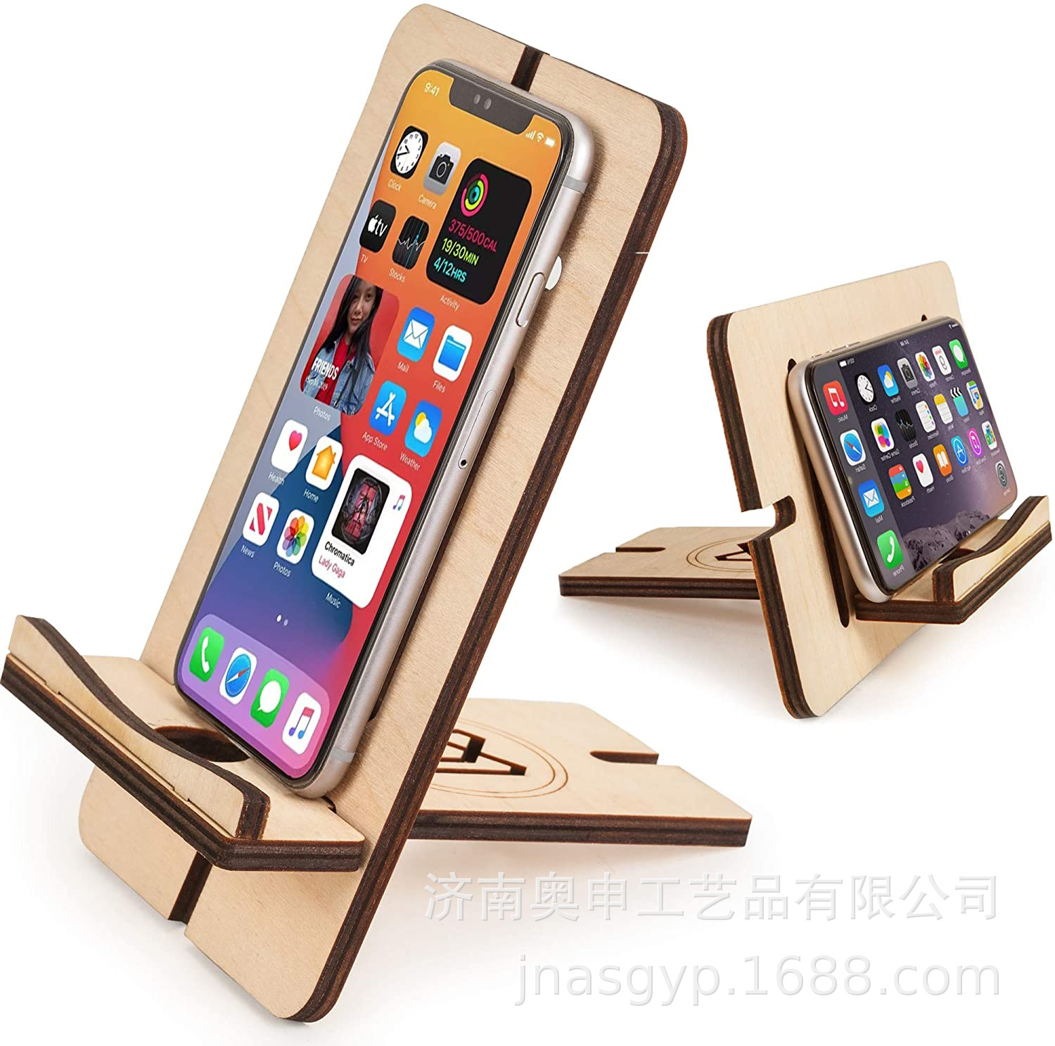 木质可折叠手机平板支架通用木质手机底座木质办公智能手机支架