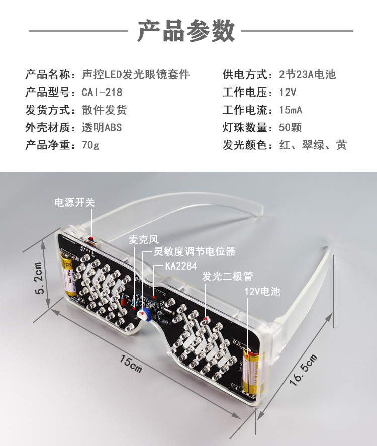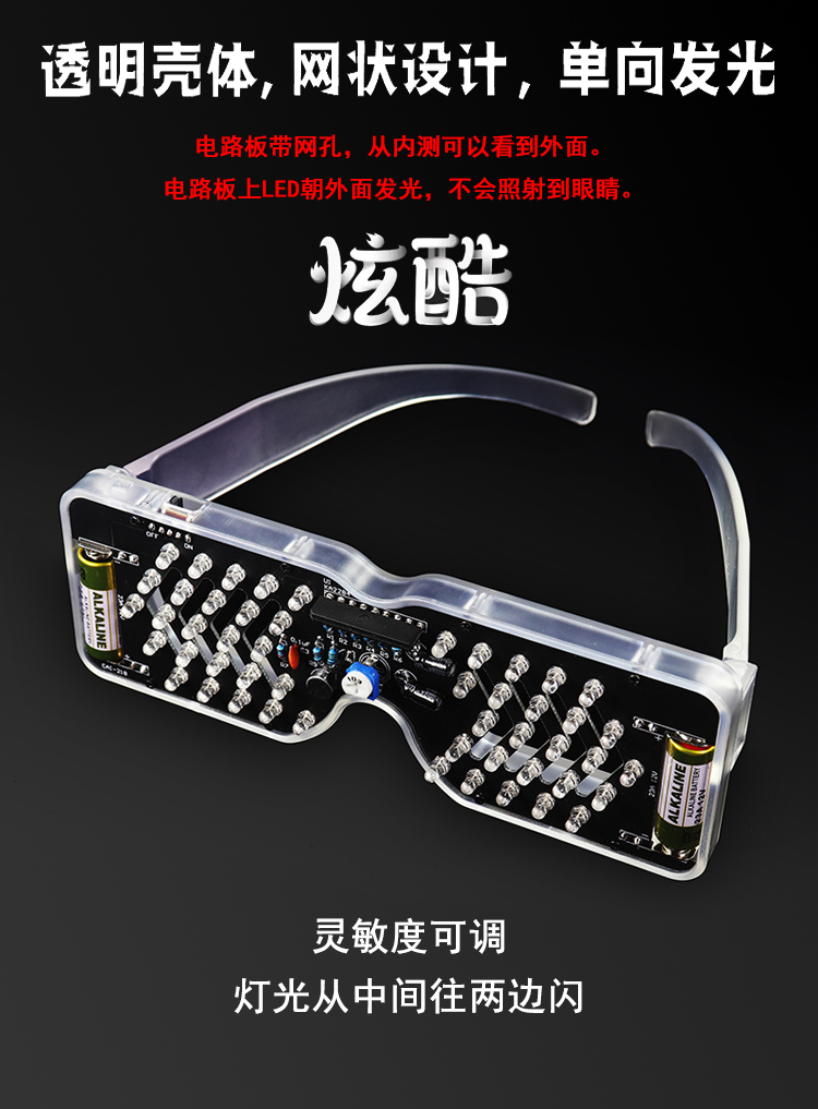 聲控LED發光眼鏡製作套件LED燈閃燈電子散件趣味DIY焊接練習