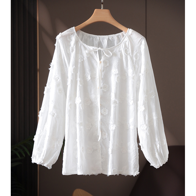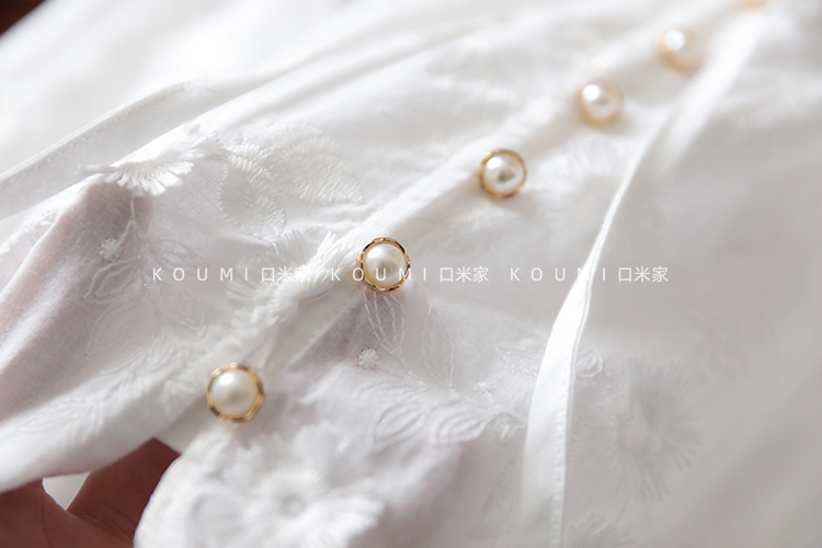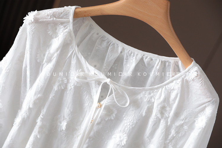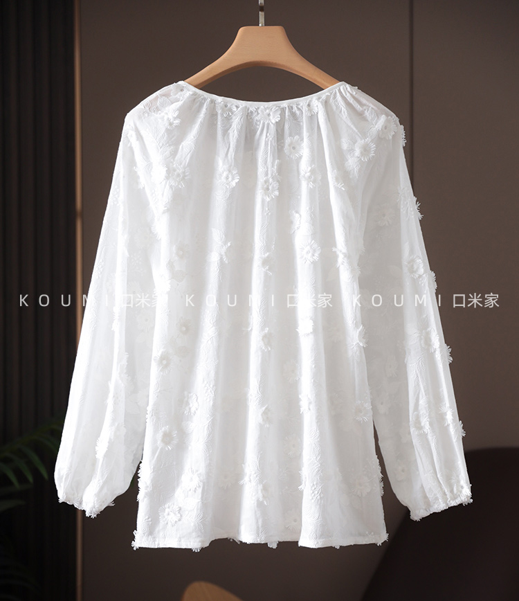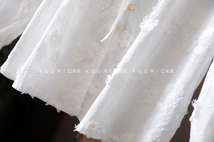 讓我這麼喜歡!零抵抗力!法式立體繡花減齡白色純棉襯衫上衣女