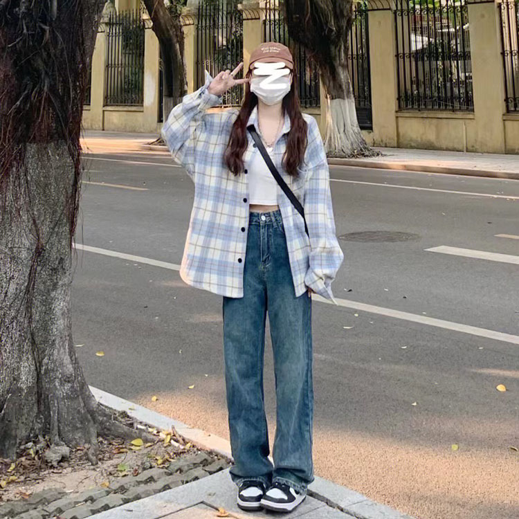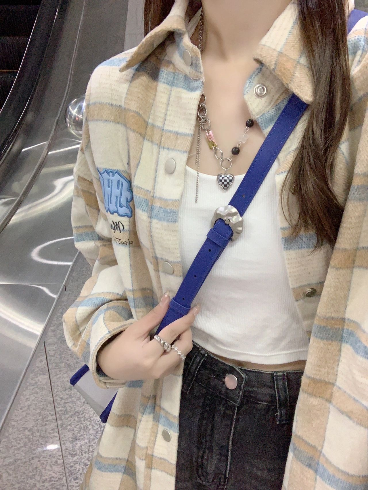 長袖格子襯衫女春秋2023年新款設計感小眾法式襯衫疊穿小個子上衣