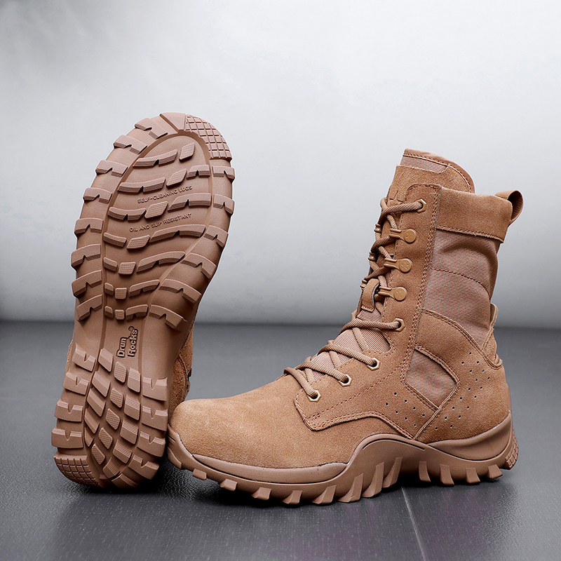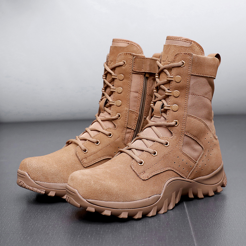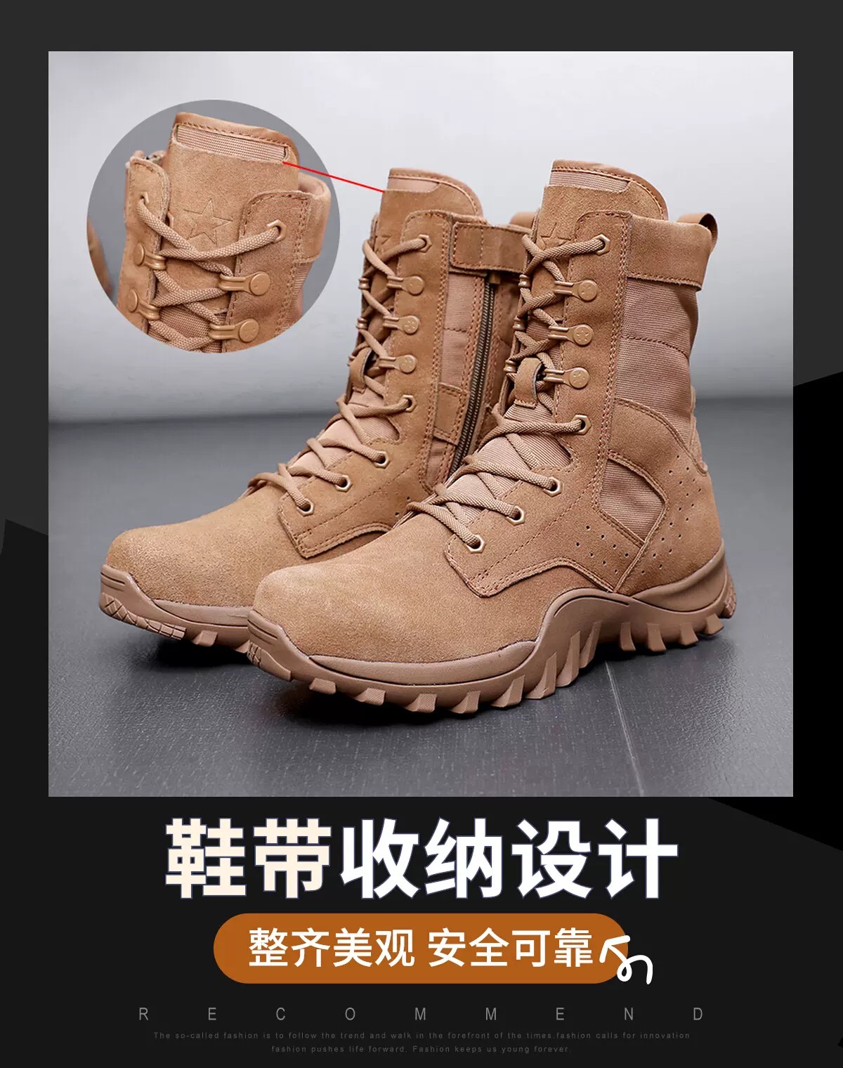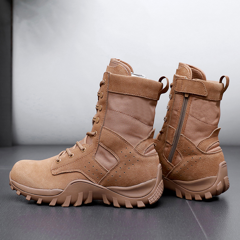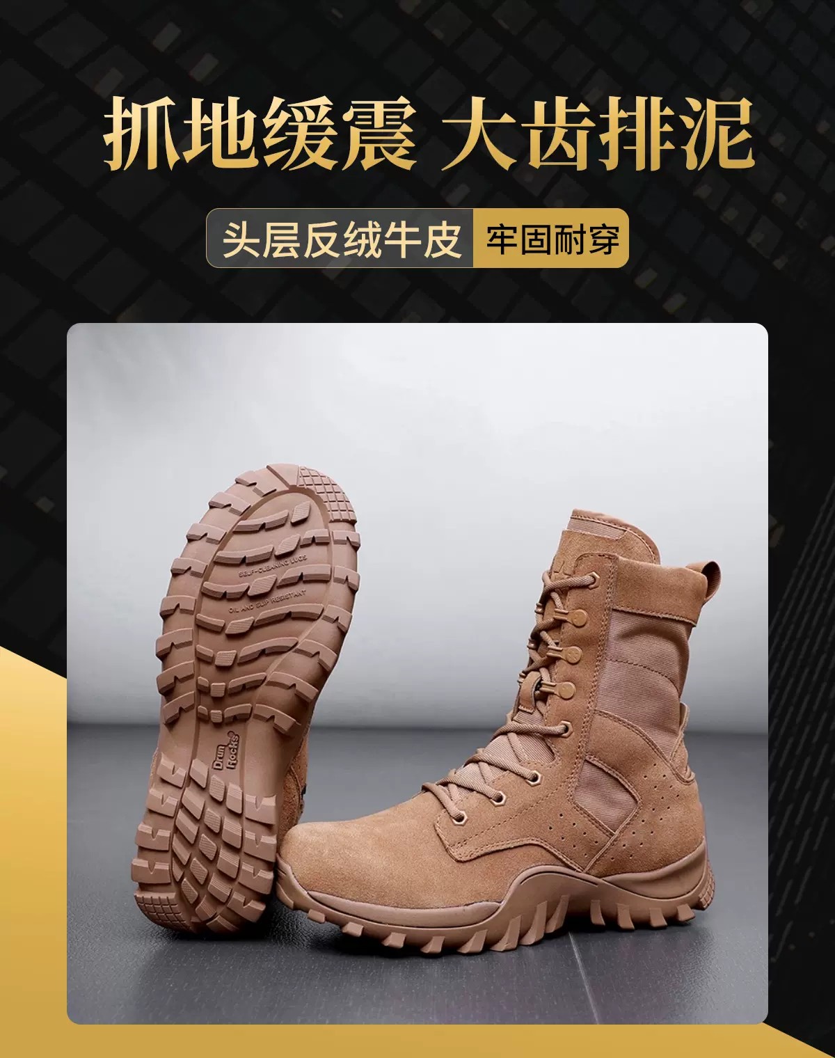 新款君洛克棕色防刺拉鍊作戰靴男女高筒輕便戰術戶外登山沙漠靴