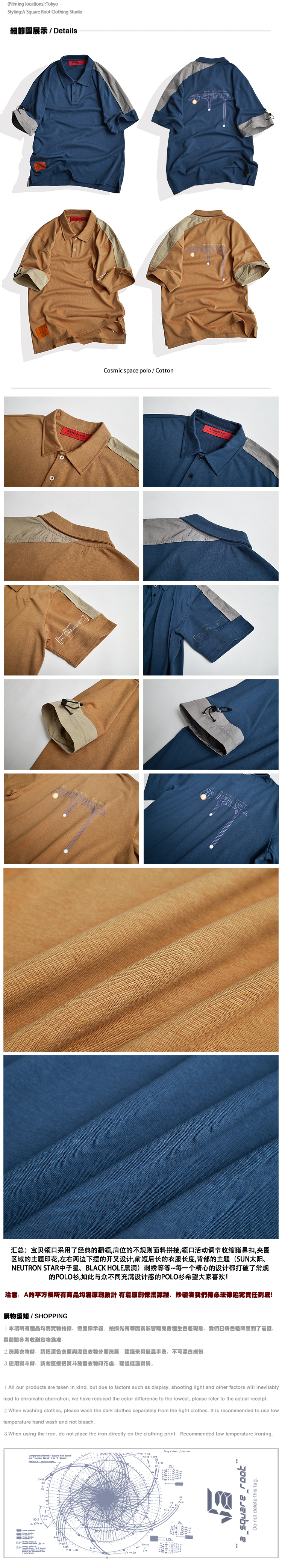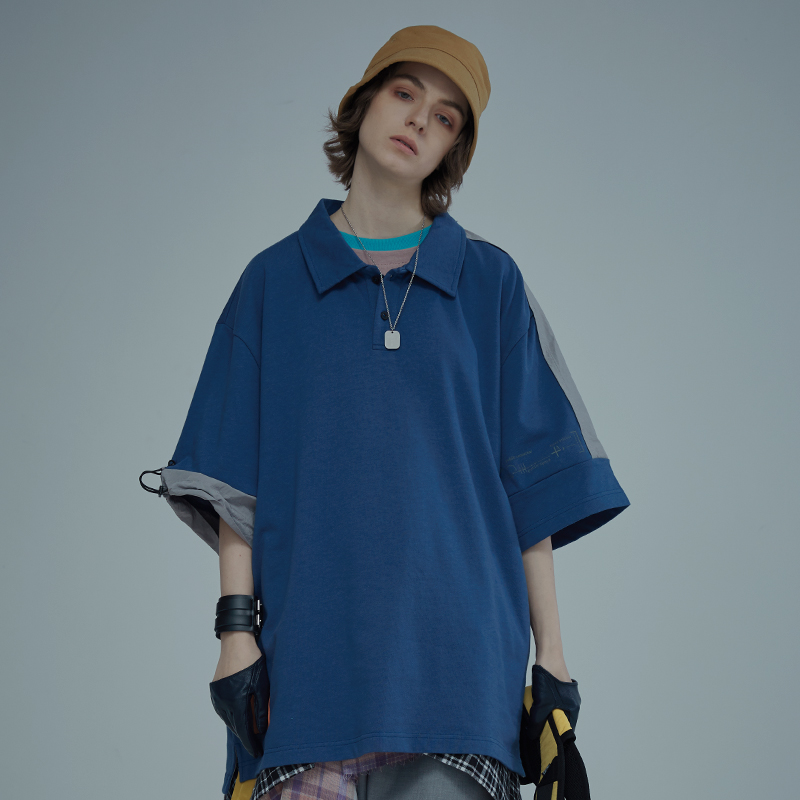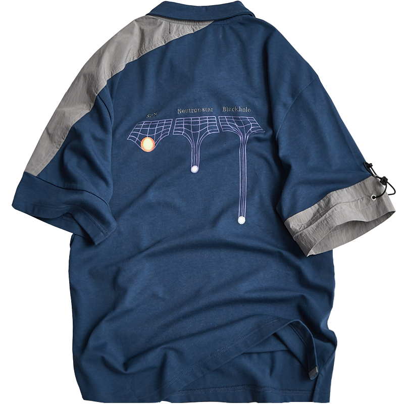 A SQUARE ROOT 原創印花刺繡拼接男女休閒寬鬆潮牌夏季短袖POLO衫