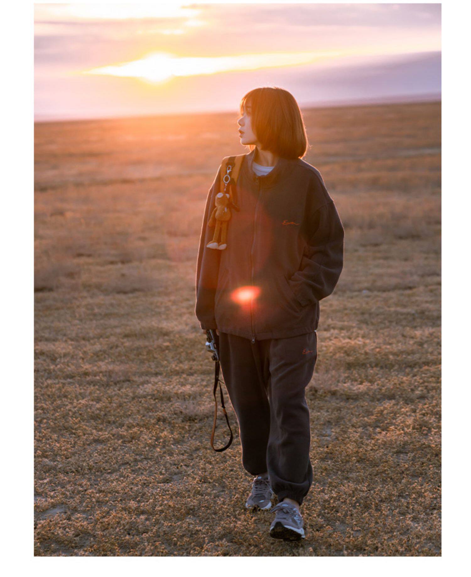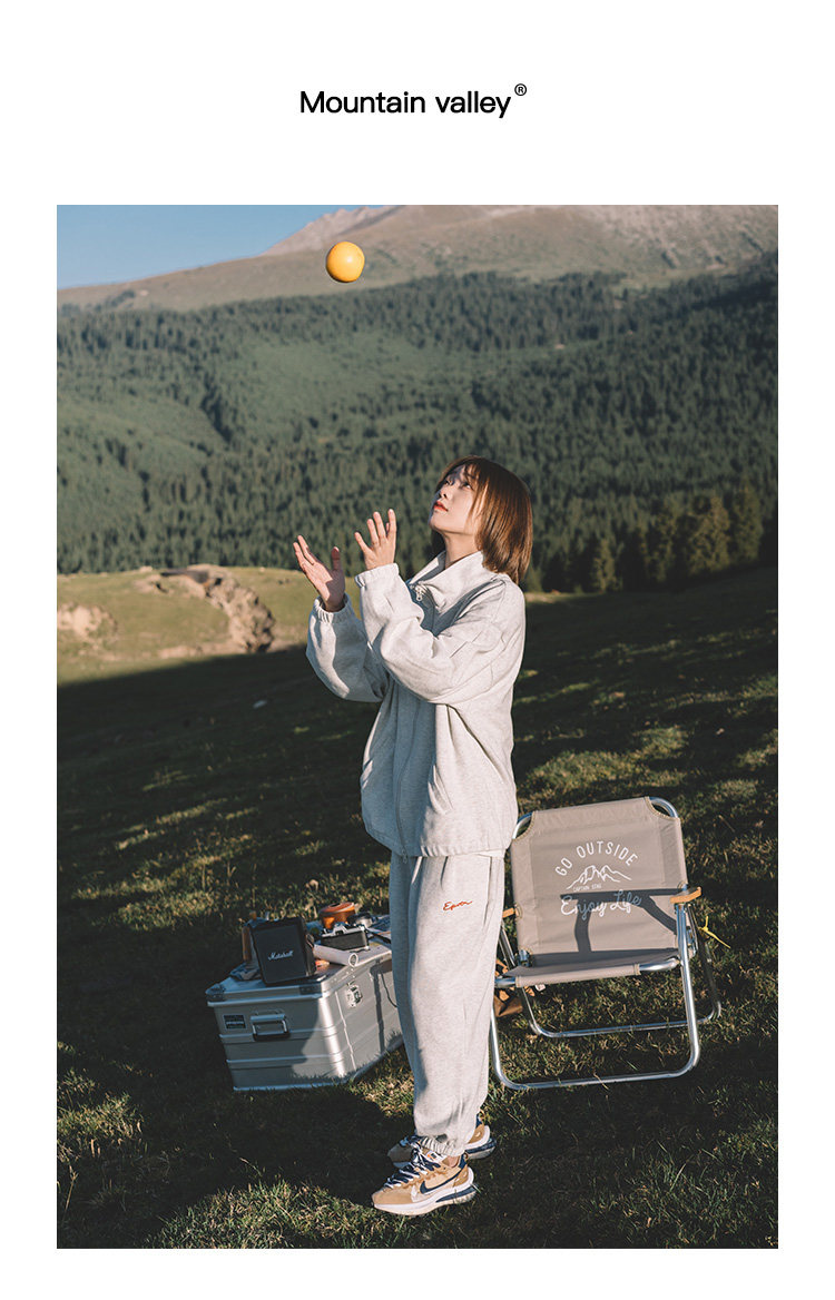 Mountain valley秋裝簡約學生情侶運動休閒寬鬆衛衣衛褲套裝 男女