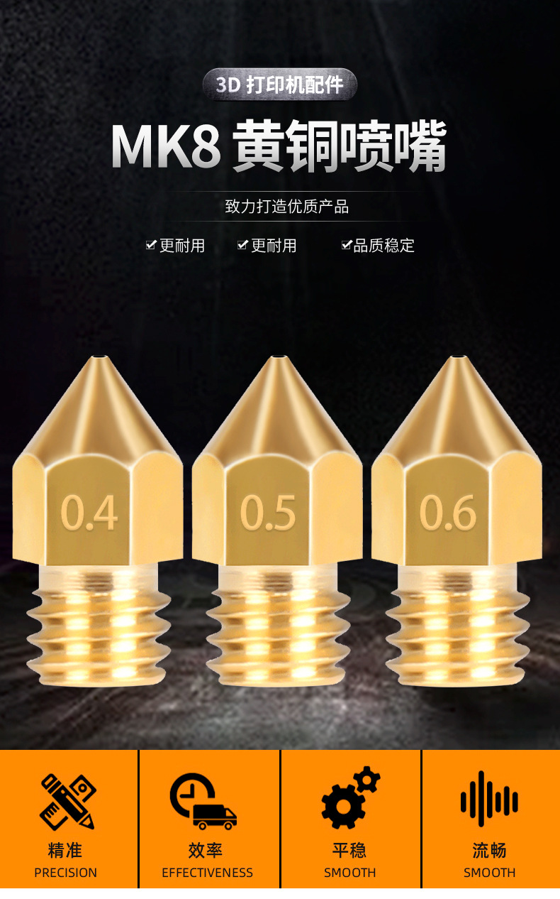3d打印机配件 mk8尖头黄铜喷嘴 挤出机打印头diy喷嘴喷头现货批发