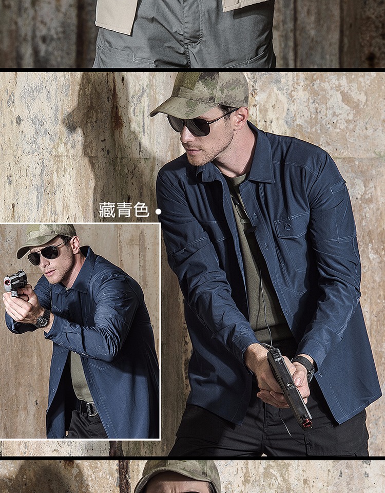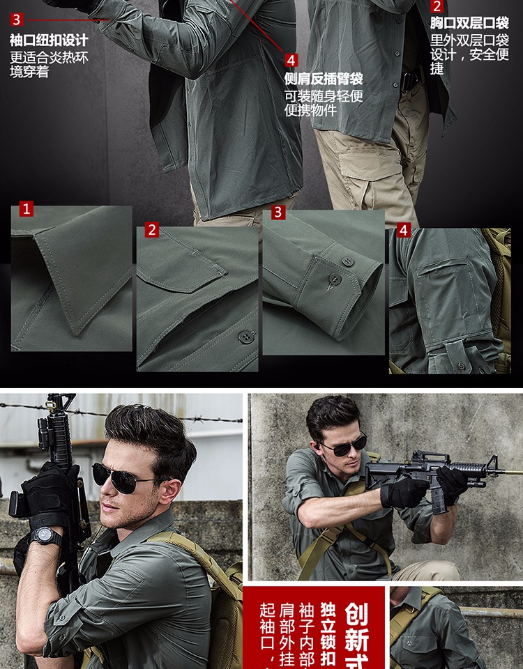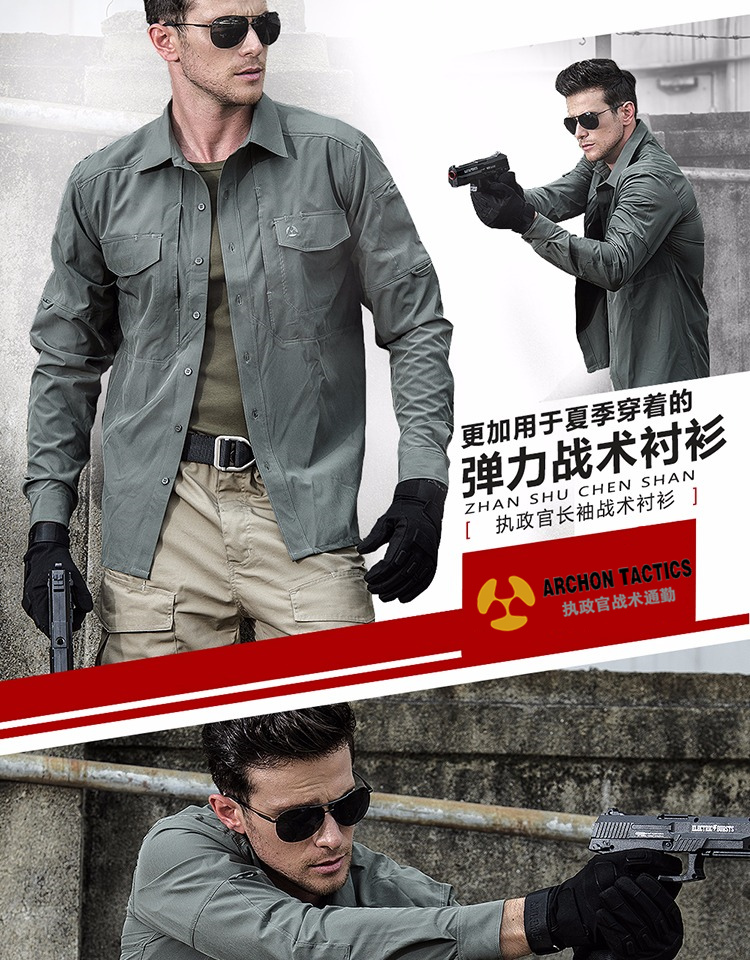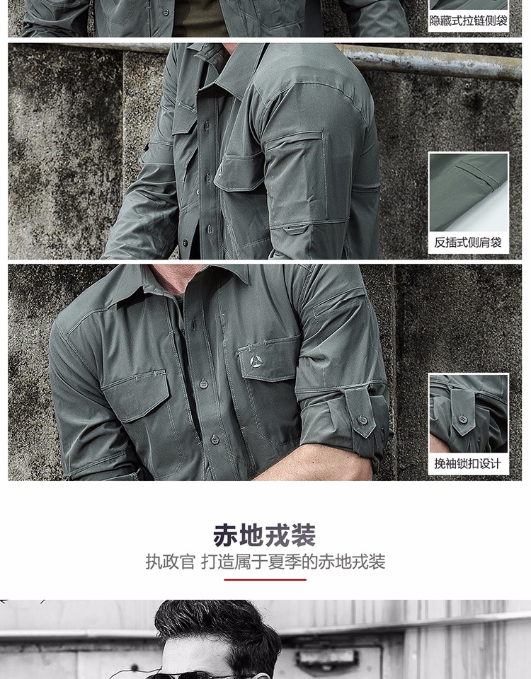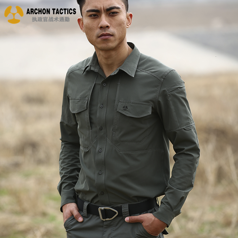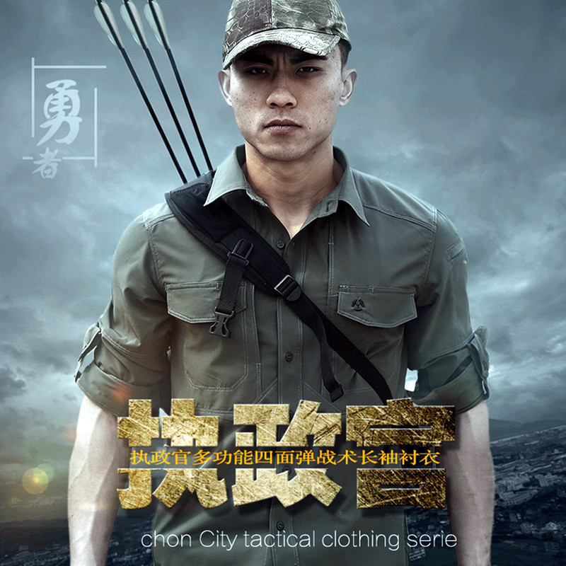 執政官長袖戰術襯衫男士軍迷夏季彈力多功能作訓上衣戶外速乾襯衫