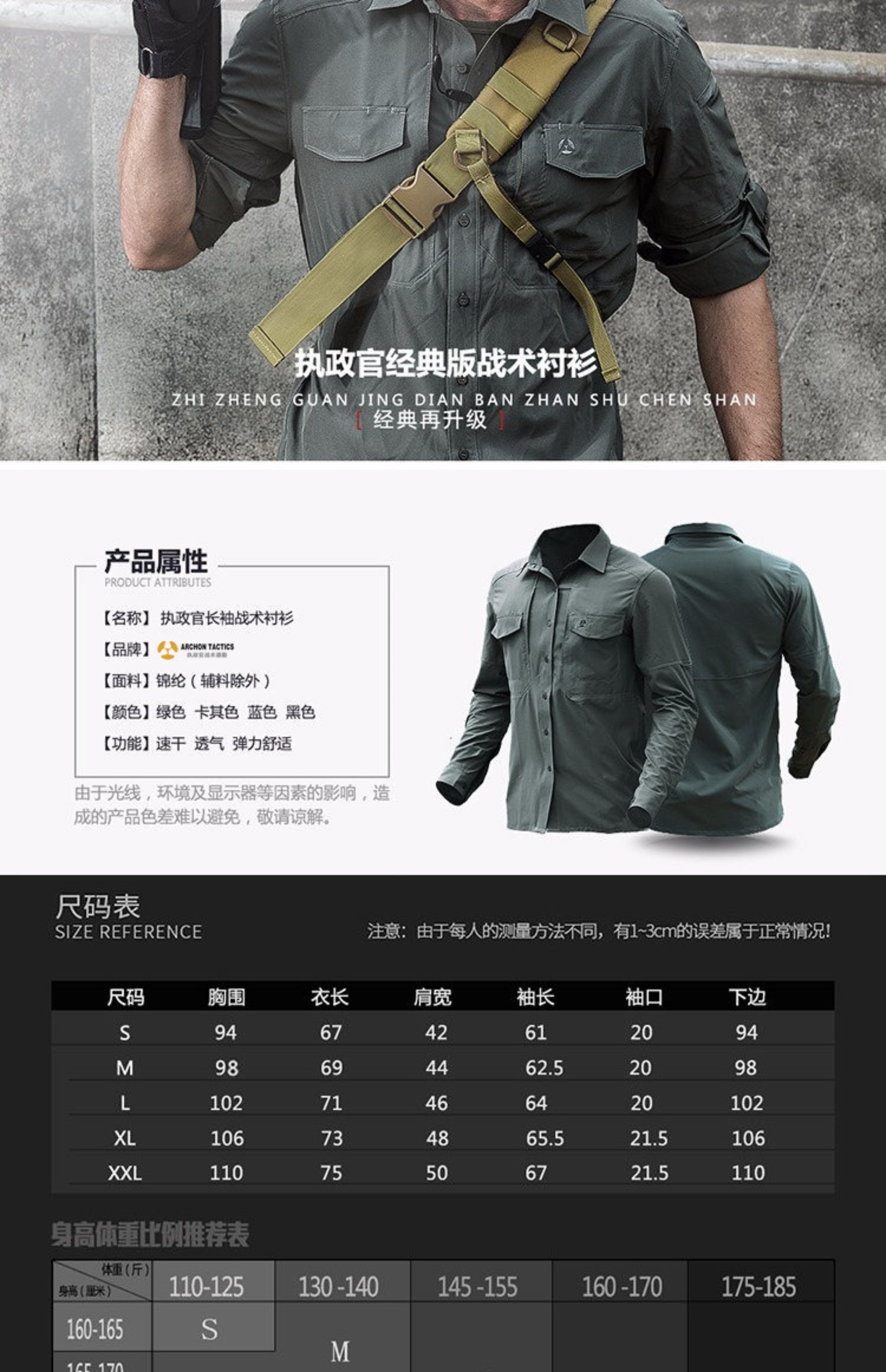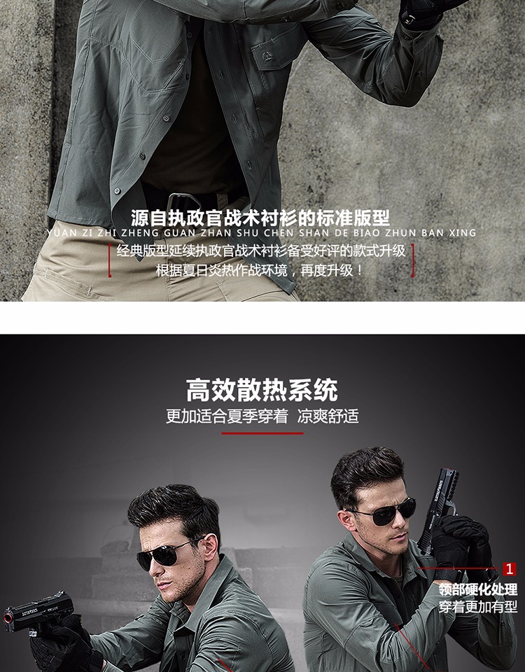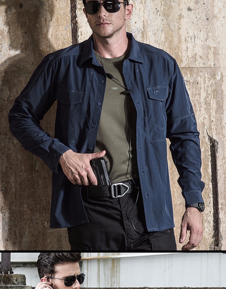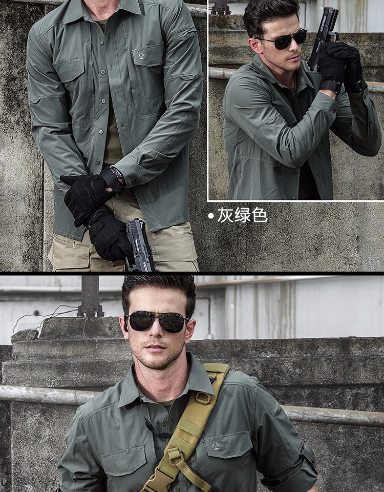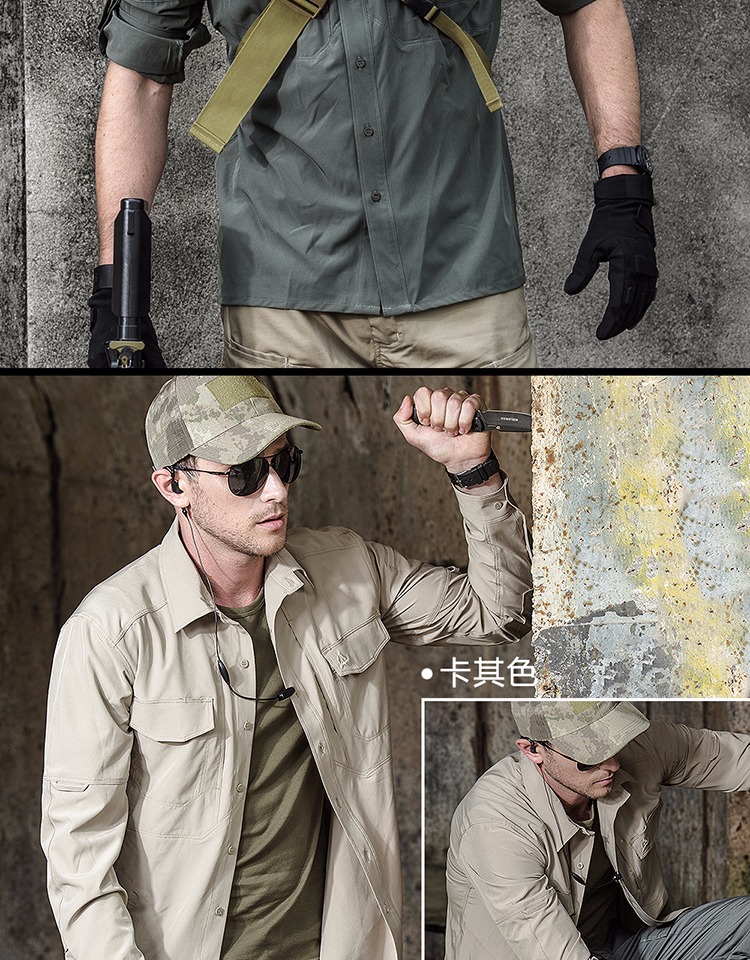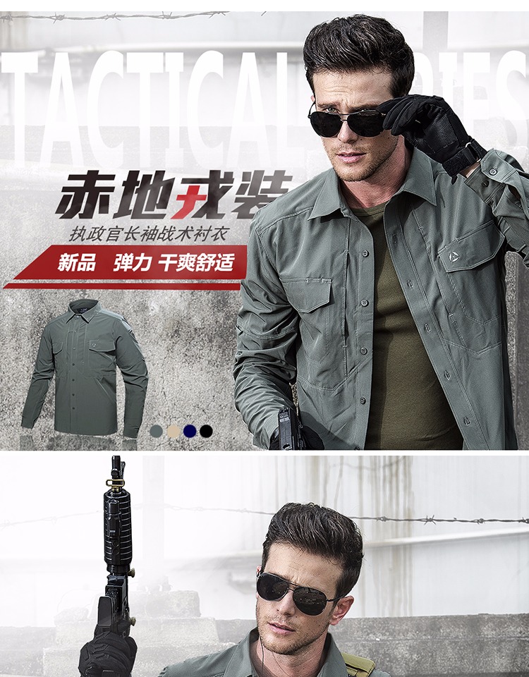 執政官長袖戰術襯衫男士軍迷夏季彈力多功能作訓上衣戶外速乾襯衫