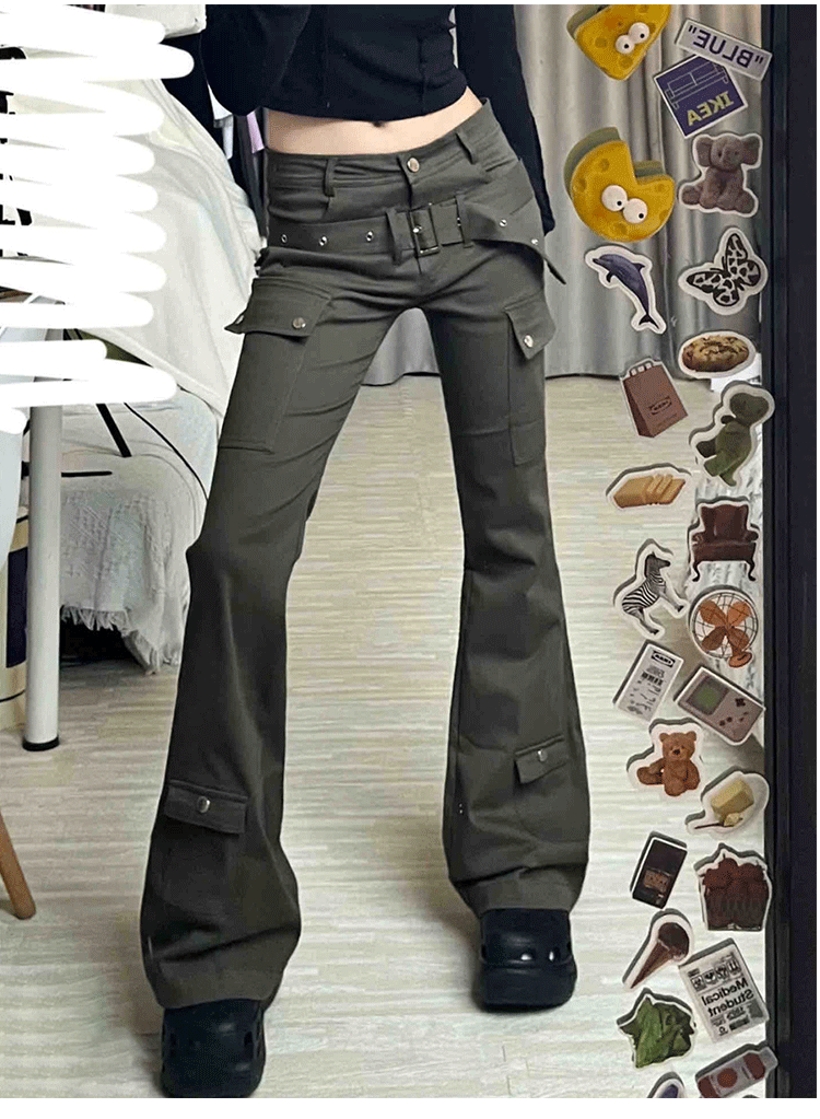美式高街微喇叭工裝褲女2023夏季新款高腰修身顯瘦炸街休閒長褲子