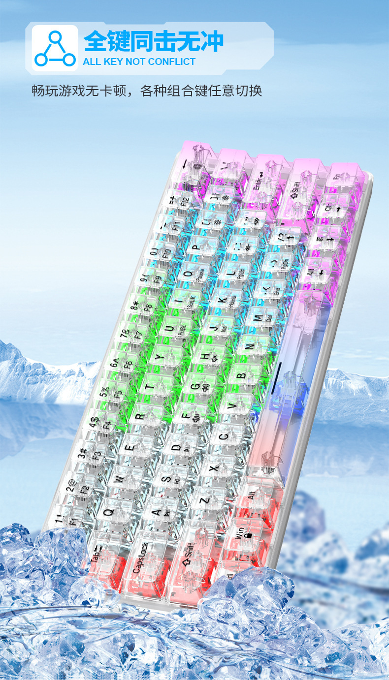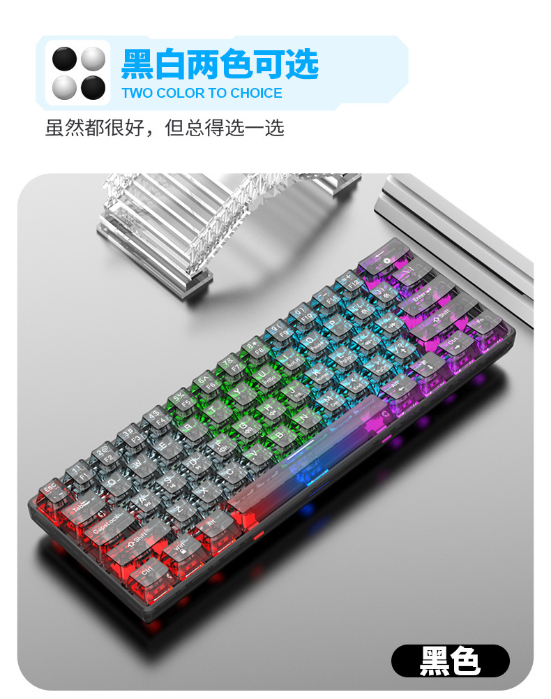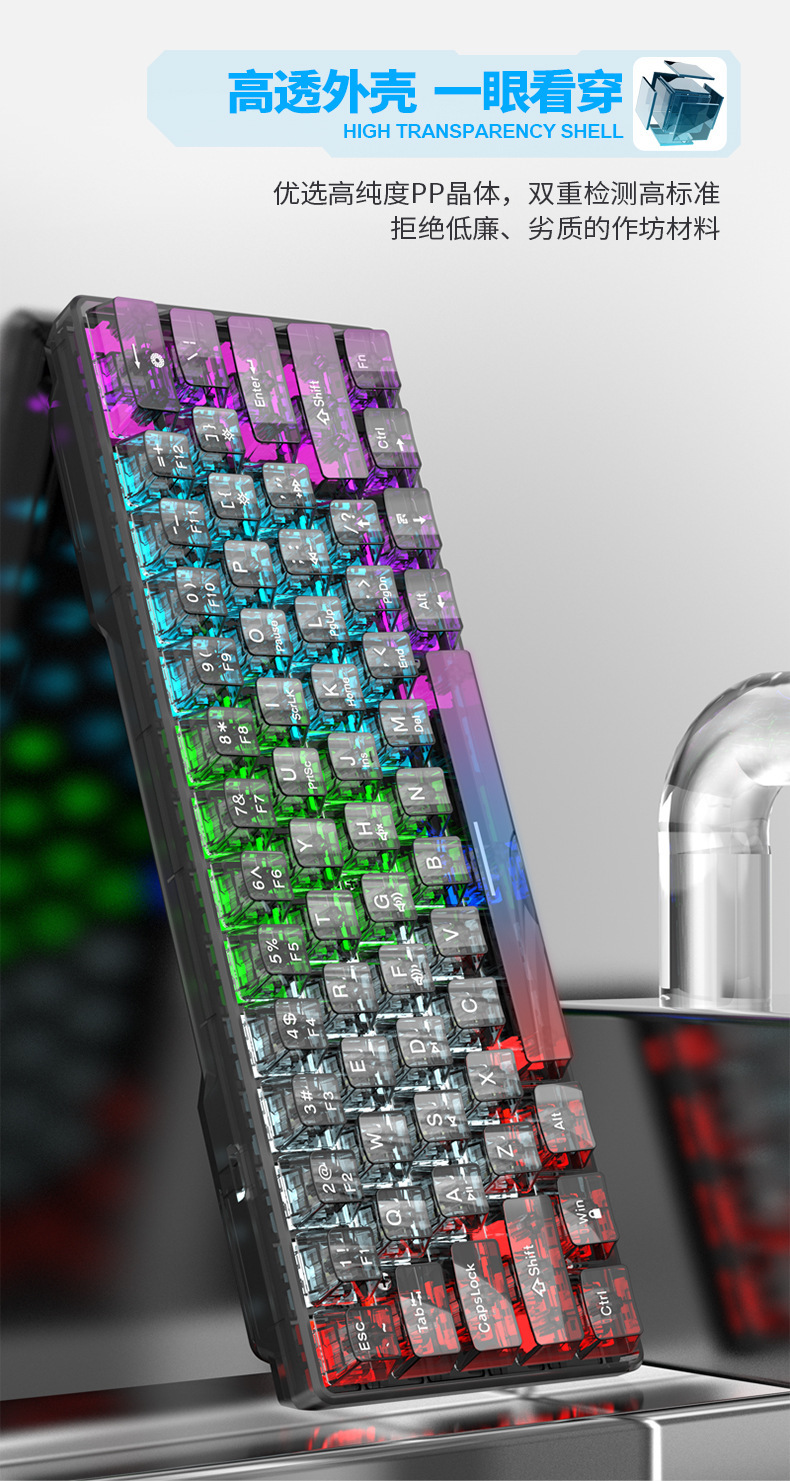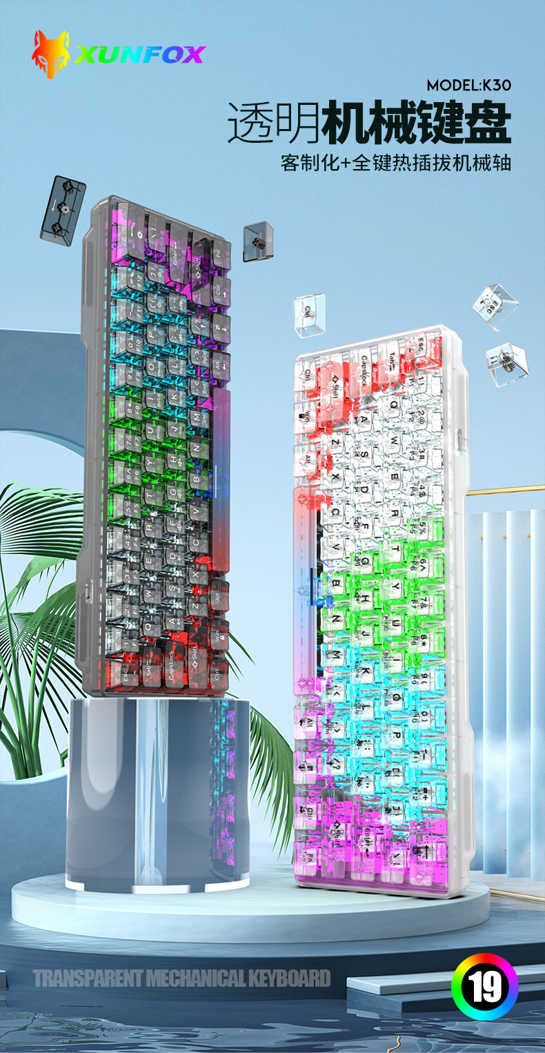 炫银狐K30透明有线机械键盘热插拔迷你便携光办公游戏电竞键盘外