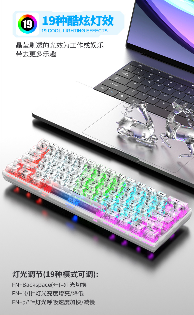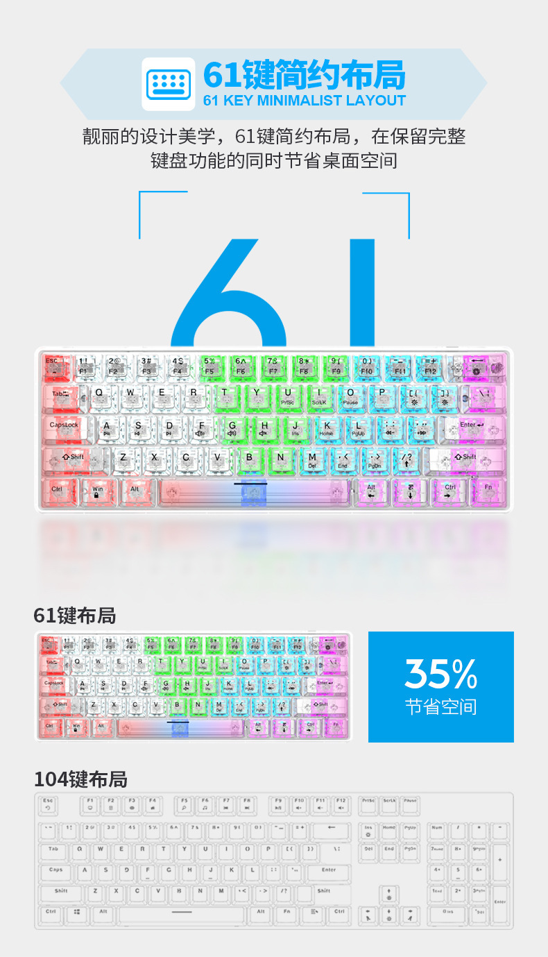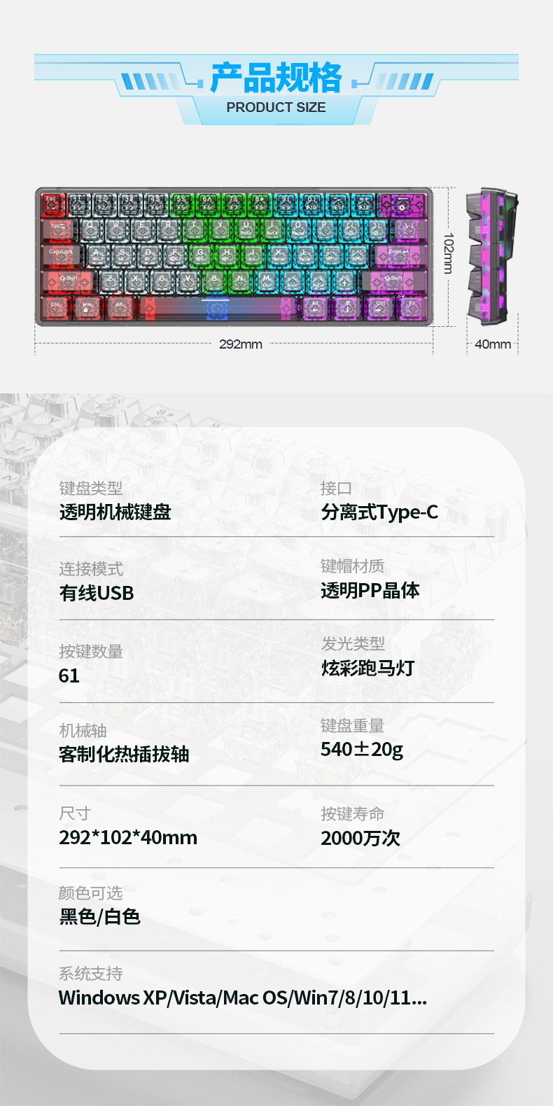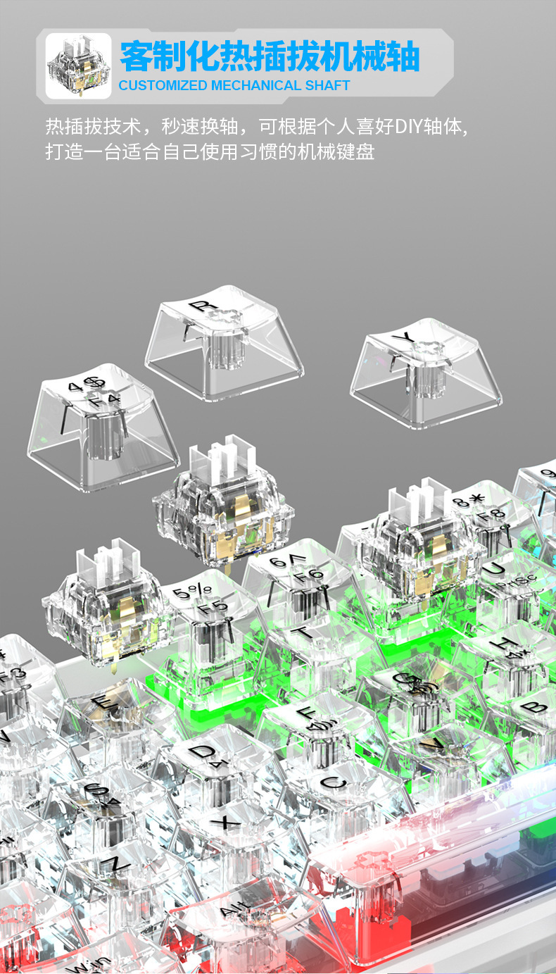炫银狐K30透明有线机械键盘热插拔迷你便携光办公游戏电竞键盘外